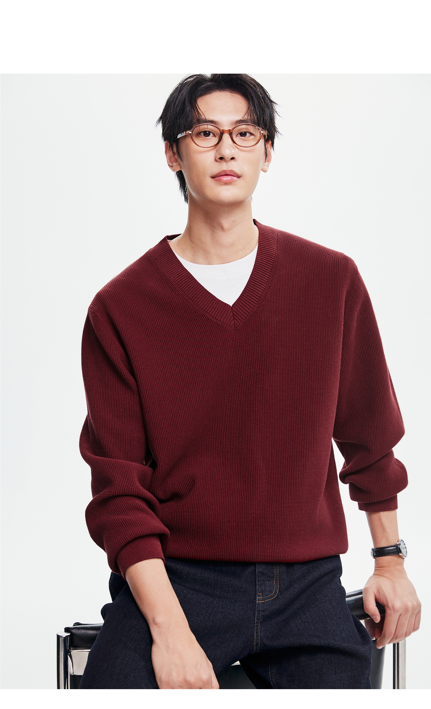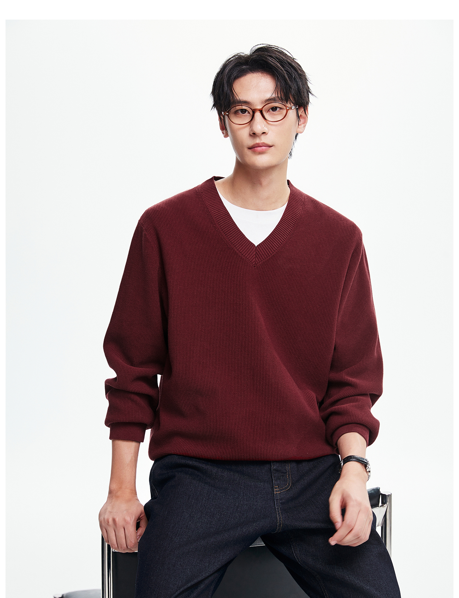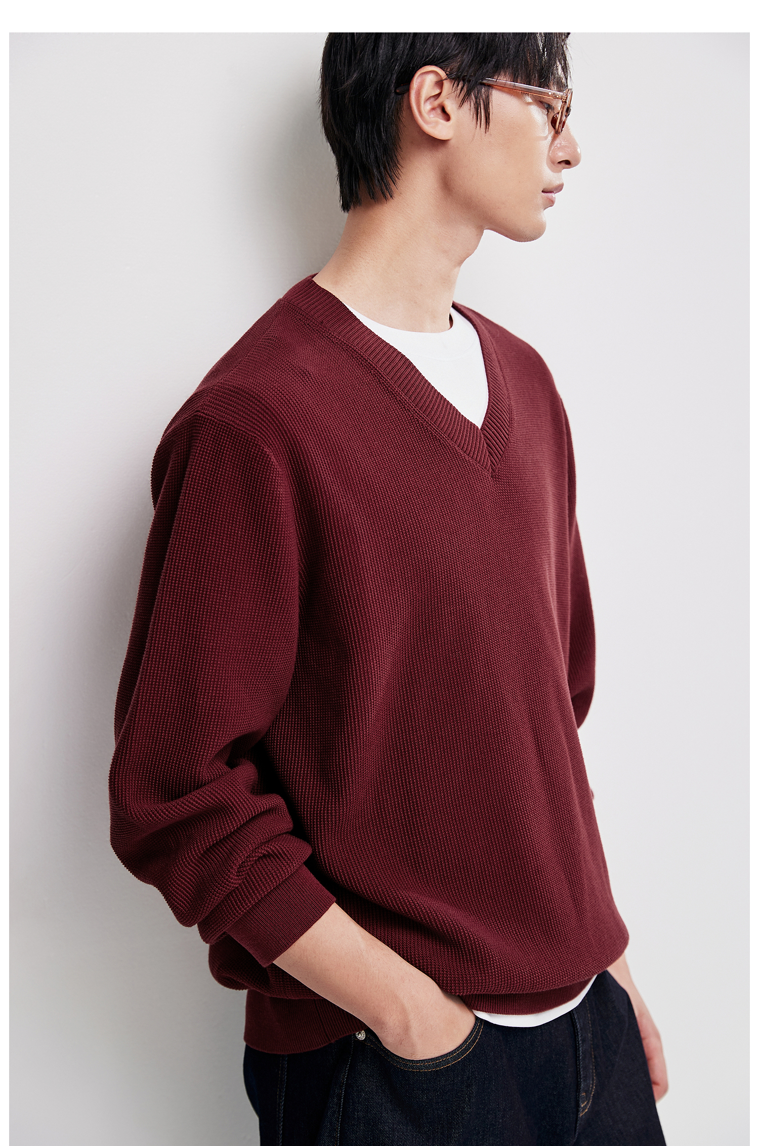 棉仓367826015-V领pima棉毛衣