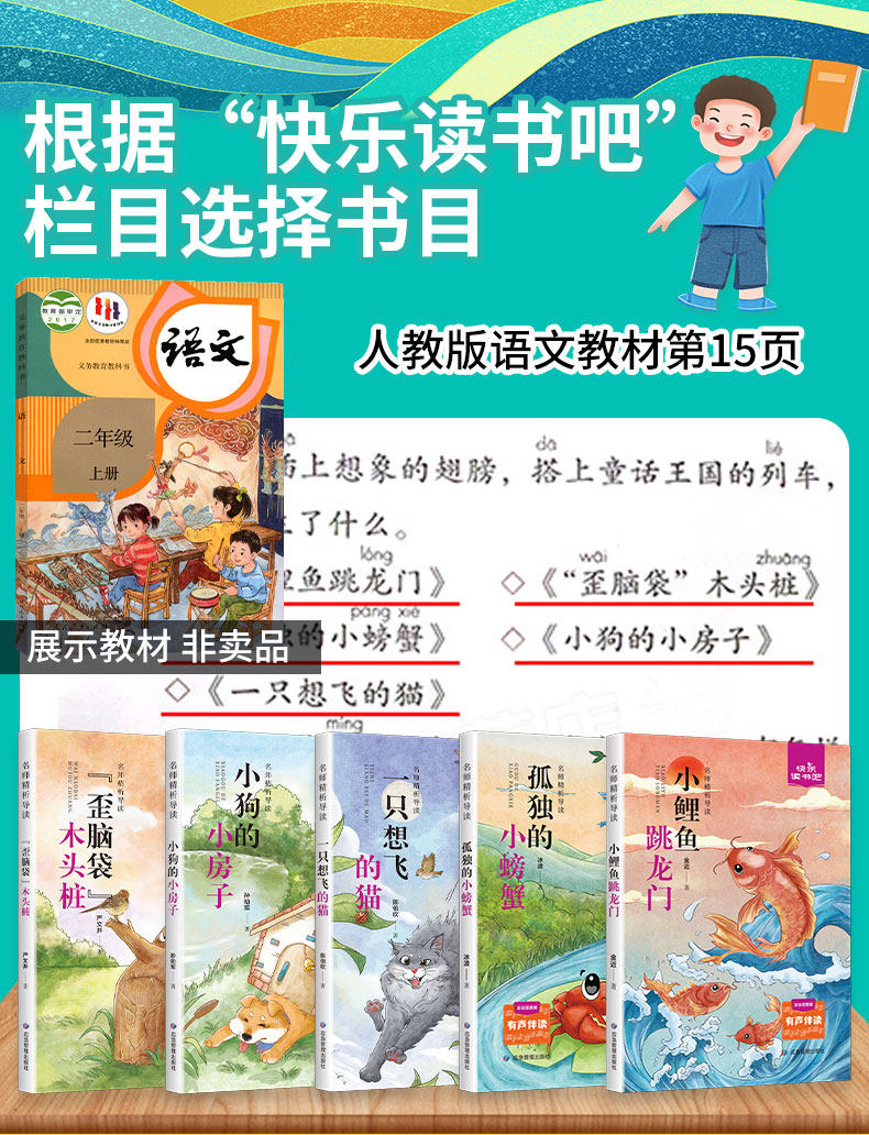 小鲤鱼跳龙门二年级上册快乐读书吧全套5册必读课外书一只想飞的猫孤独的小螃蟹注音版歪脑袋木头桩小狗的小房子人教版阅读跃龙门2