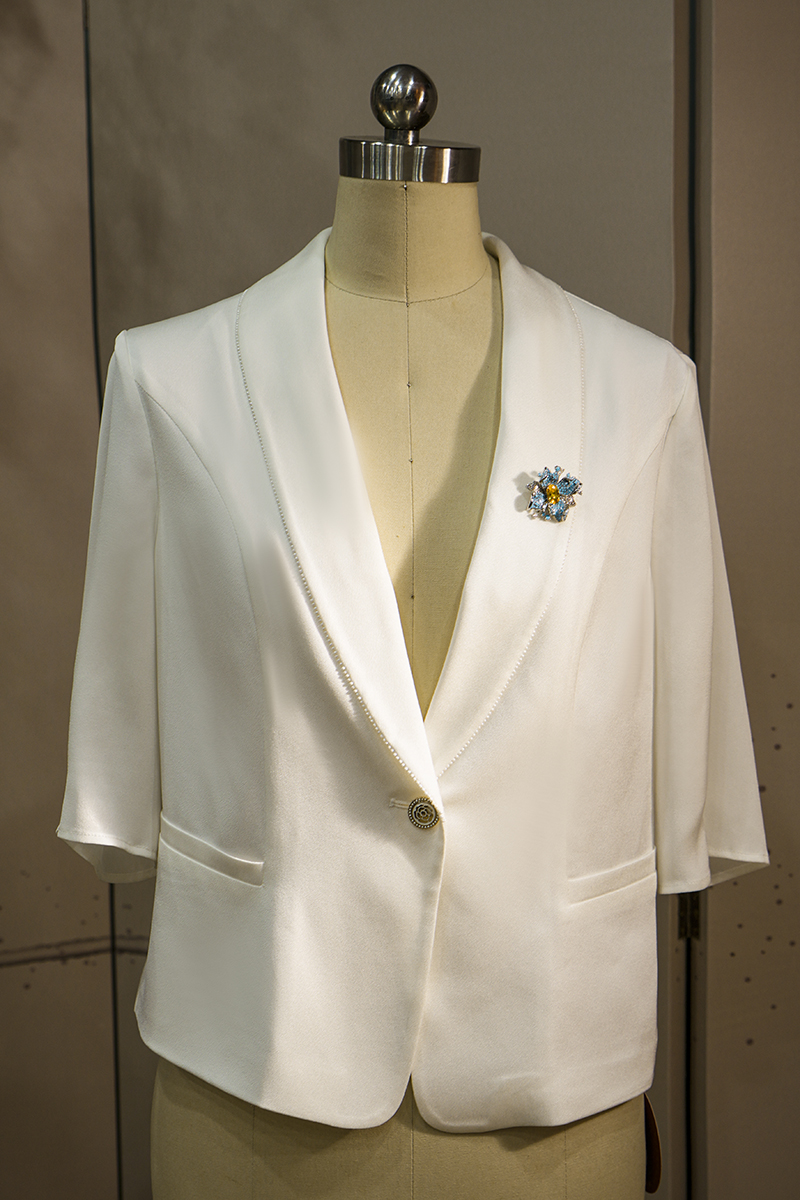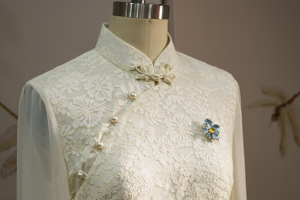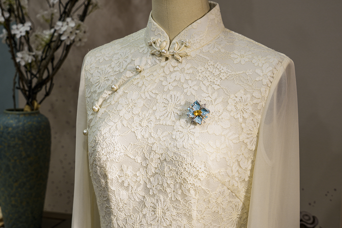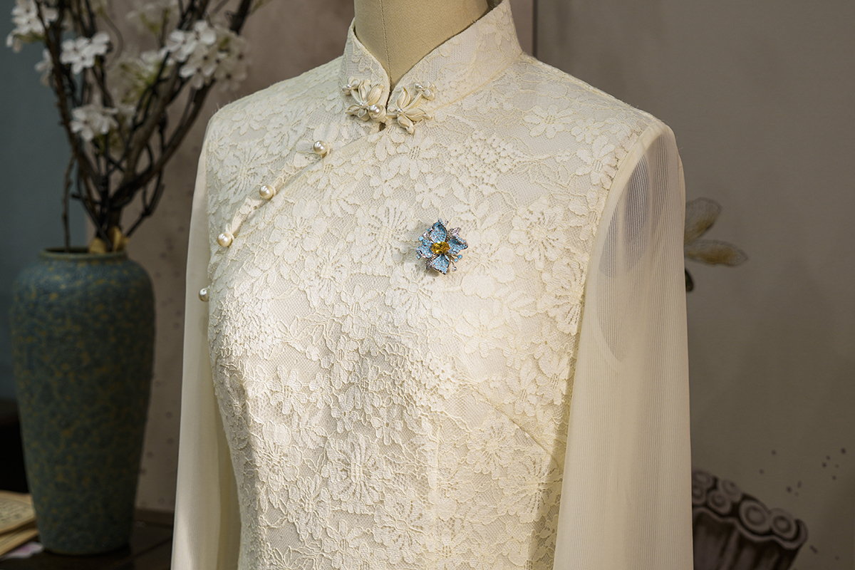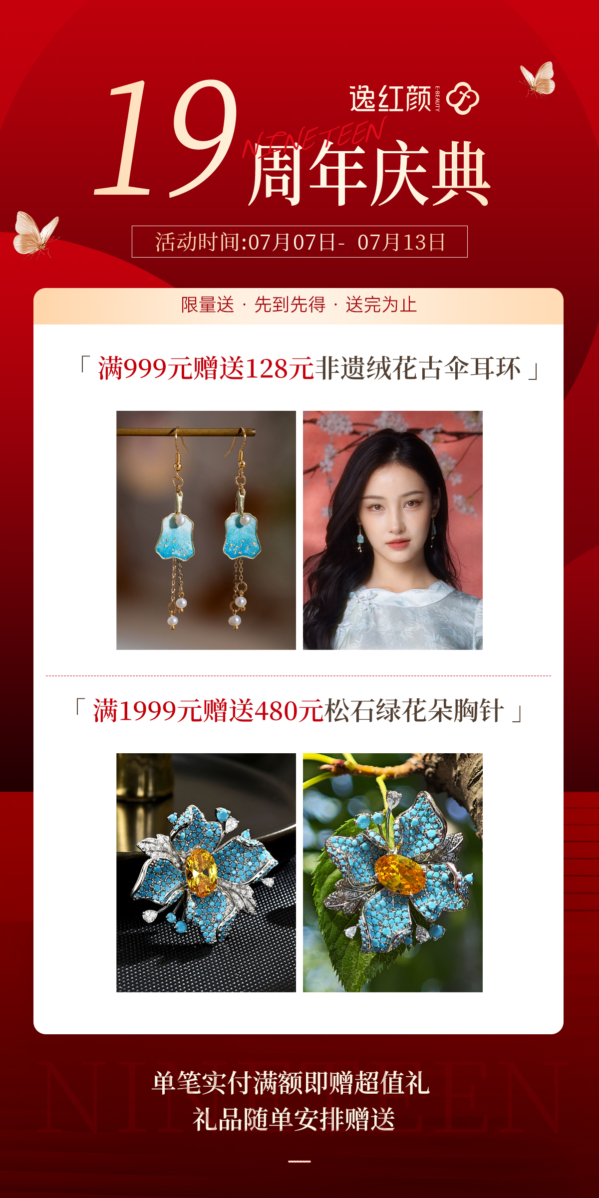 19周年庆满赠的精美礼品,可以的搭配各种旗袍、西装、吊带,佩戴在香云纱或者真丝这种高级织物上也不会伤害衣服的.