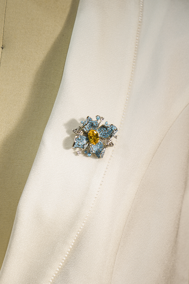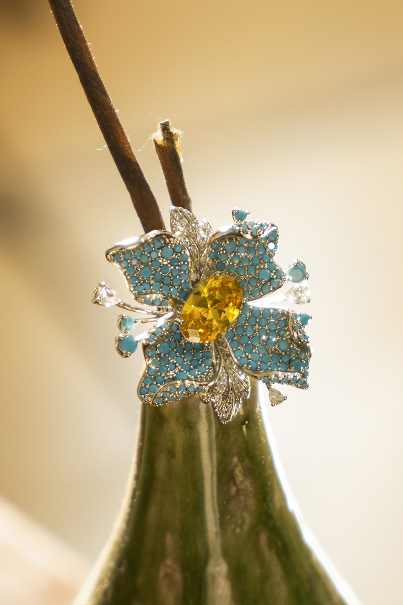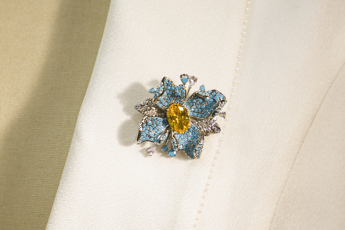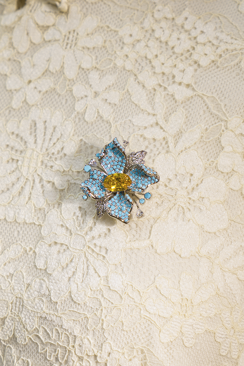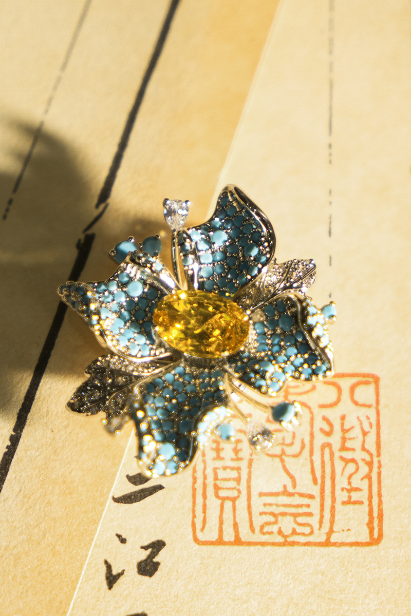 材质采用铜镀18K金,微镶3A+锆石+珐琅彩,不同于市面的低端产品,一般是合金镀仿金的,色泽没有这么好,这枚胸针流光溢彩的,非常的漂亮~~!!