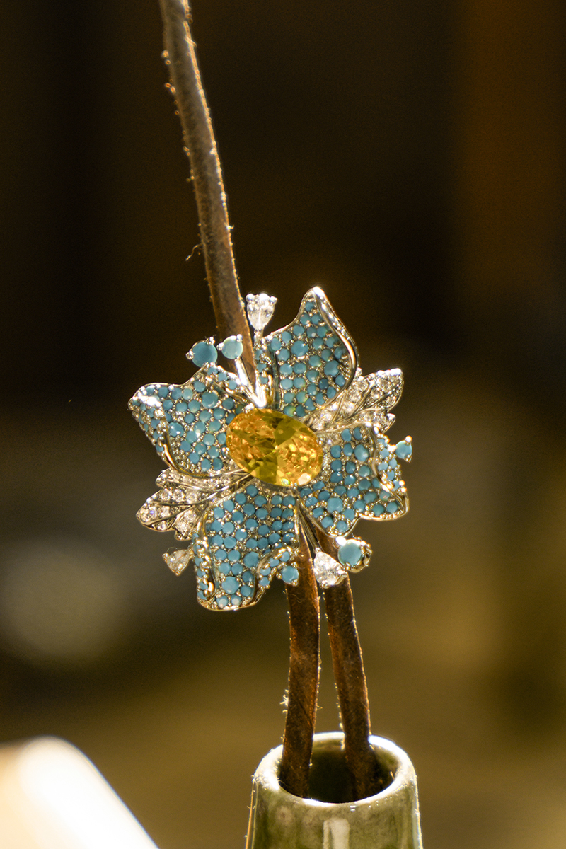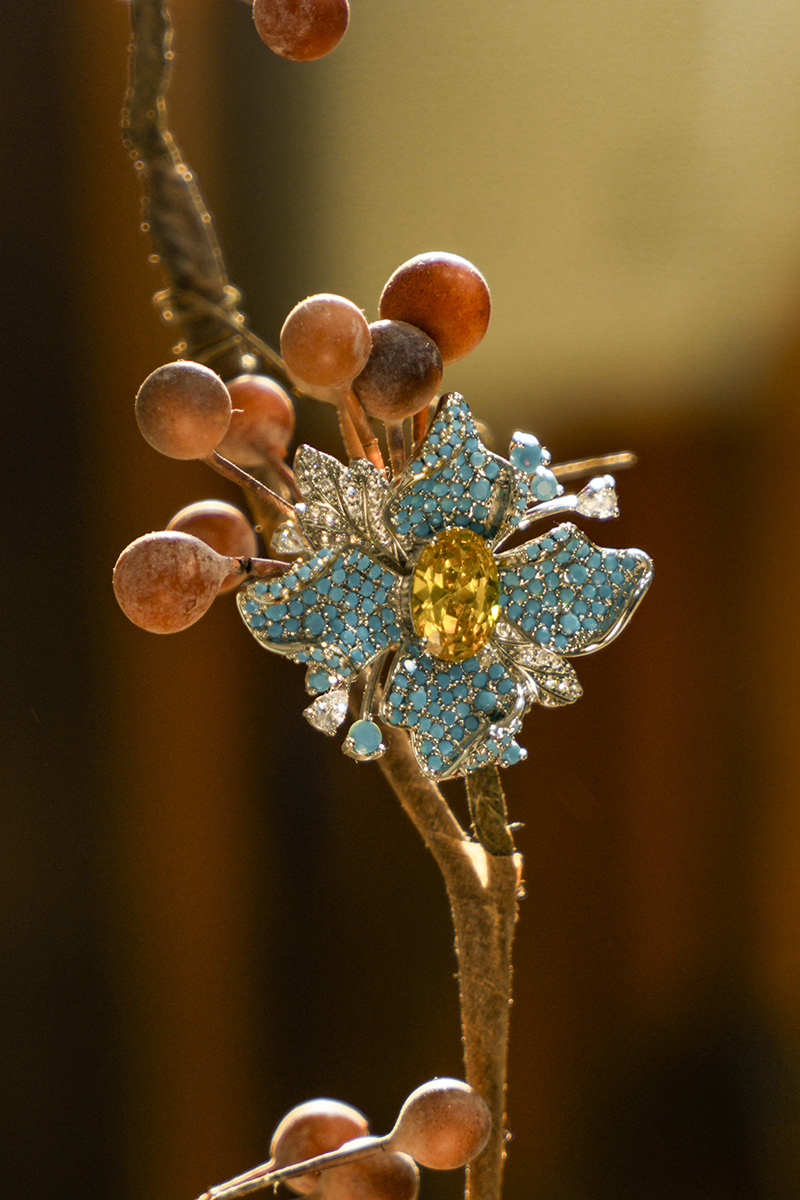 让旗袍更美丽的珠宝|松石绿花朵胸针