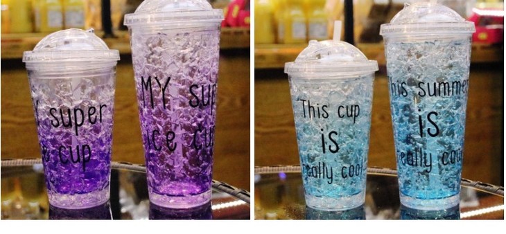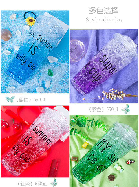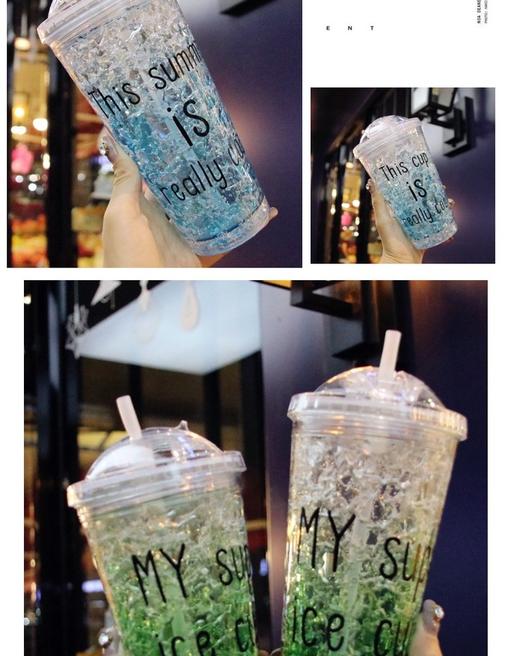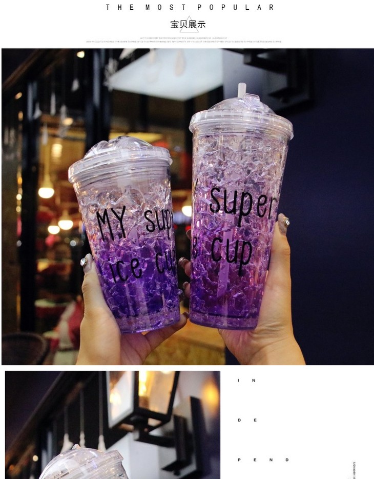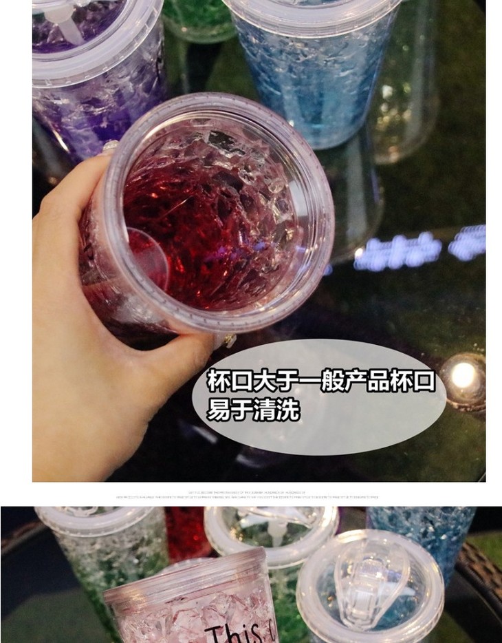 韩国创意夏日碎冰杯 双层冰酷杯带盖水杯吸管女生果汁杯,