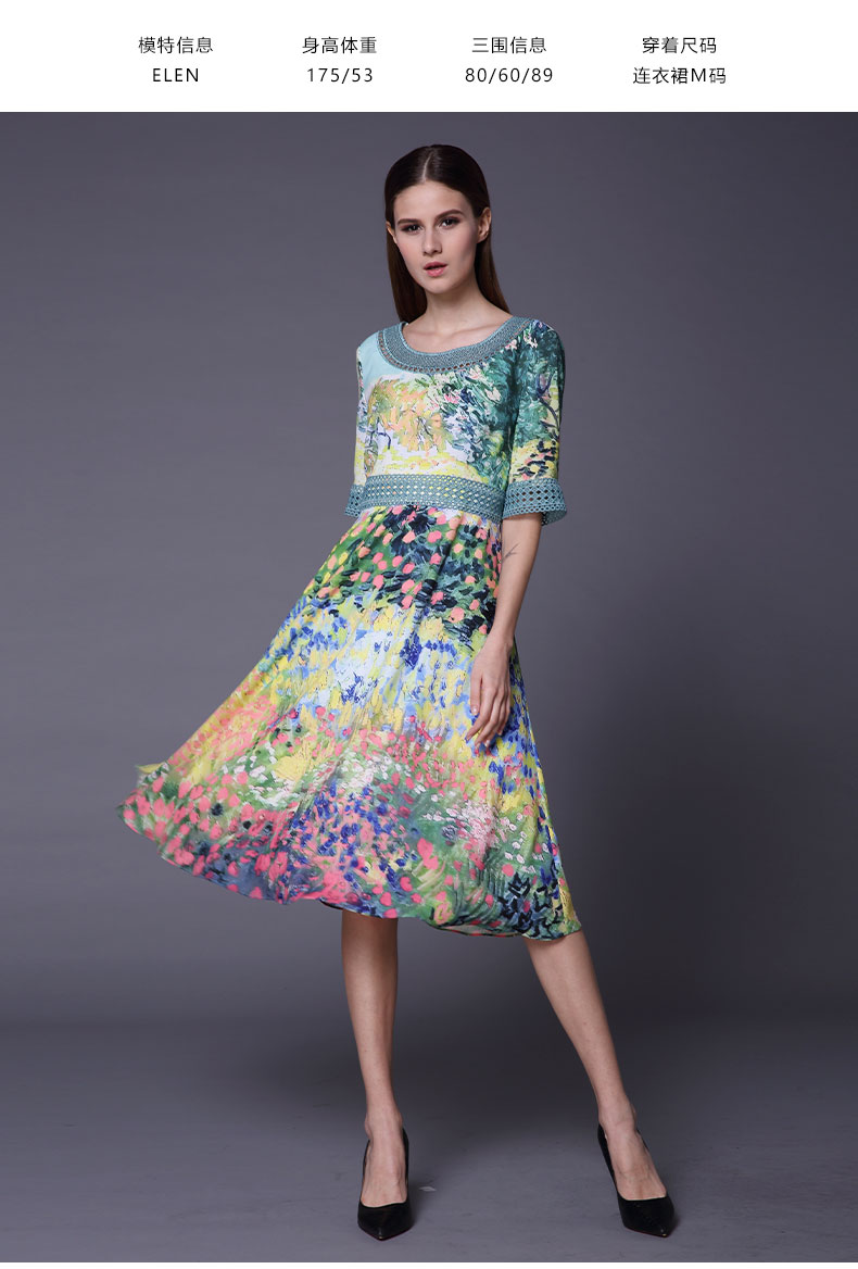 【伯妮斯茵】162S092--绿色连衣裙--鲜花盛开的花园--《生命之美-梵高的花园》