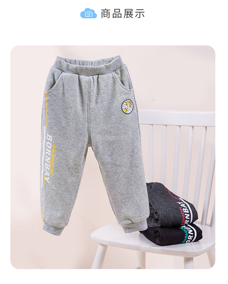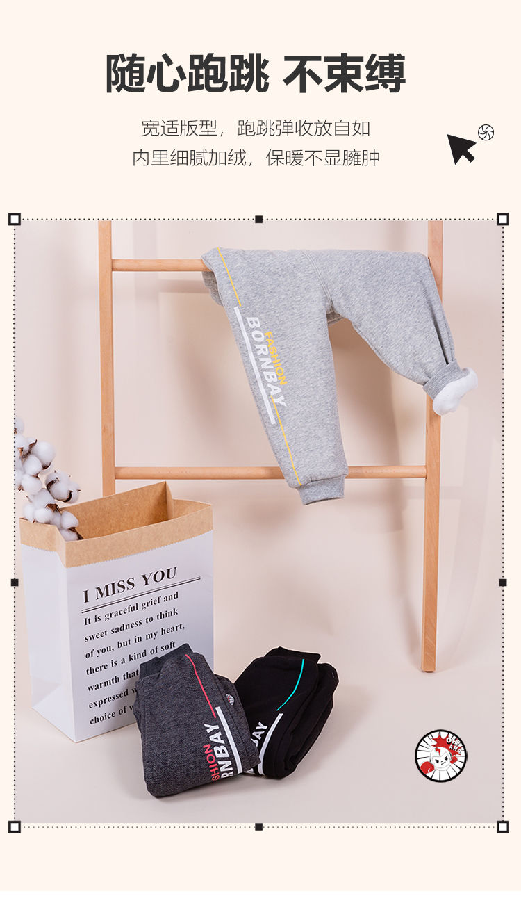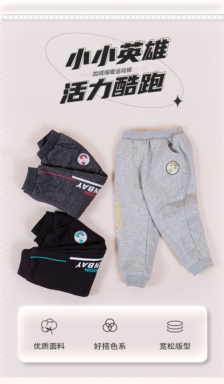 贝贝怡儿童加绒加厚运动裤男童冬季保暖休闲长裤宽松中大童裤子214K2262