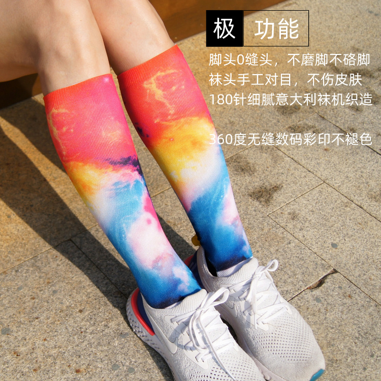 JINNMIX轻力花火长筒梯度压缩跑步袜