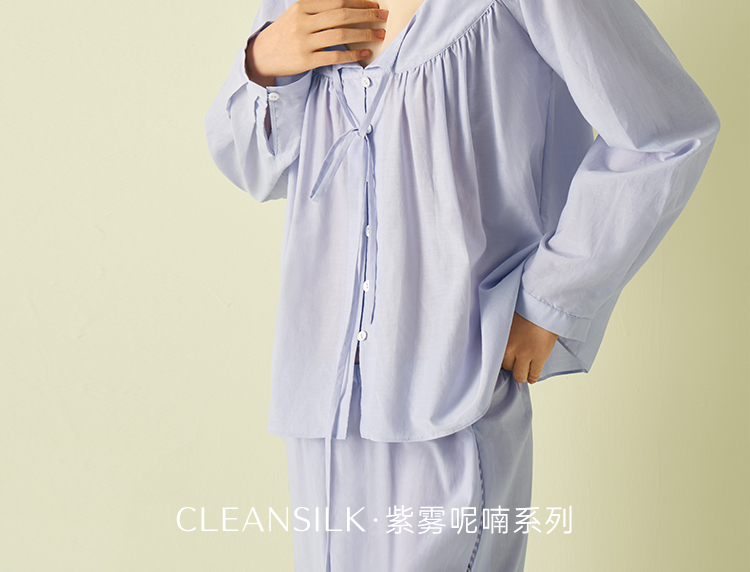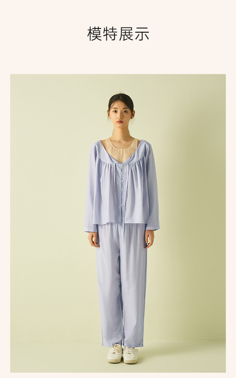 打破单调】桑罗丝棉假两件睡衣套装女撞色拼接领口桑蚕丝可外穿家居服