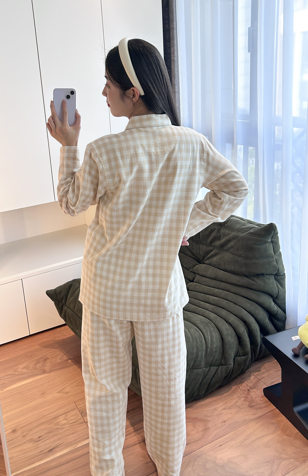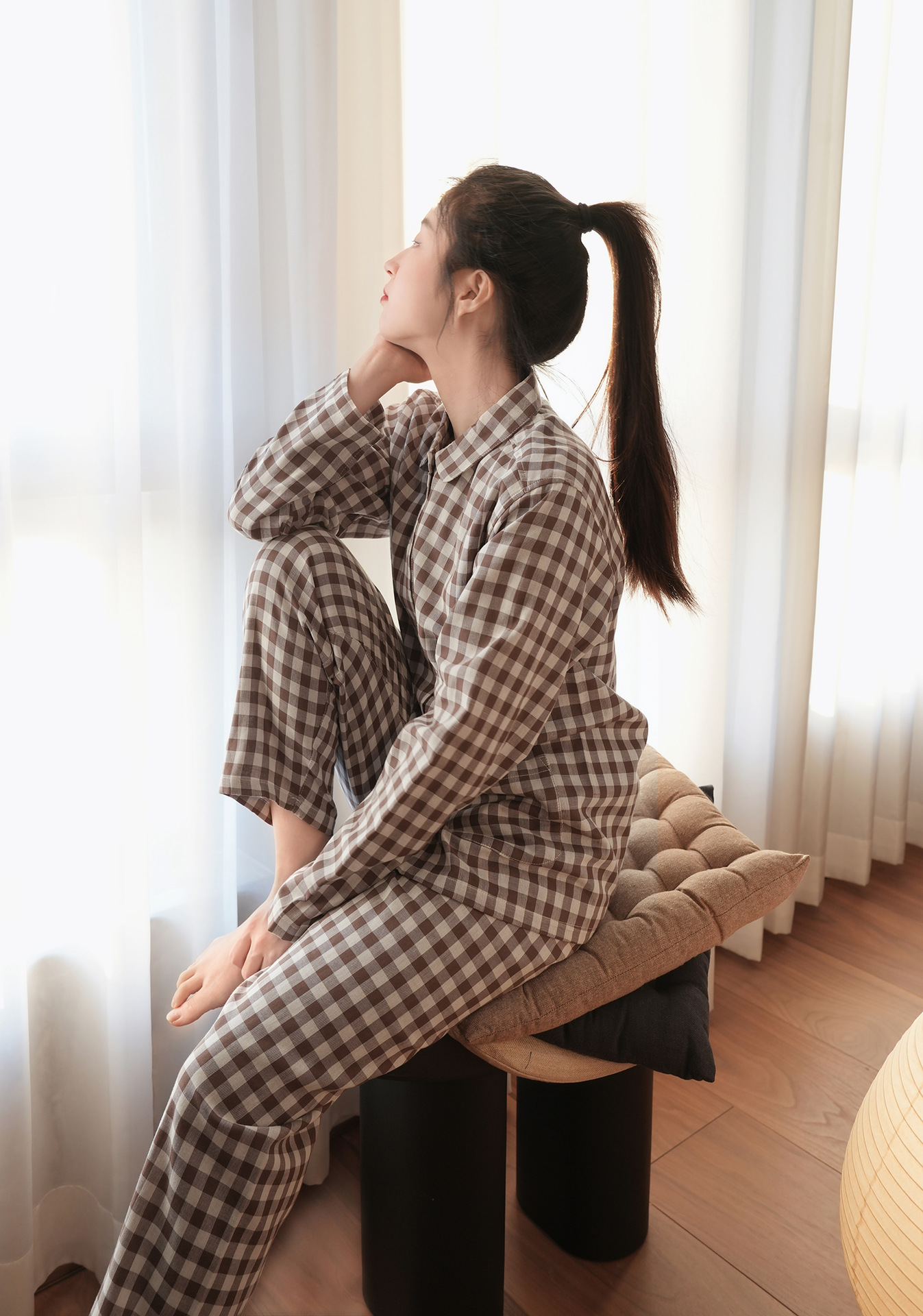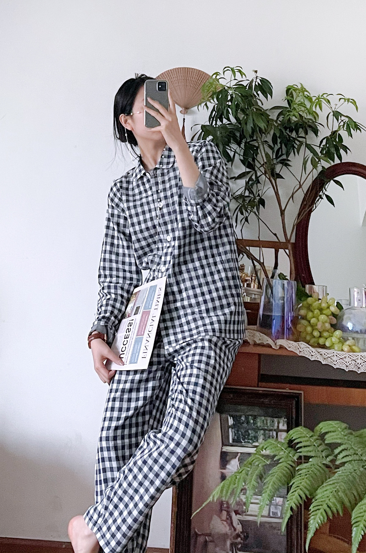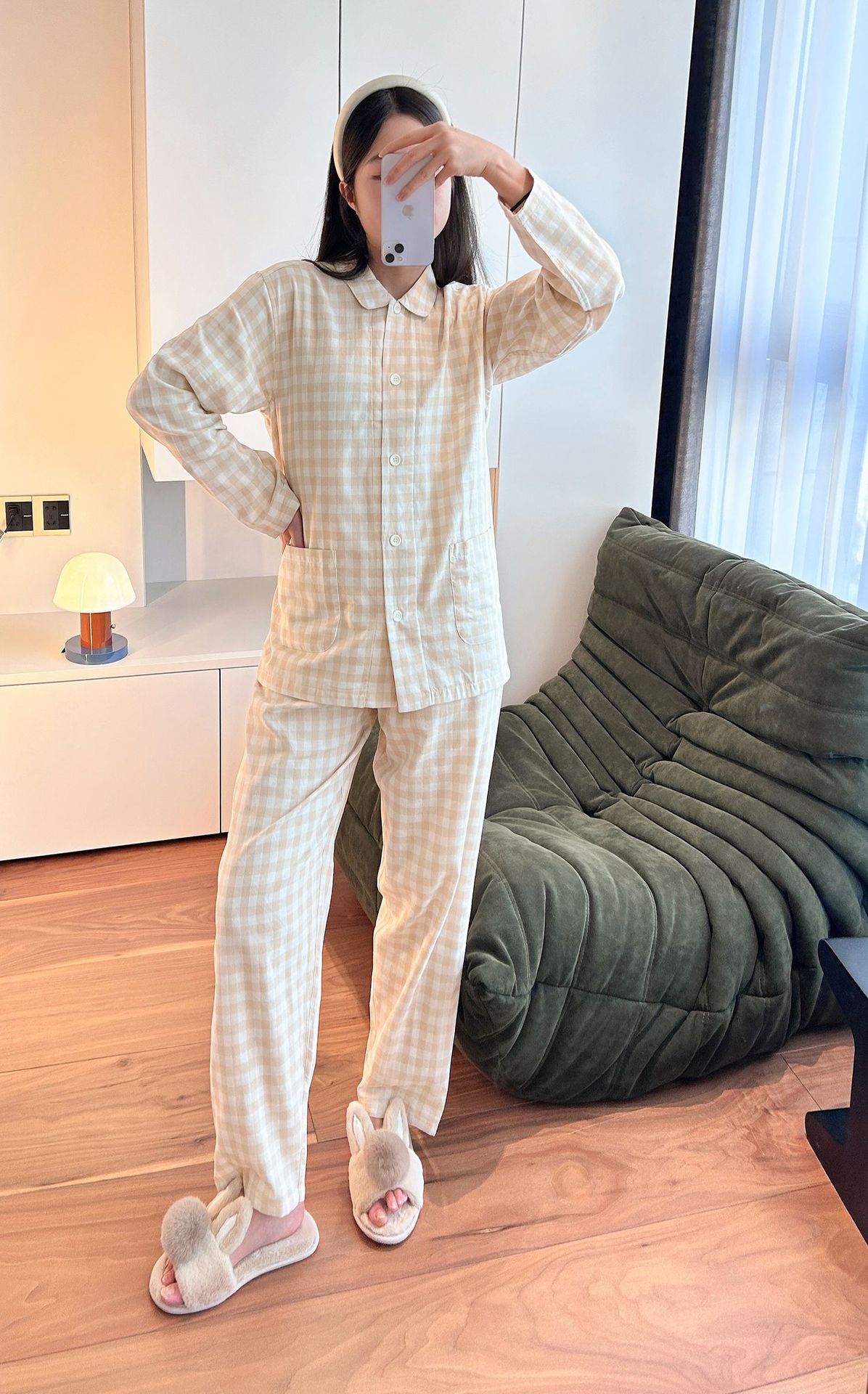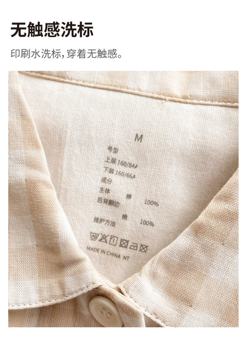 【双层纱睡衣】全棉双层纱睡衣套装无侧缝日式良品格子小点春夏情侣家居服套装