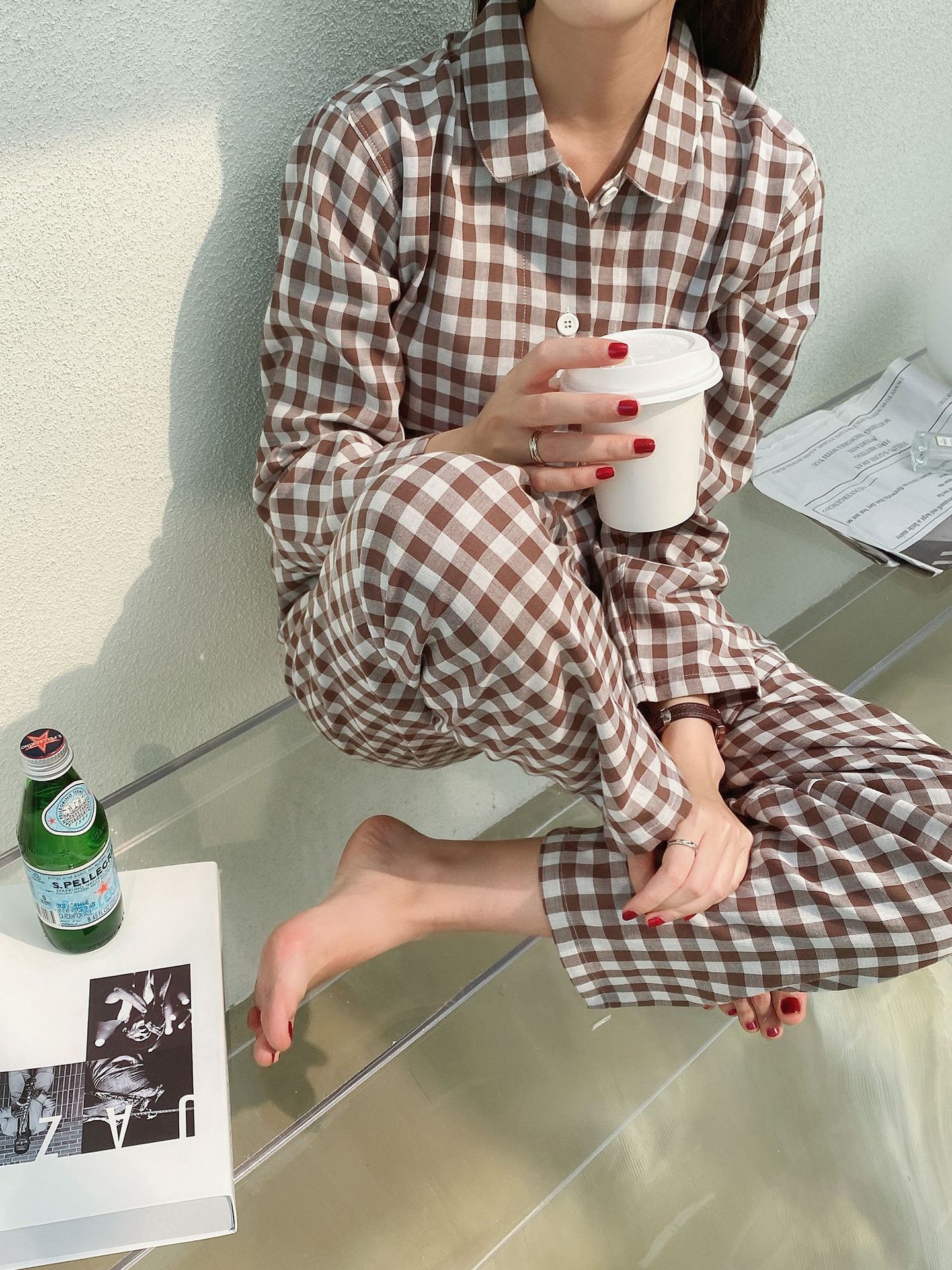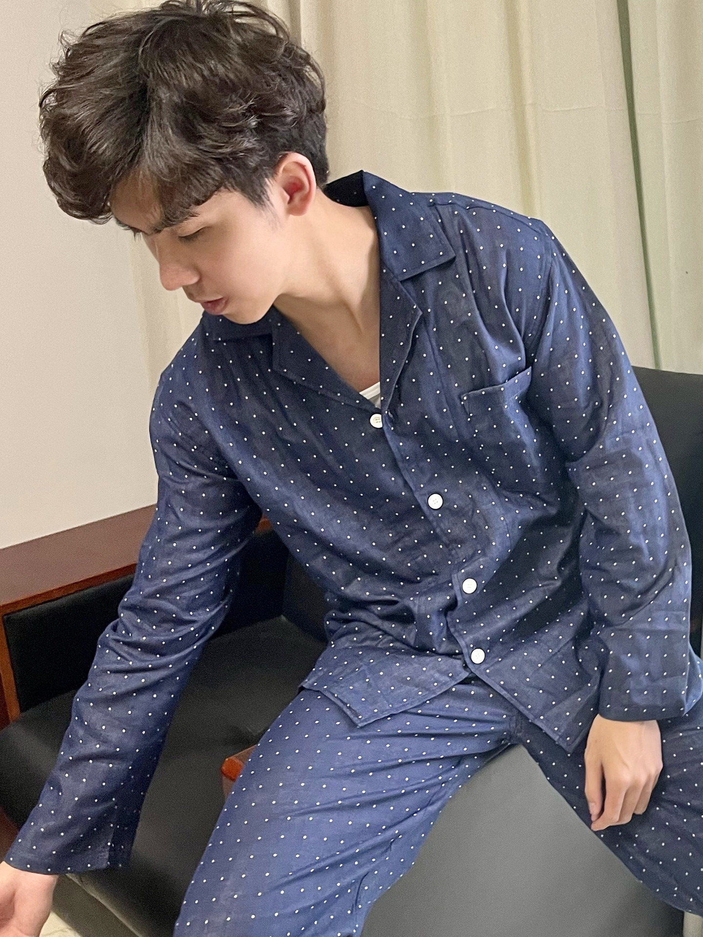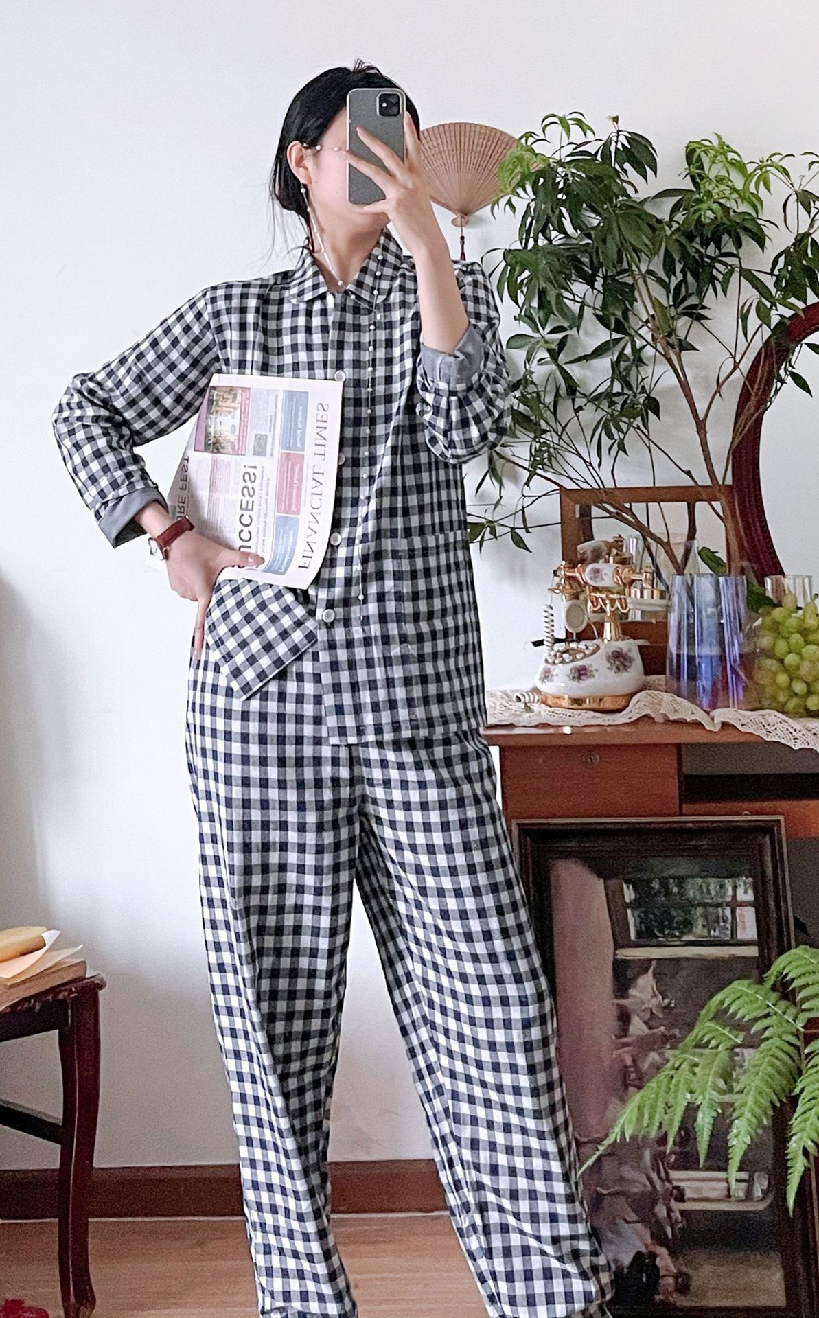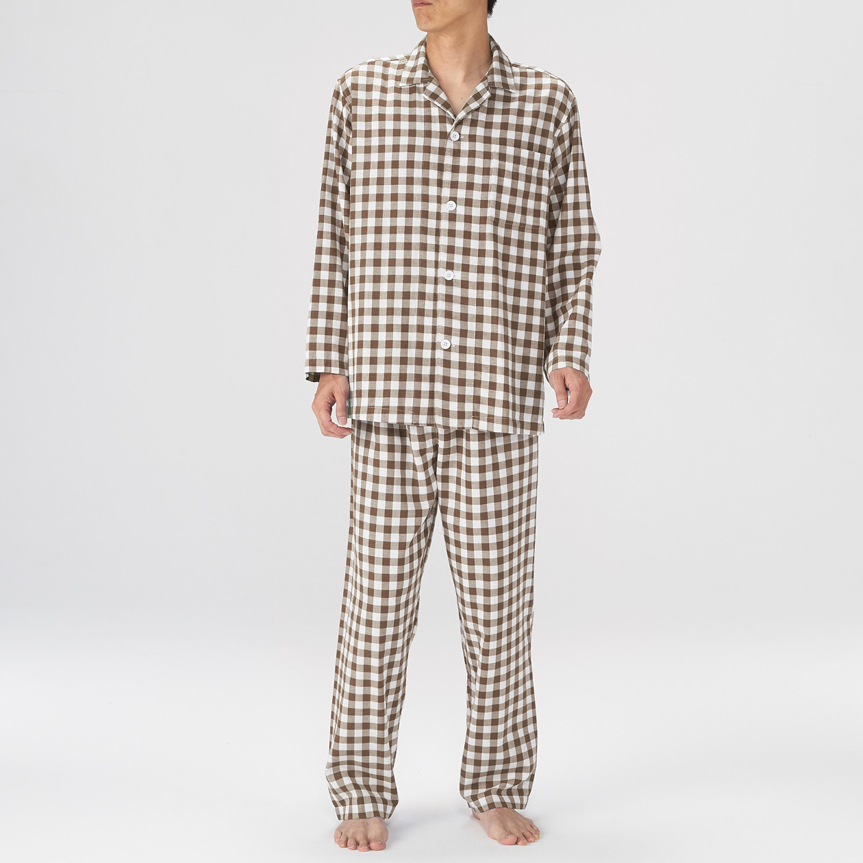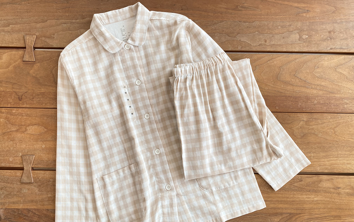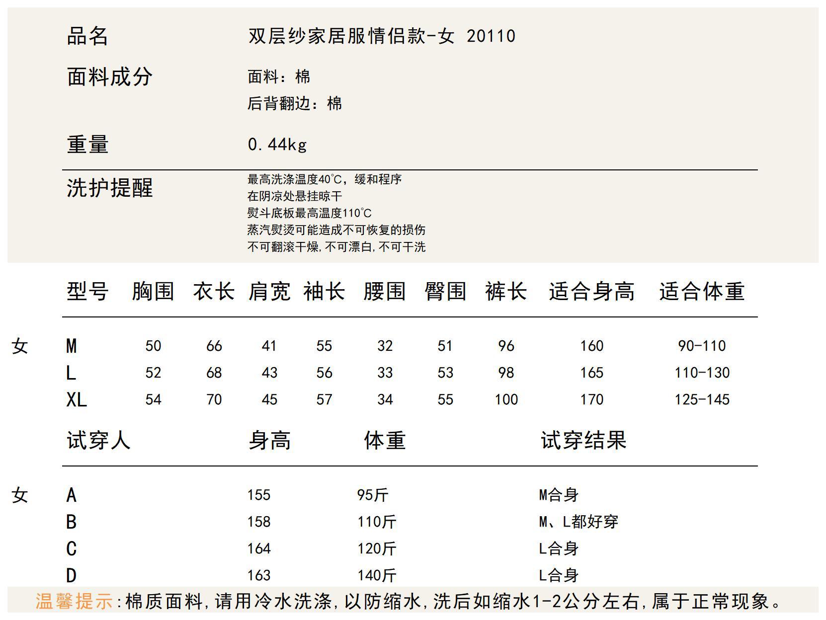 【双层纱睡衣】全棉双层纱睡衣套装无侧缝日式良品格子小点春夏情侣家居服套装