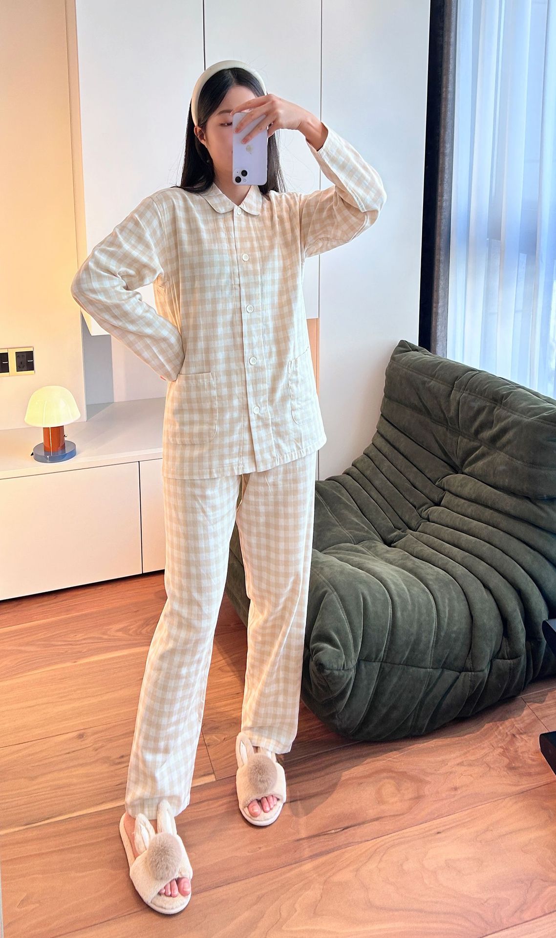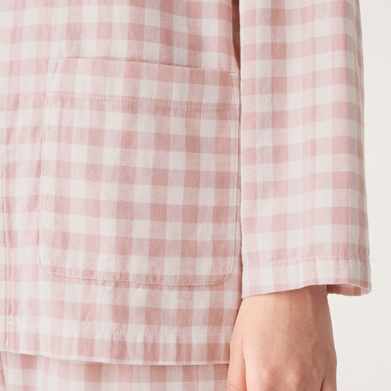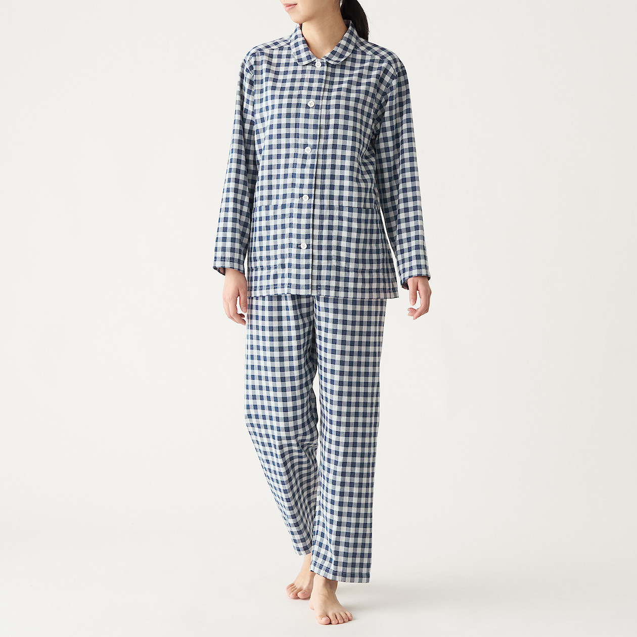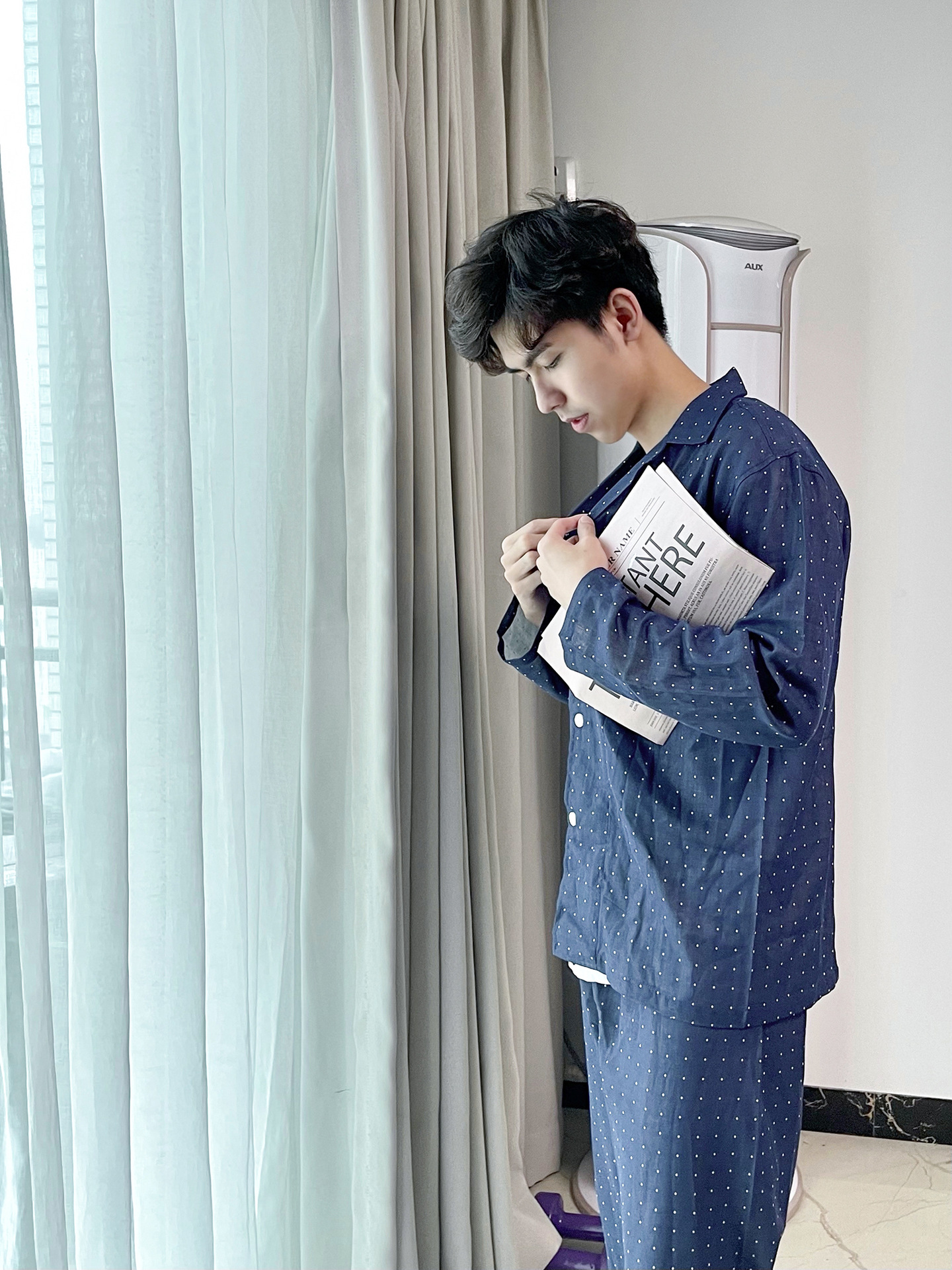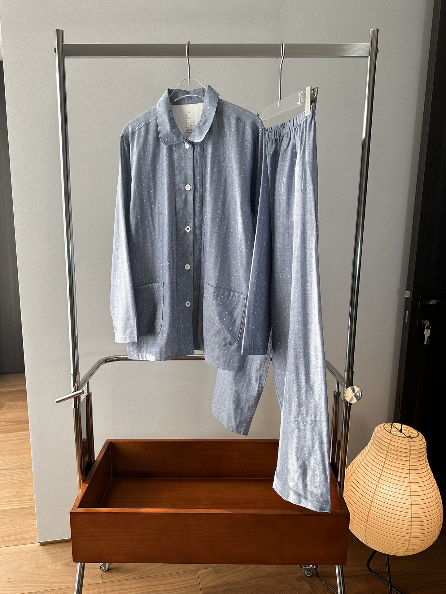 【双层纱睡衣】全棉双层纱睡衣套装无侧缝日式良品格子小点春夏情侣家居服套装