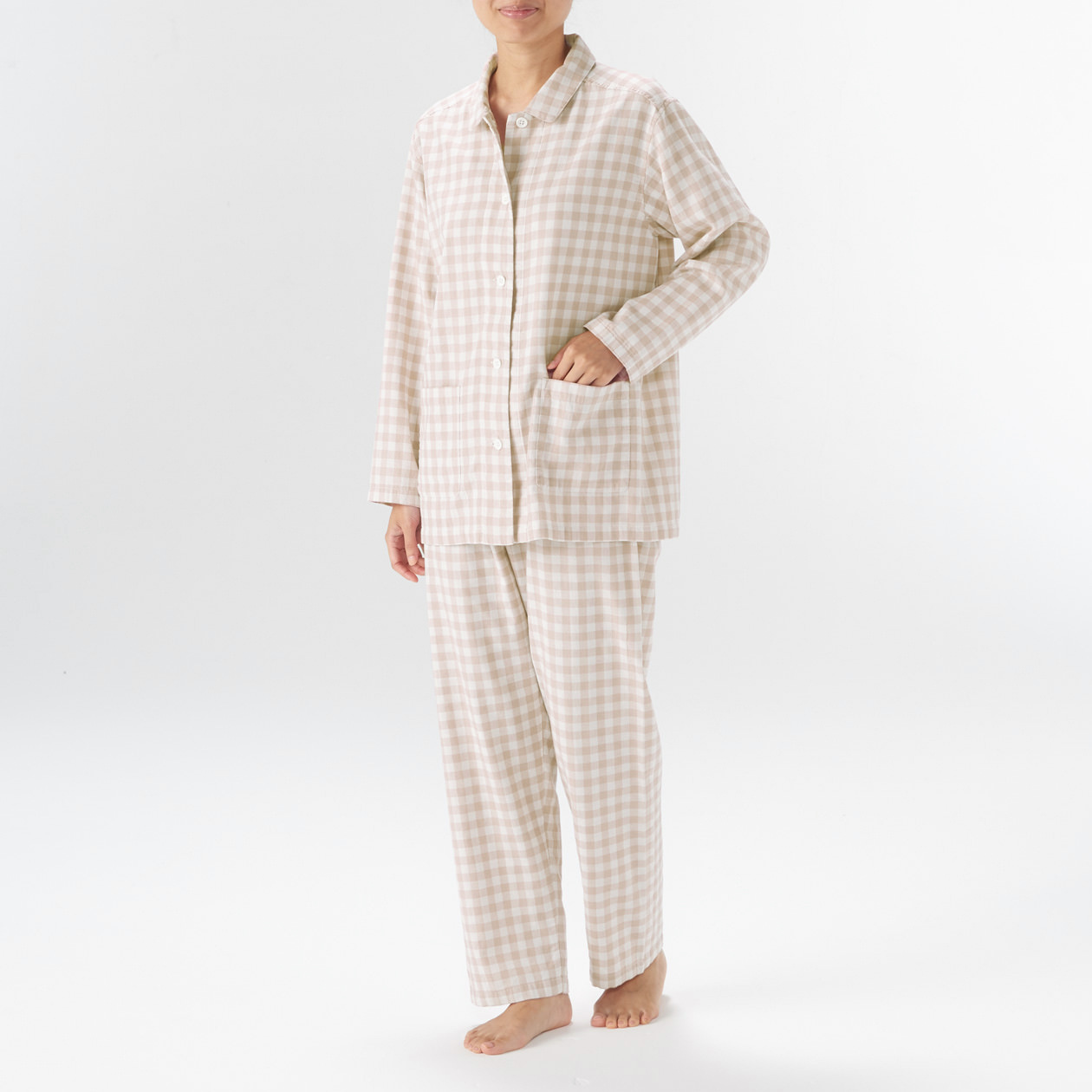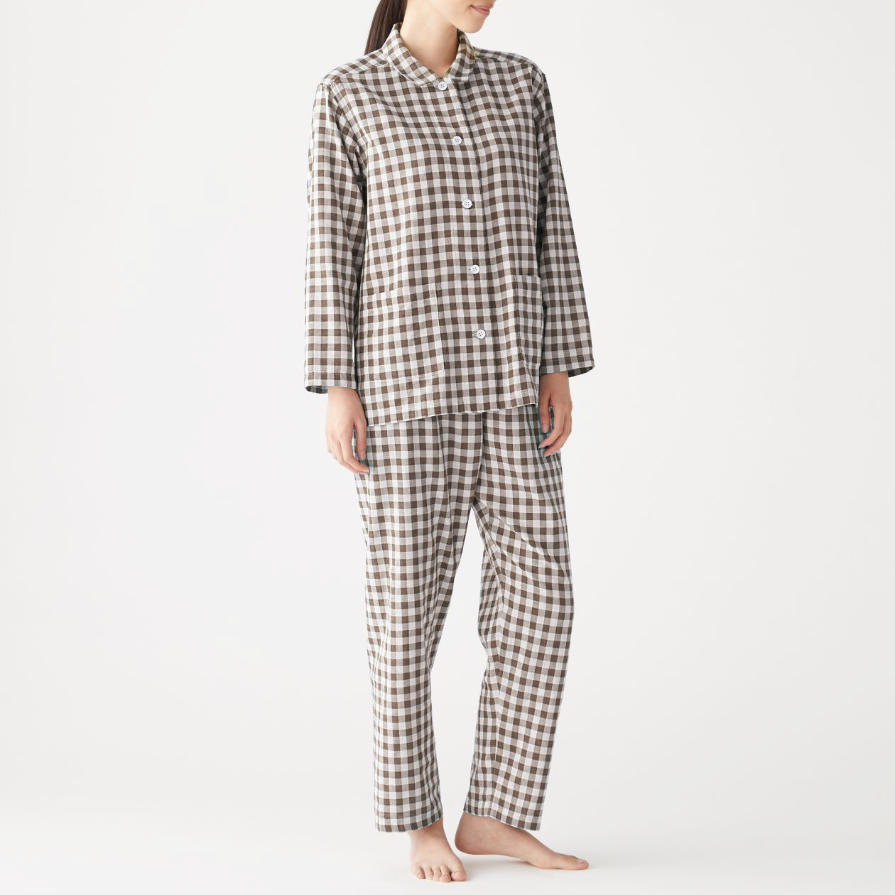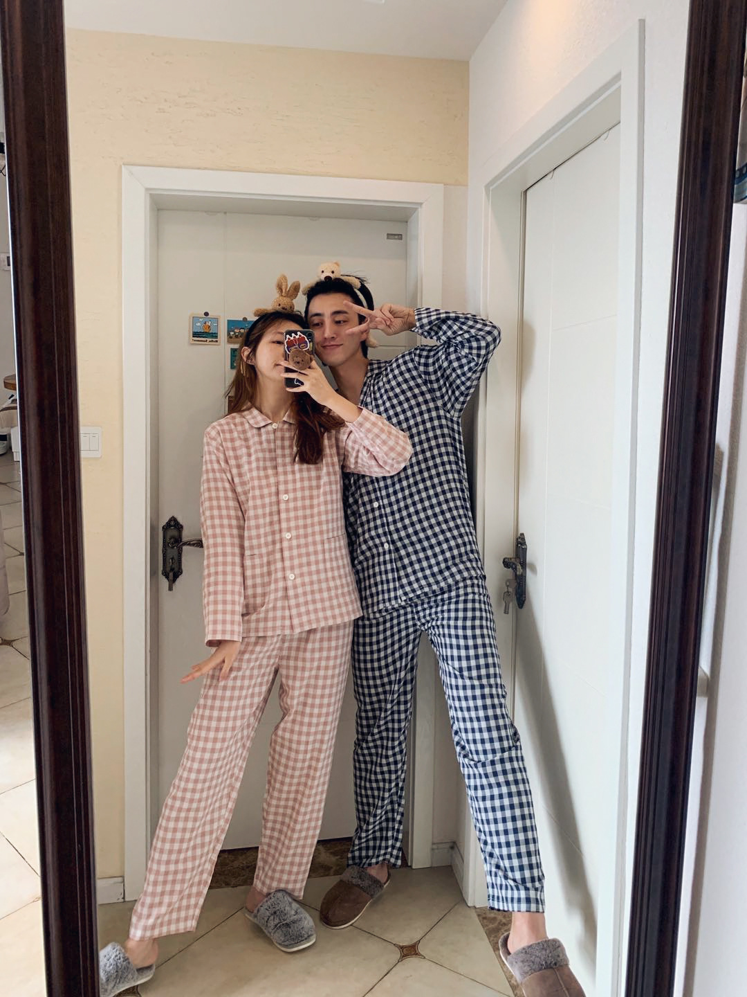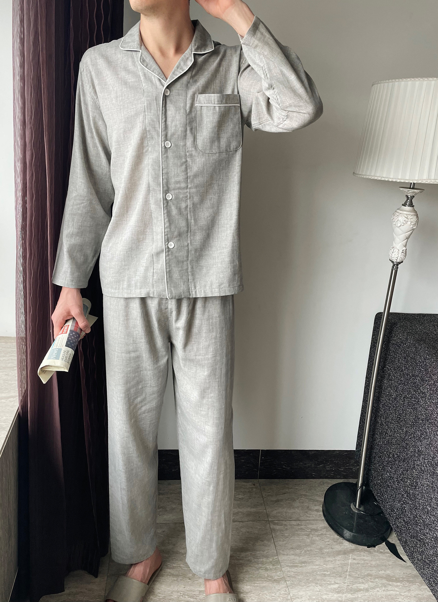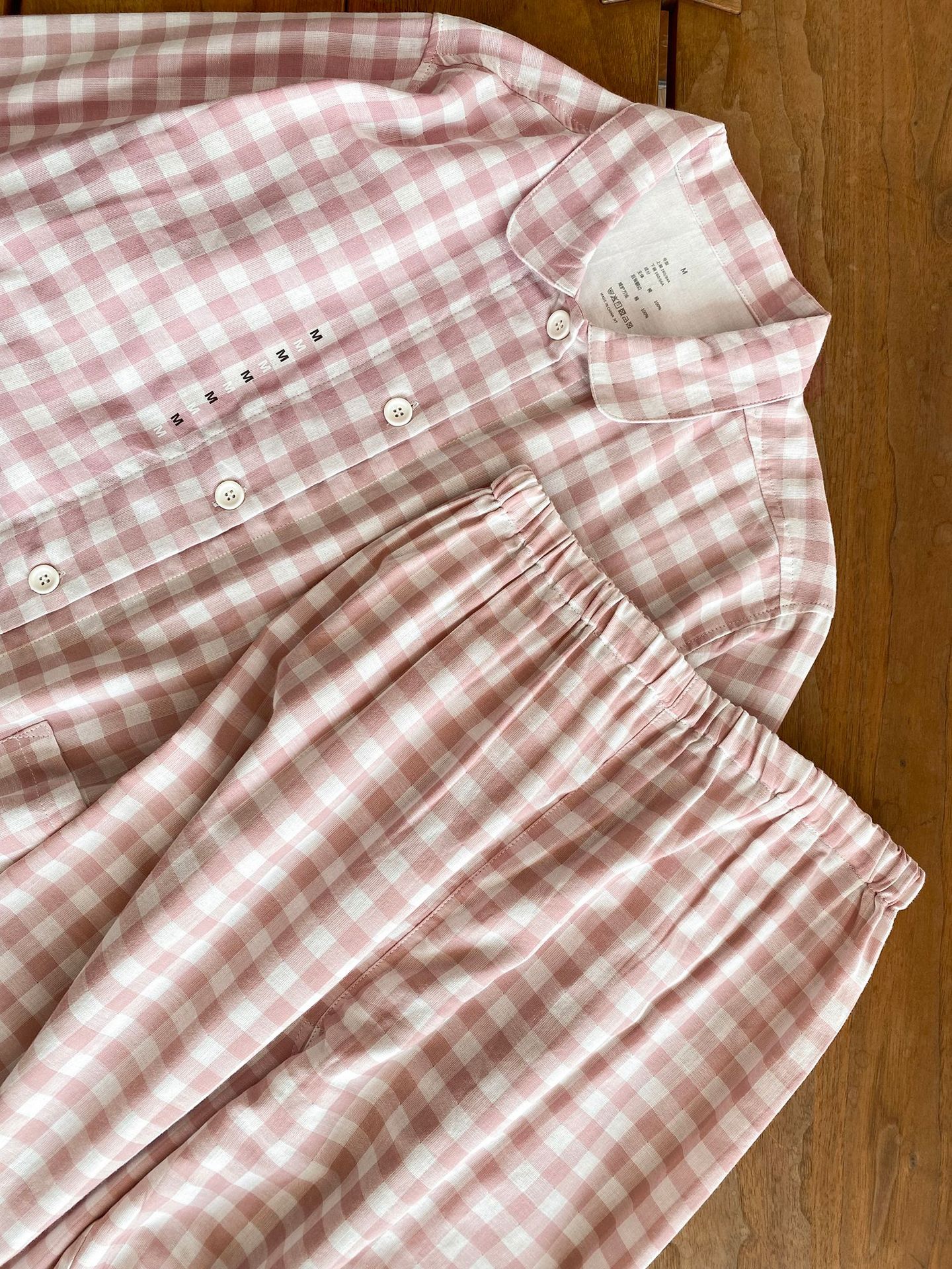 【双层纱睡衣】全棉双层纱睡衣套装无侧缝日式良品格子小点春夏情侣家居服套装