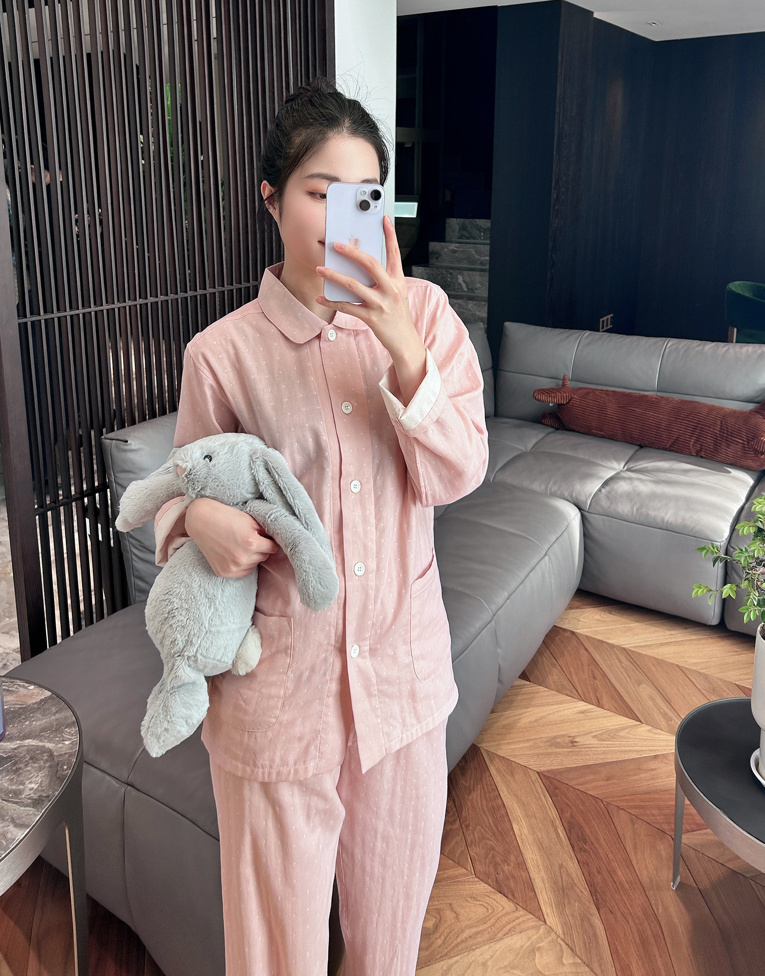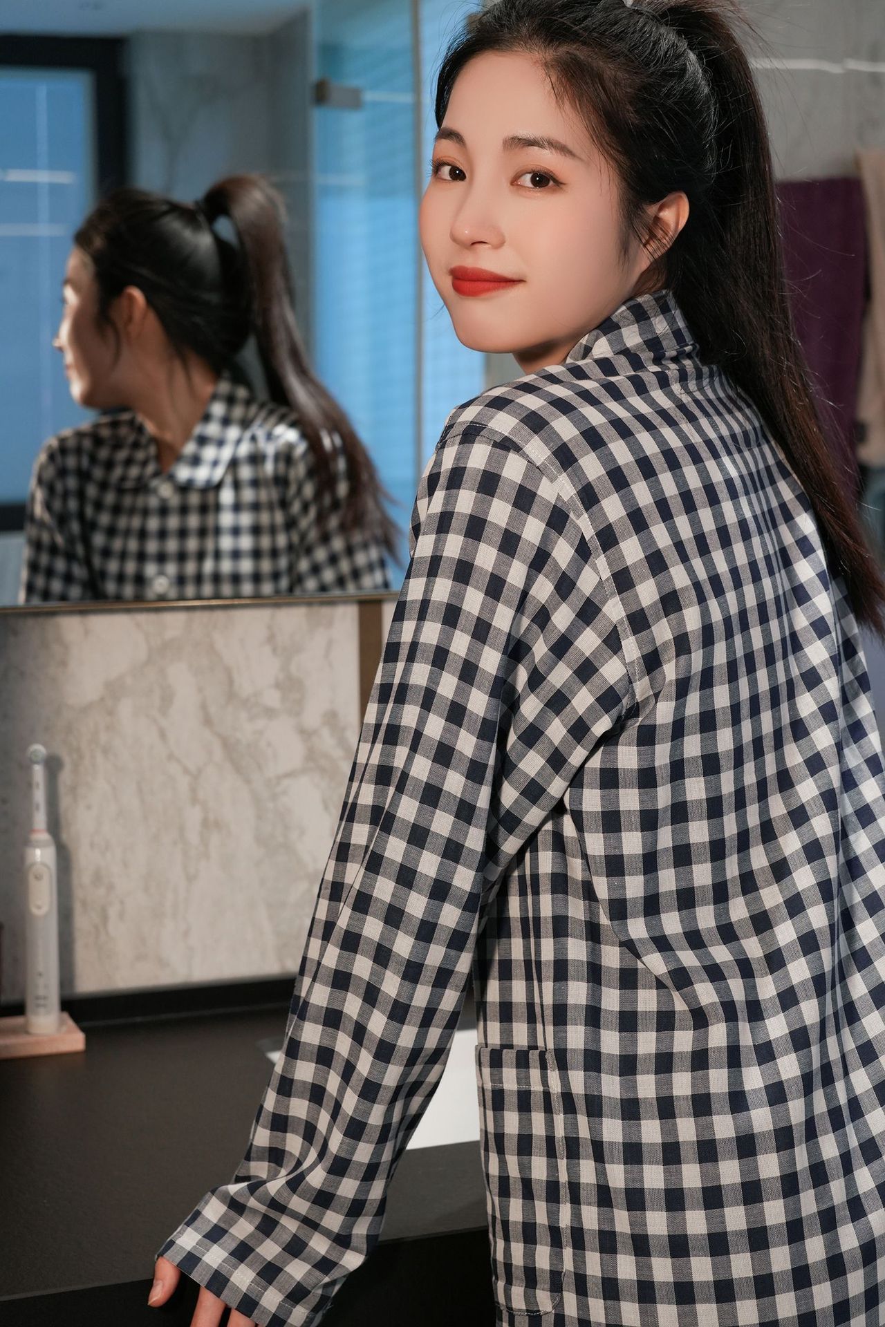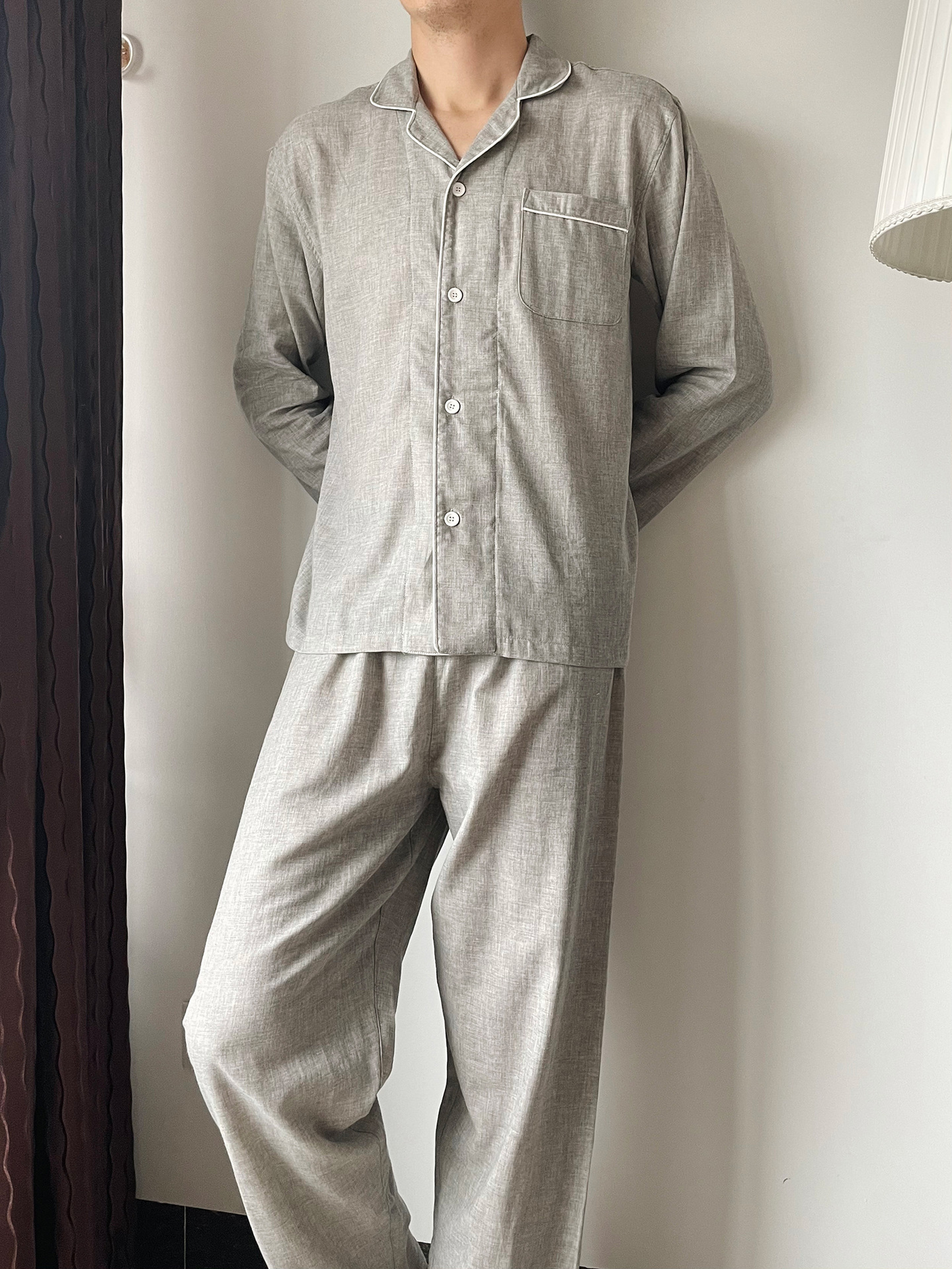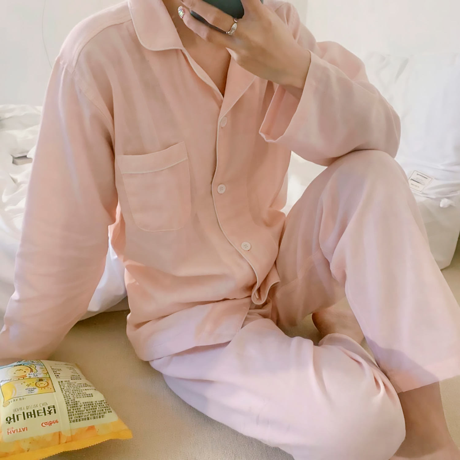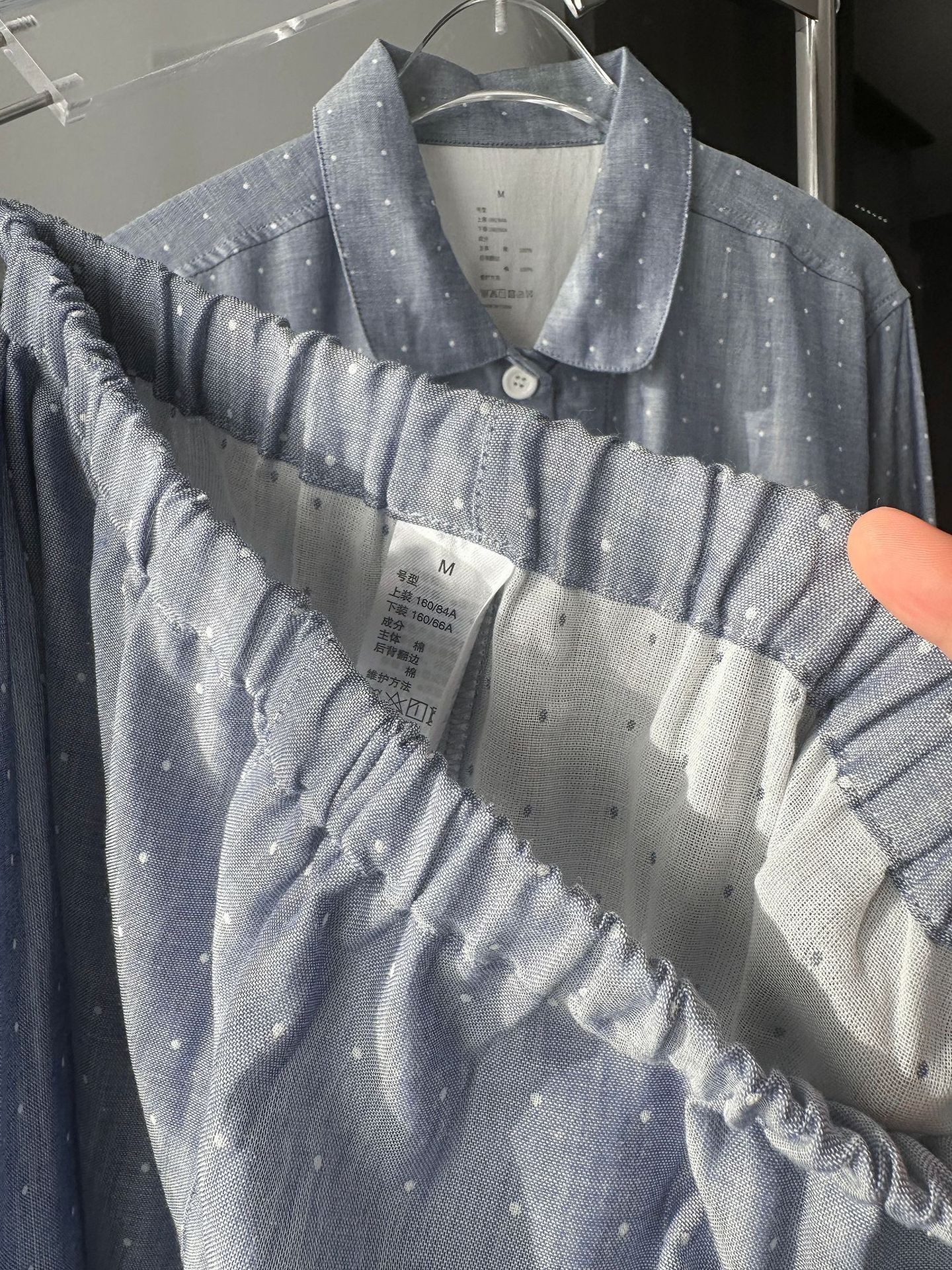 【双层纱睡衣】全棉双层纱睡衣套装无侧缝日式良品格子小点春夏情侣家居服套装