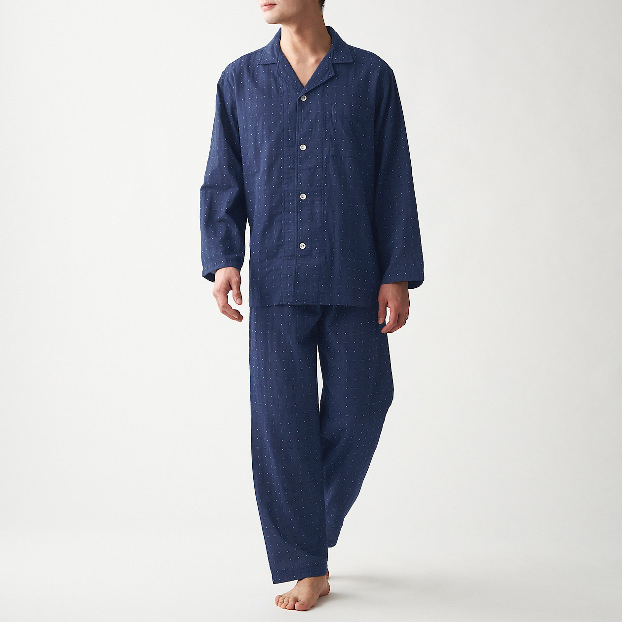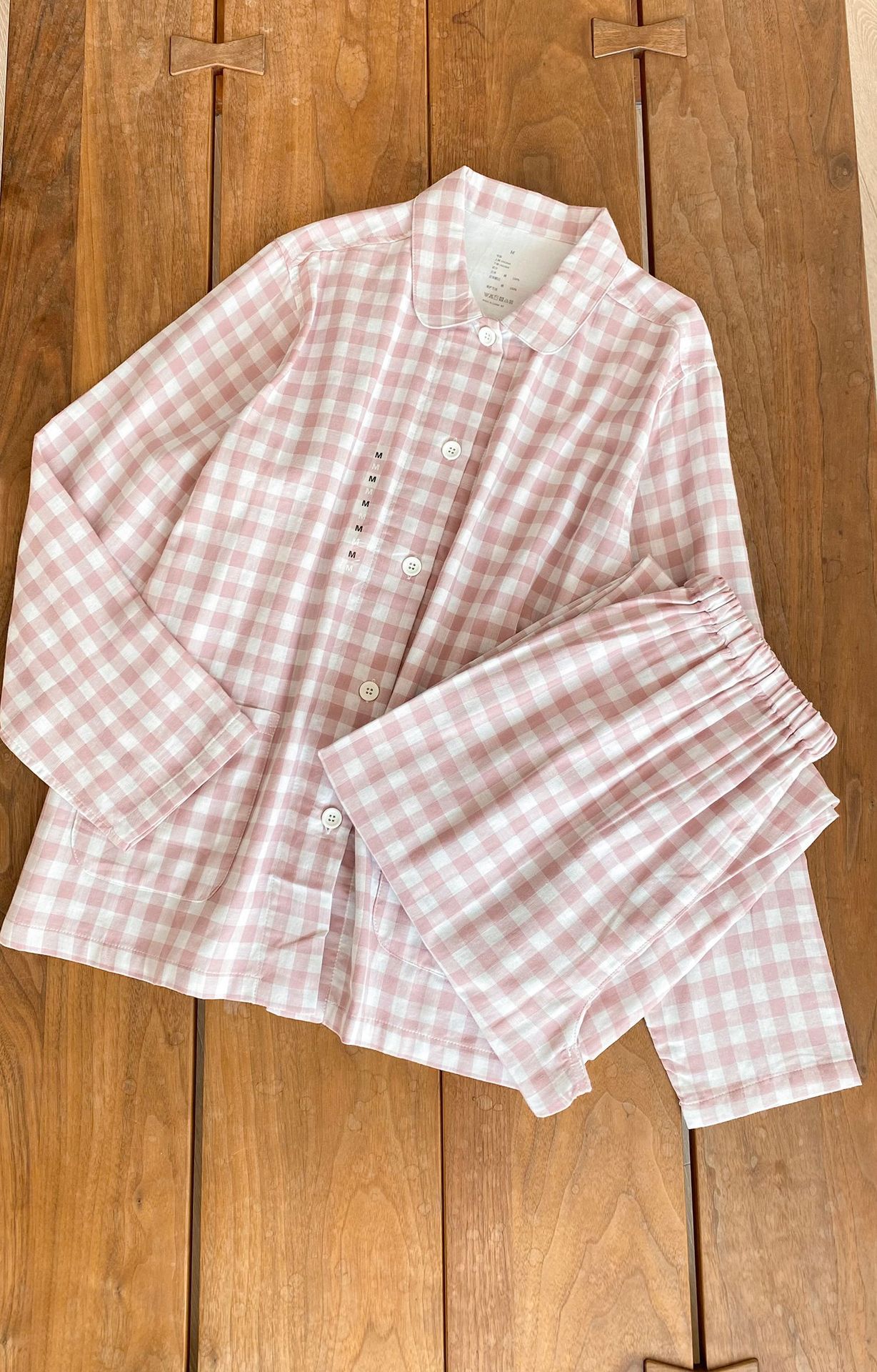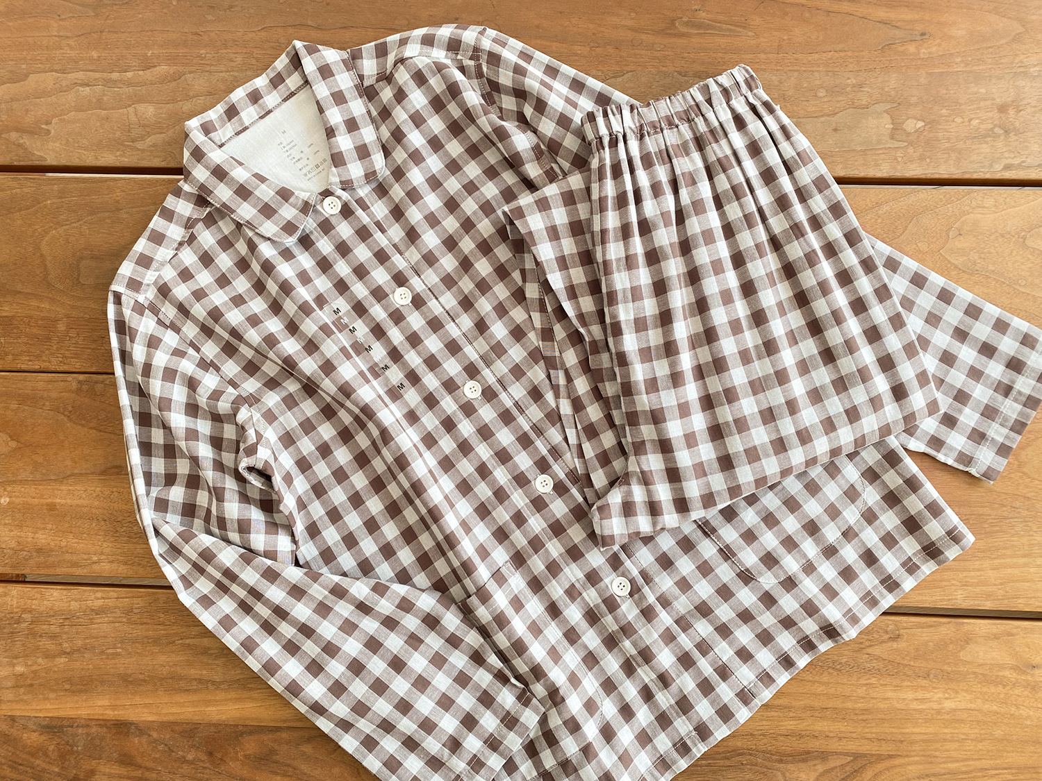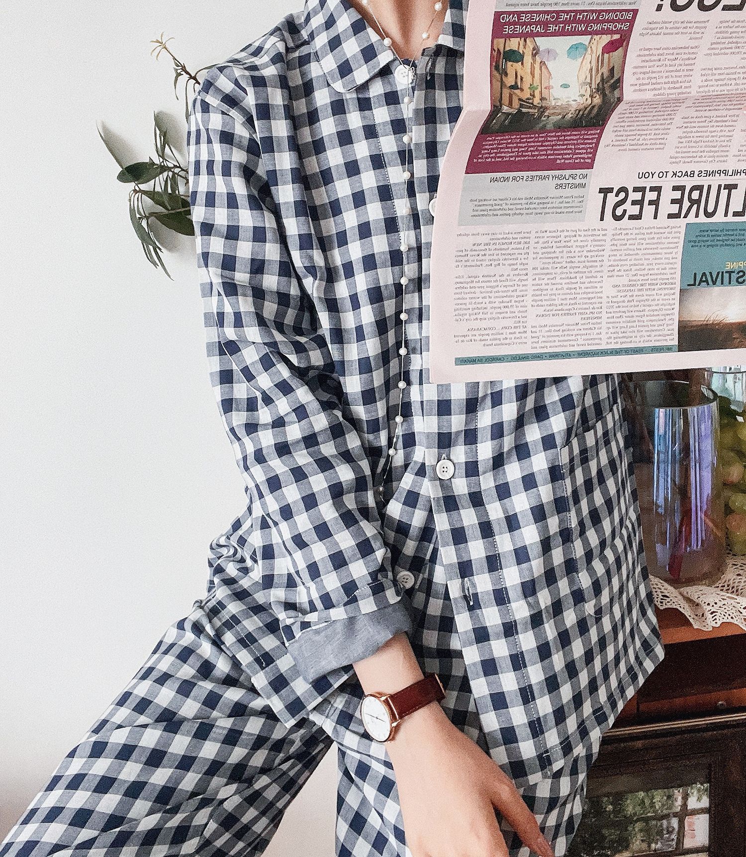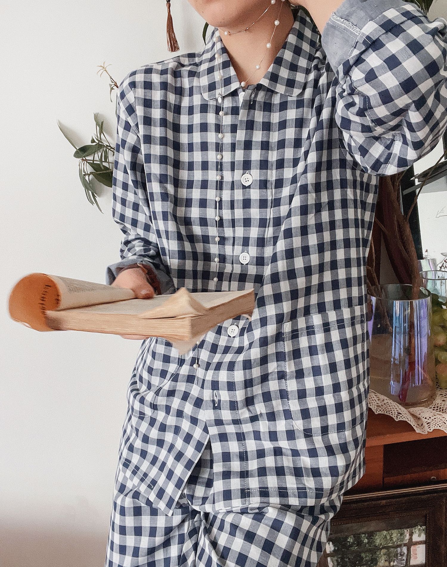 【双层纱睡衣】全棉双层纱睡衣套装无侧缝日式良品格子小点春夏情侣家居服套装