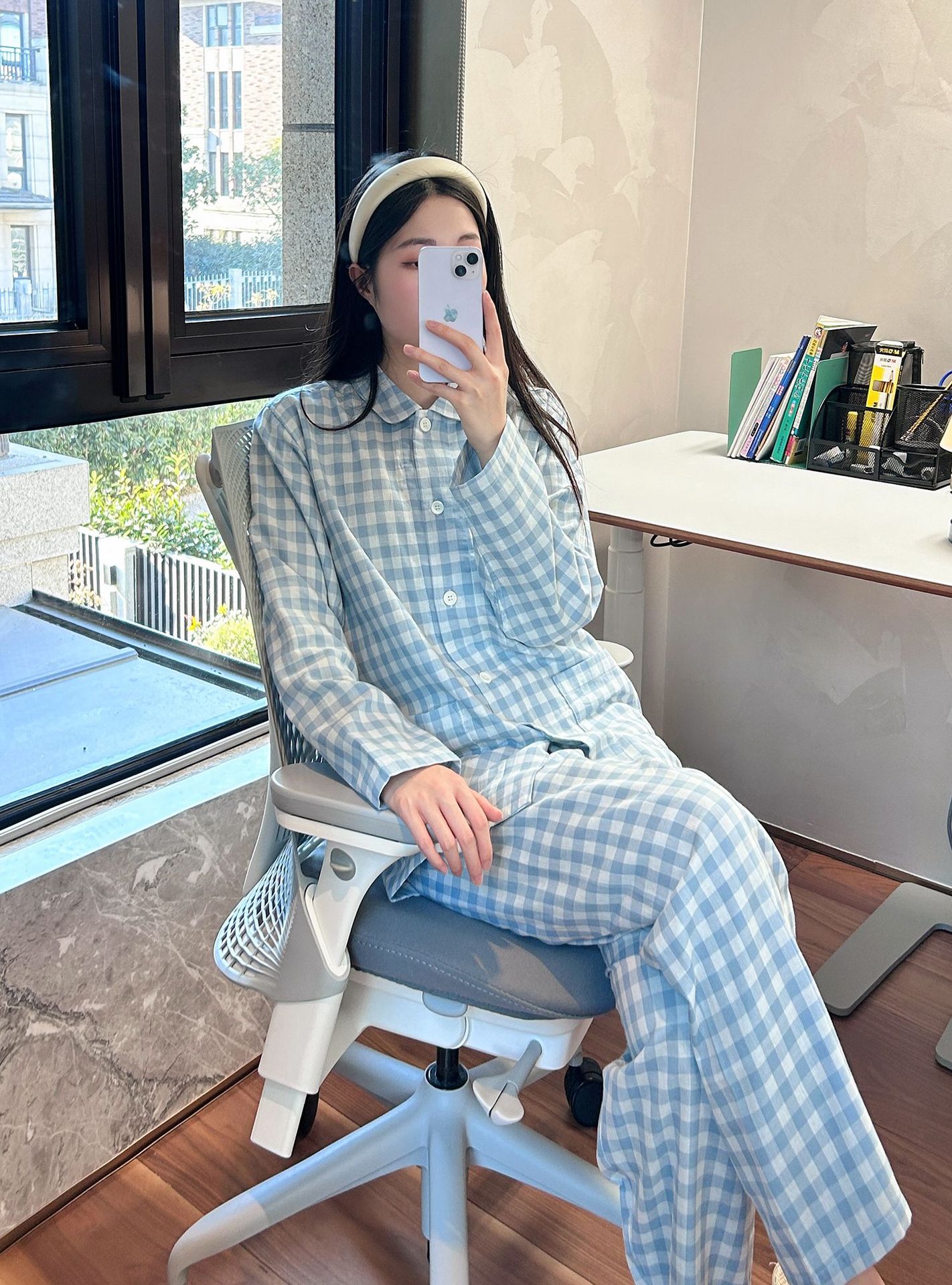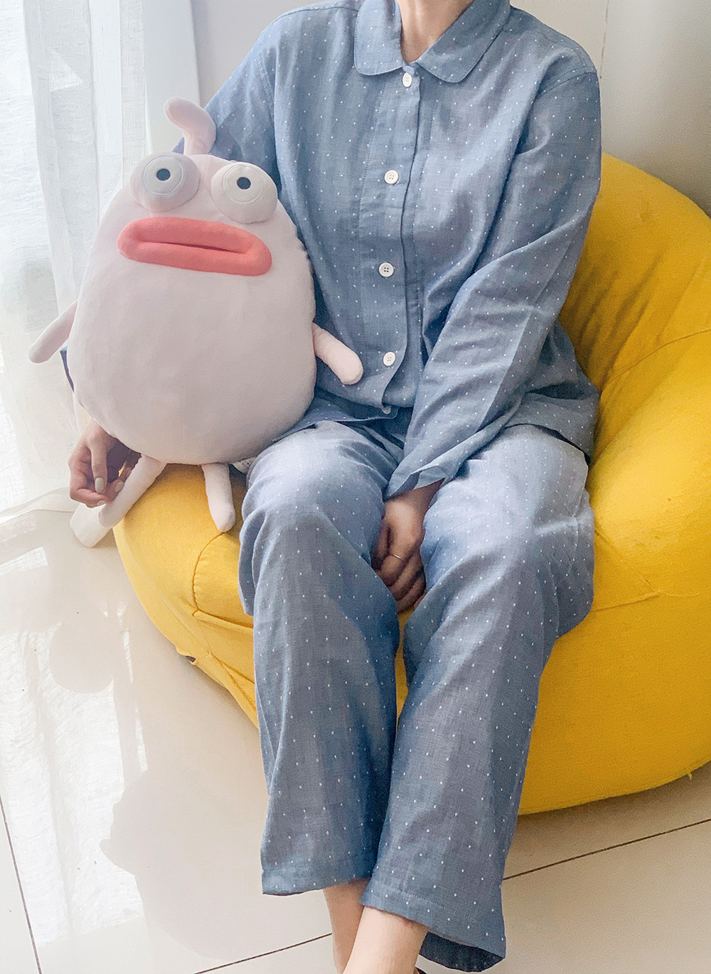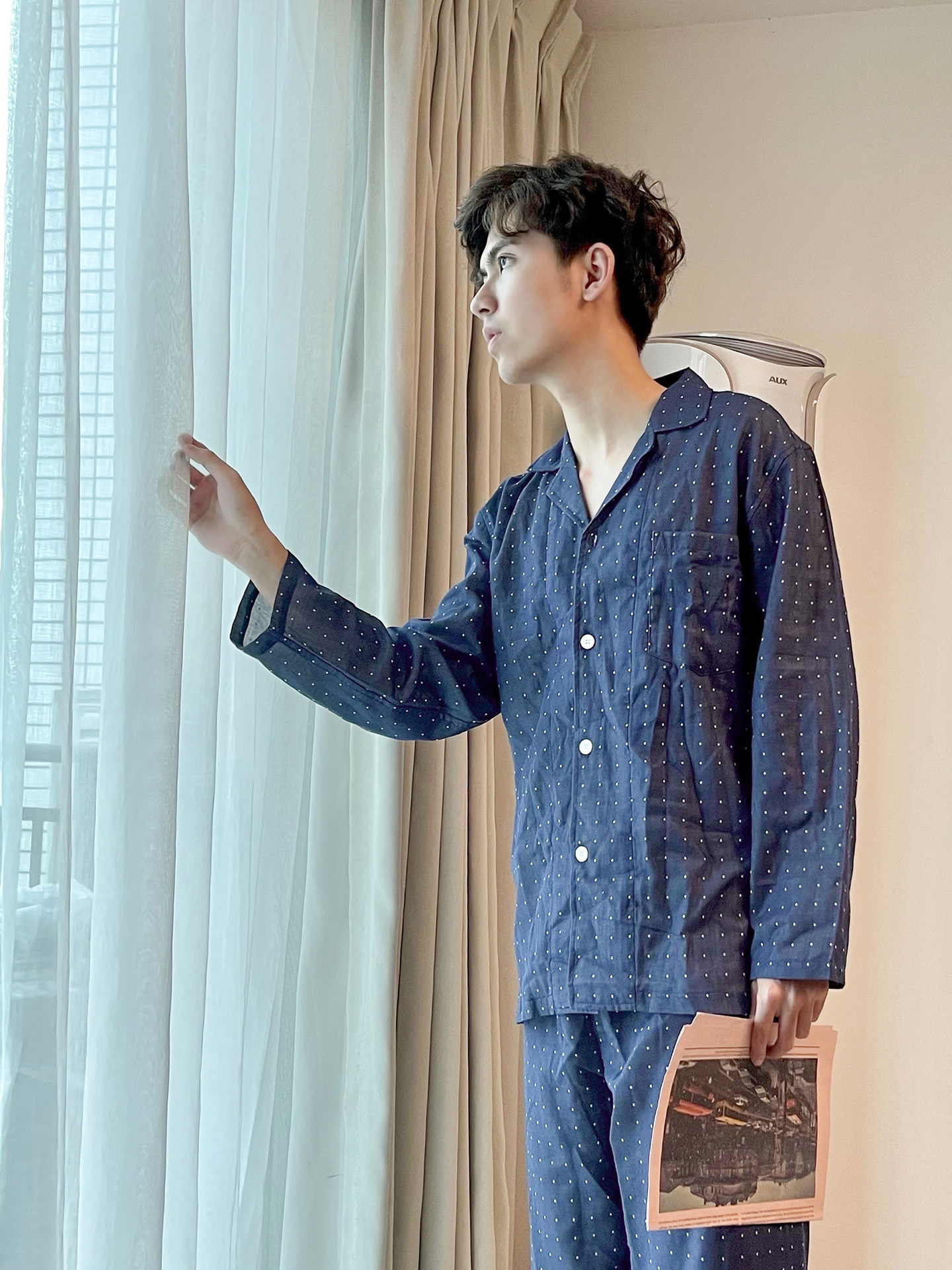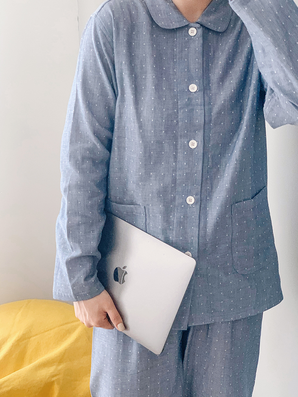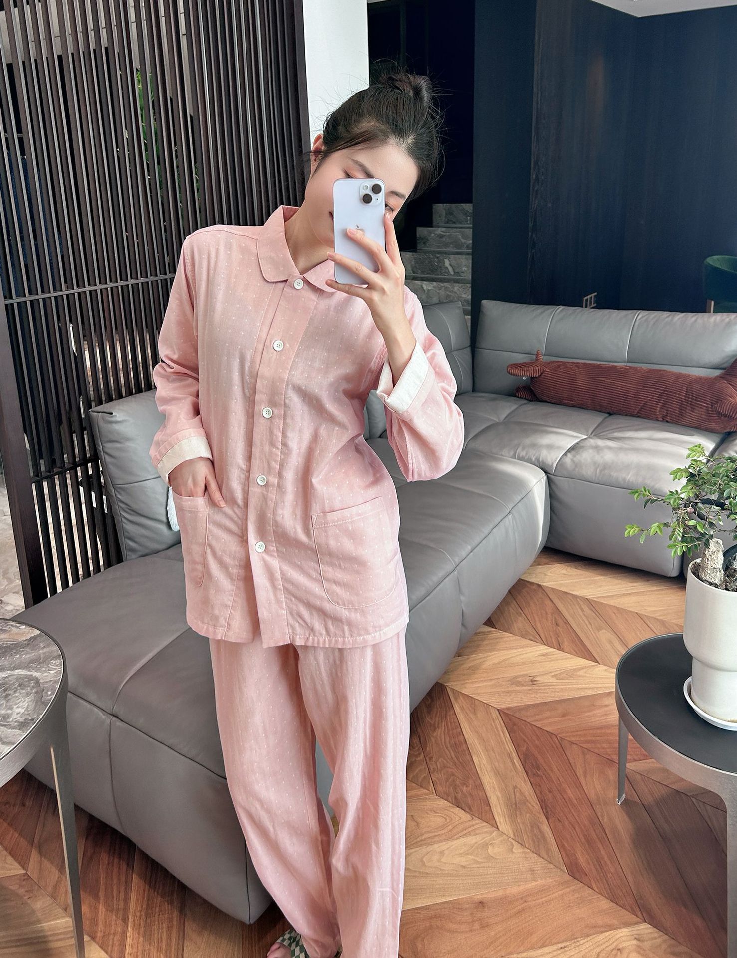 【双层纱睡衣】全棉双层纱睡衣套装无侧缝日式良品格子小点春夏情侣家居服套装