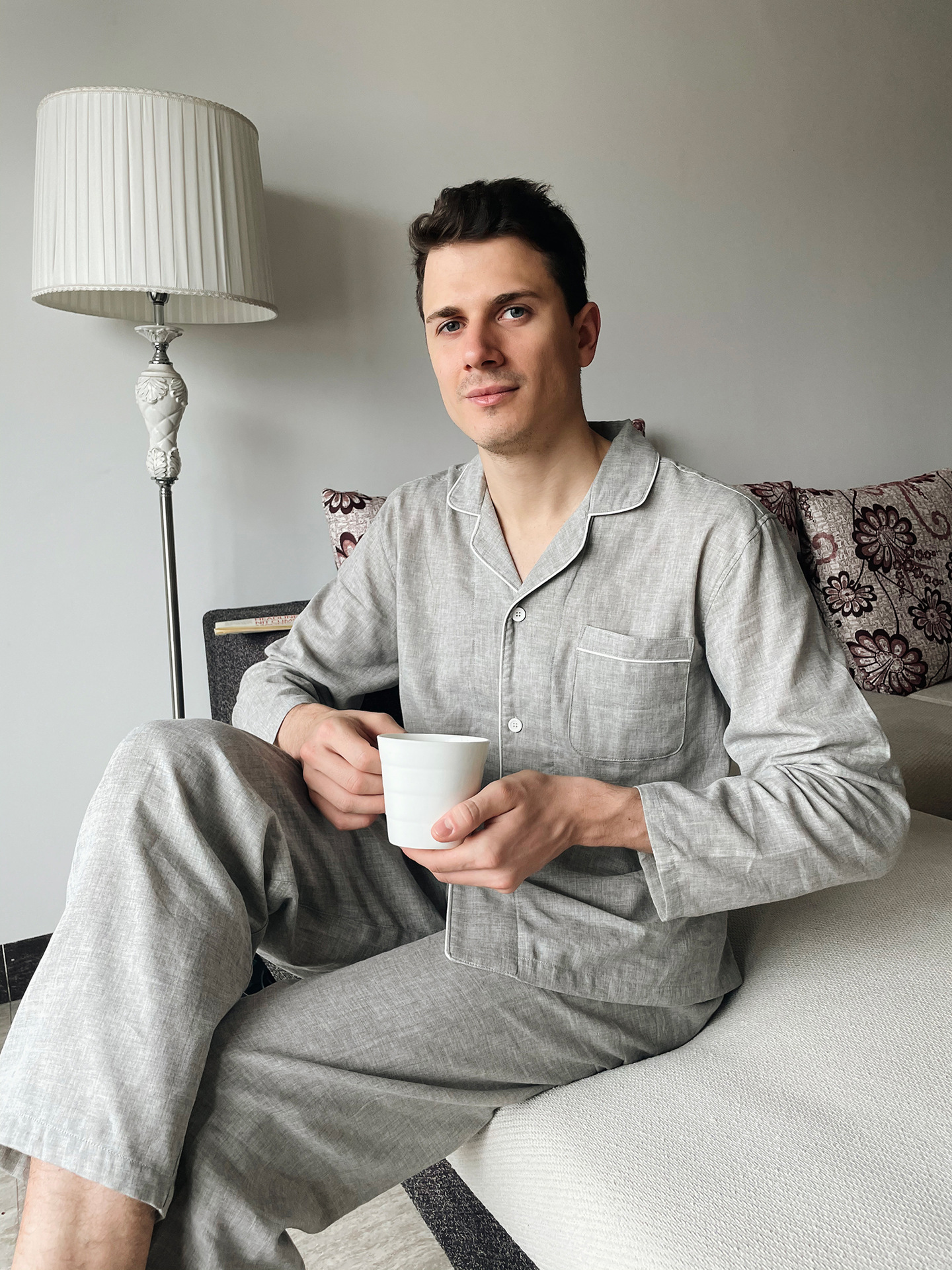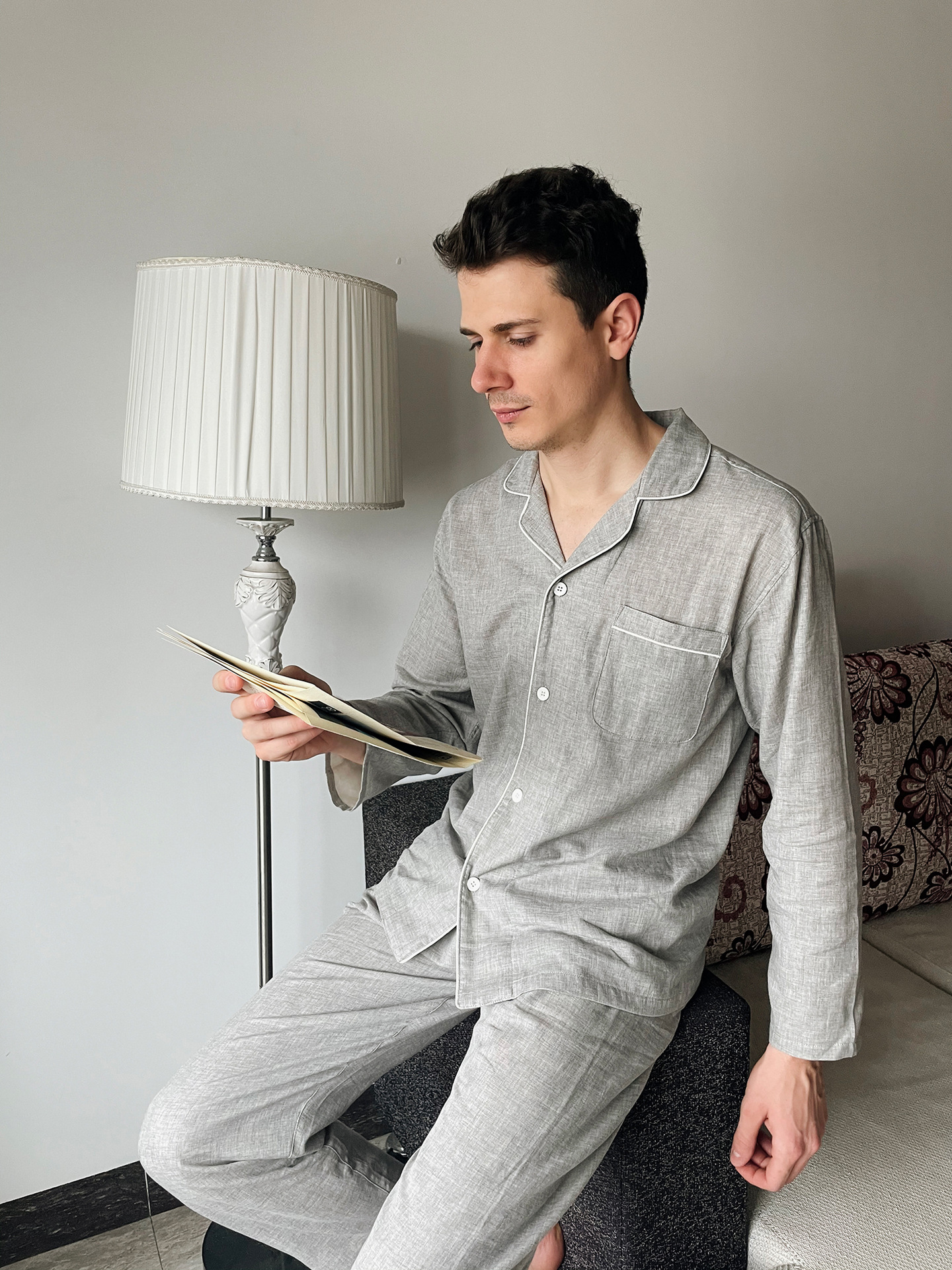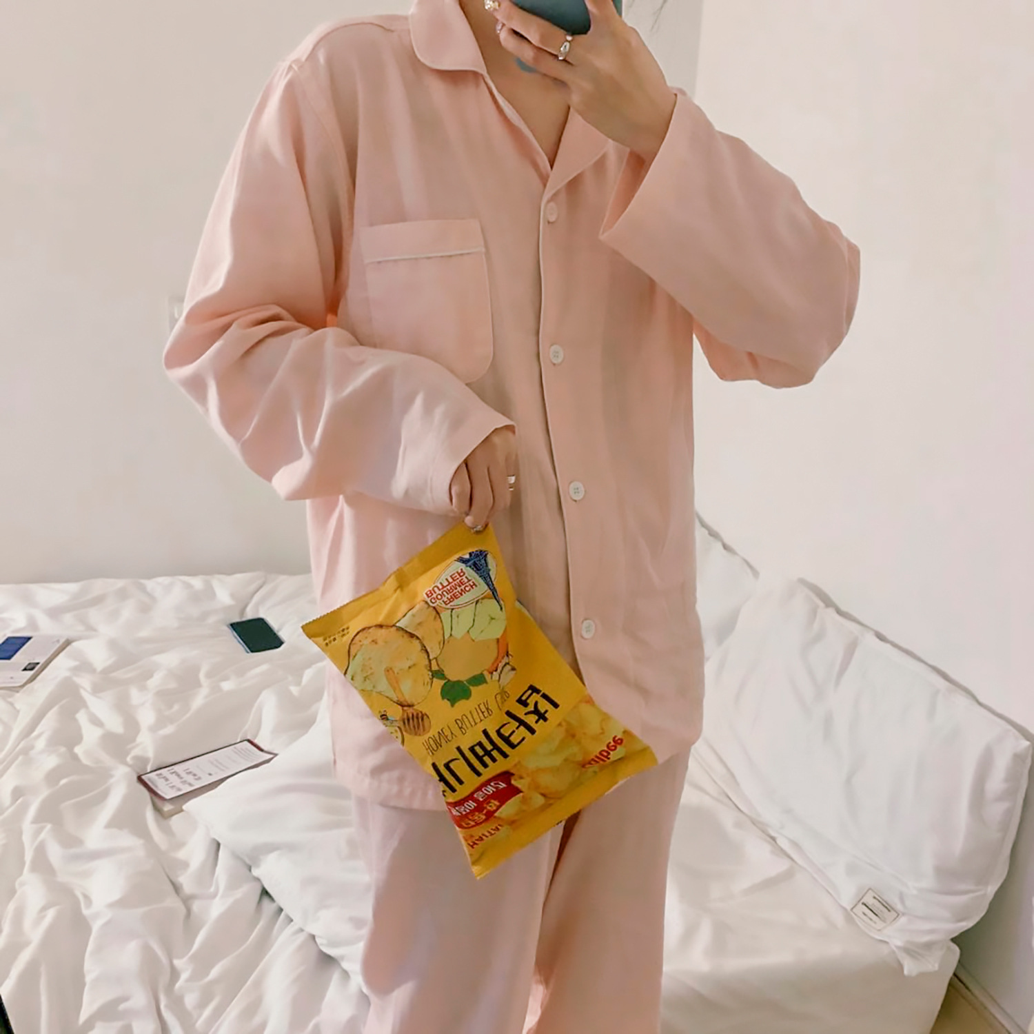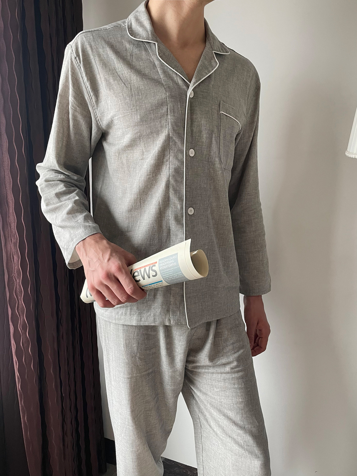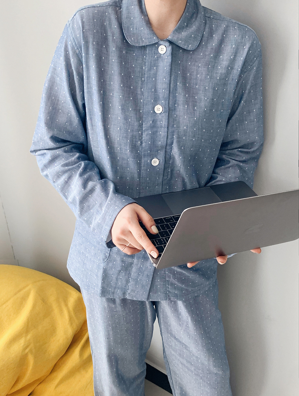 【双层纱睡衣】全棉双层纱睡衣套装无侧缝日式良品格子小点春夏情侣家居服套装