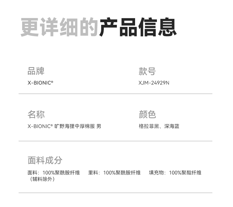 X-BIONIC 旷野海狸中厚棉服 秋冬户外防风保暖轻量透汽金标P棉 XJM-24929N