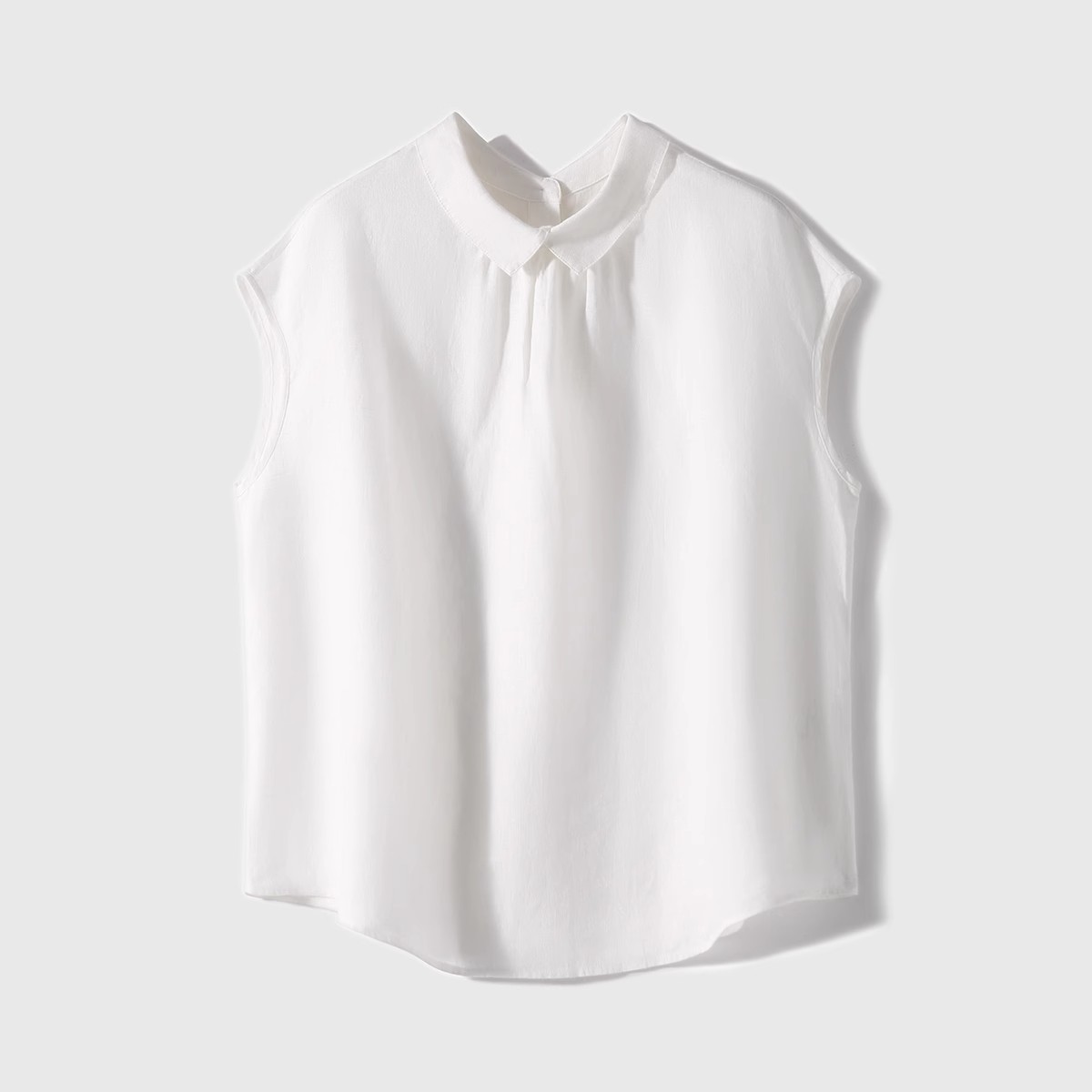 【可以两穿的小衬衫!】卷卷紫翻翻乐减龄无袖小上衣 领口设计前后两面可穿 简洁的娃娃领+小翻领单排扣 既简单清爽且精致