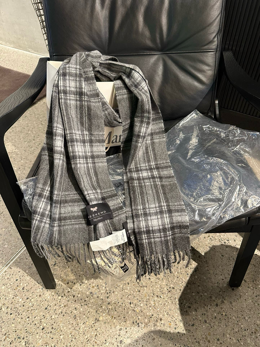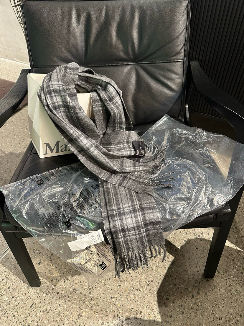 国内现货MaxMara黑灰格子羊绒围巾1300元配购物袋