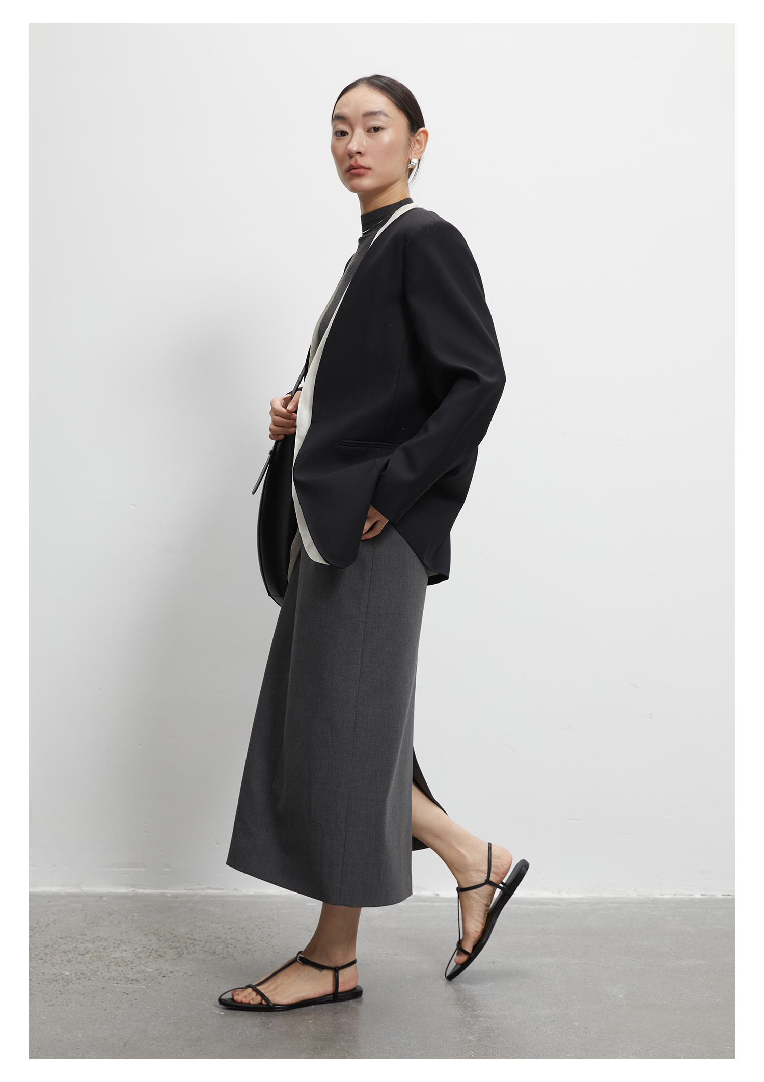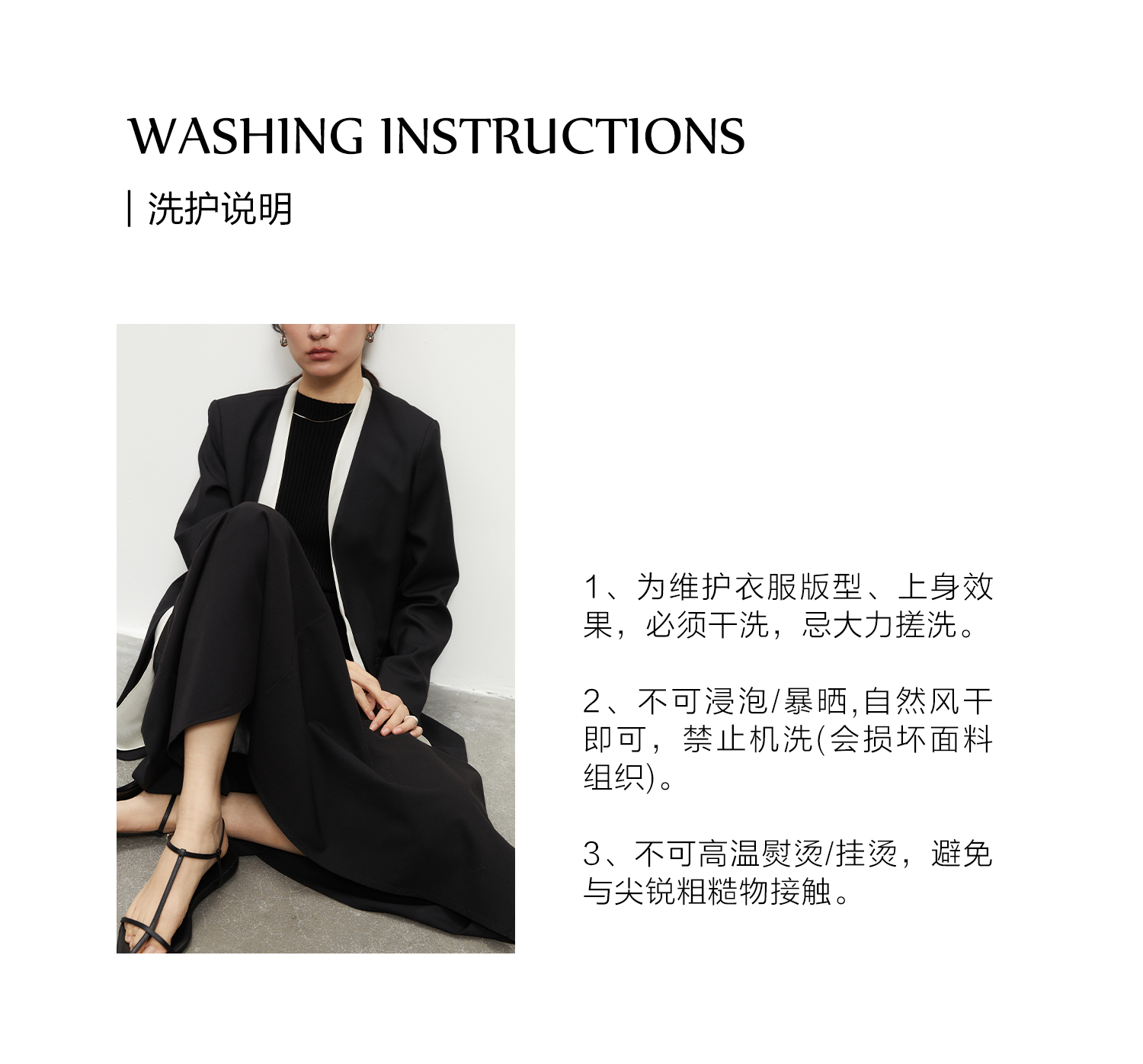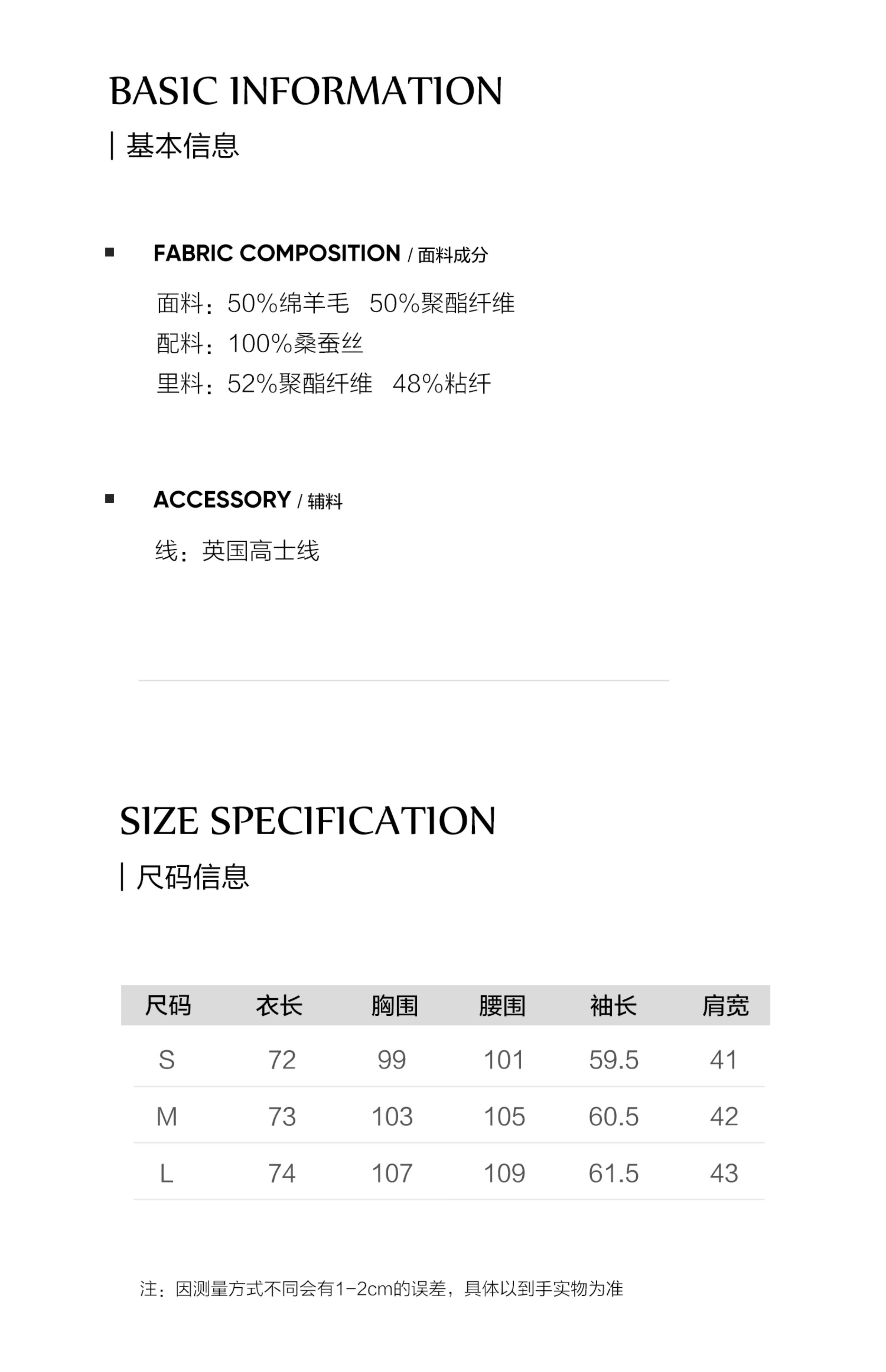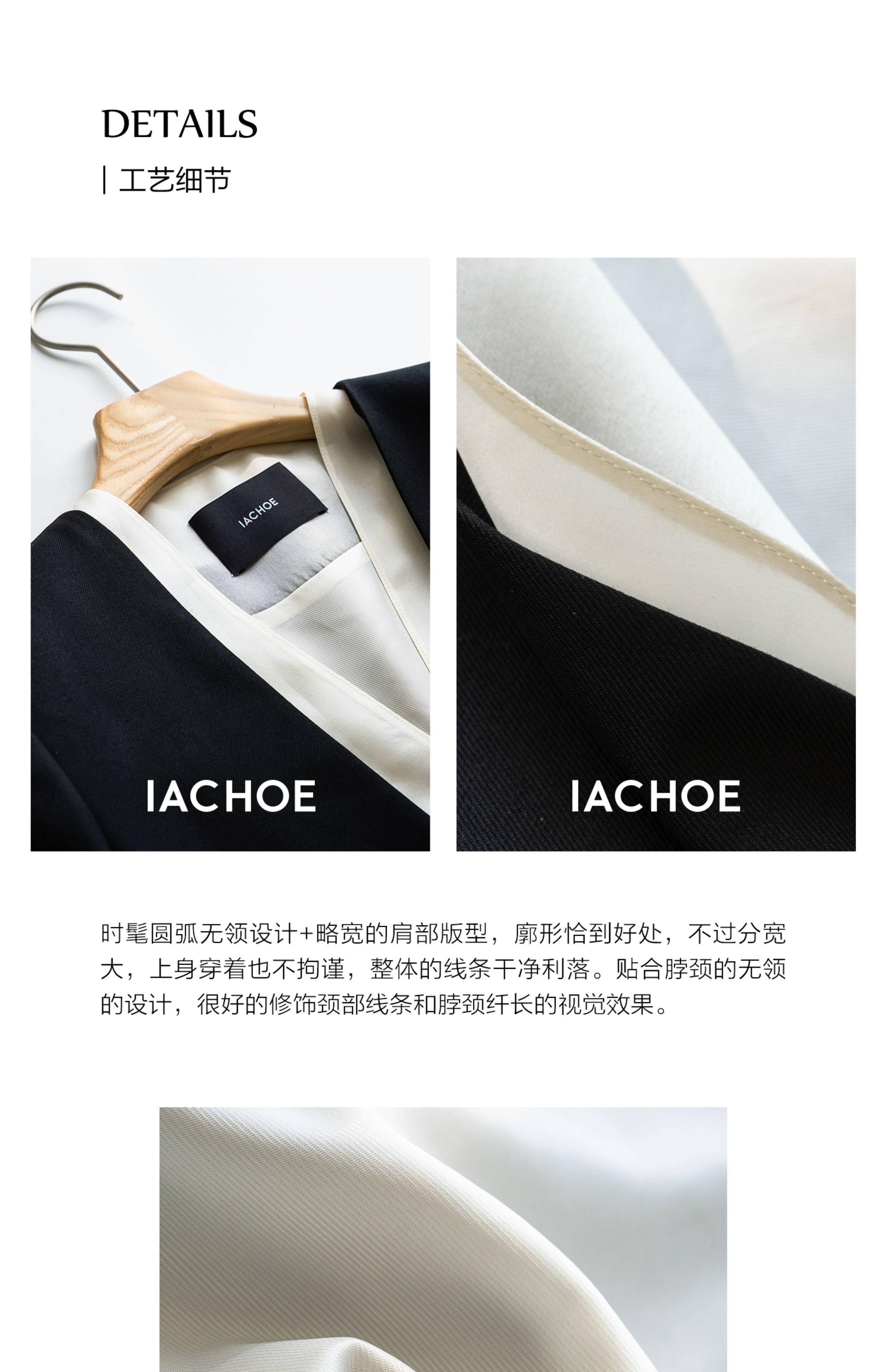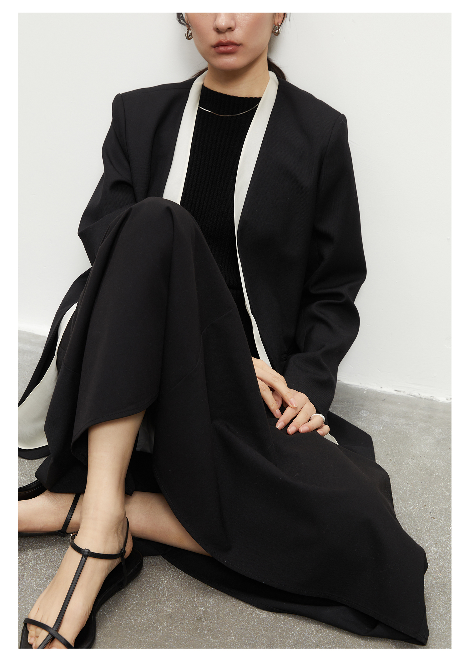 棉仓3521512004-真丝镶边 无领西装女 25秋简约撞色设计感羊毛针织西服外套