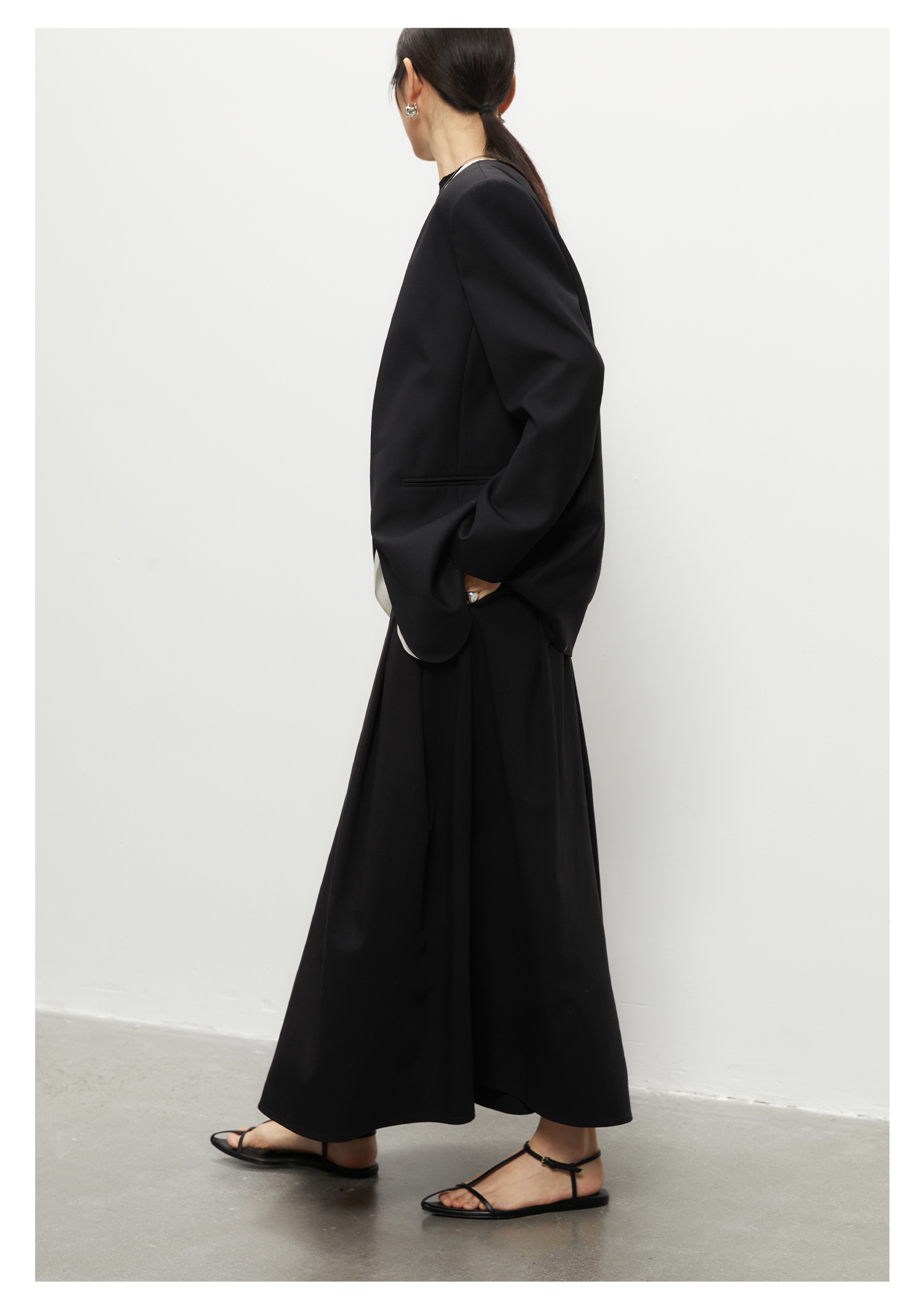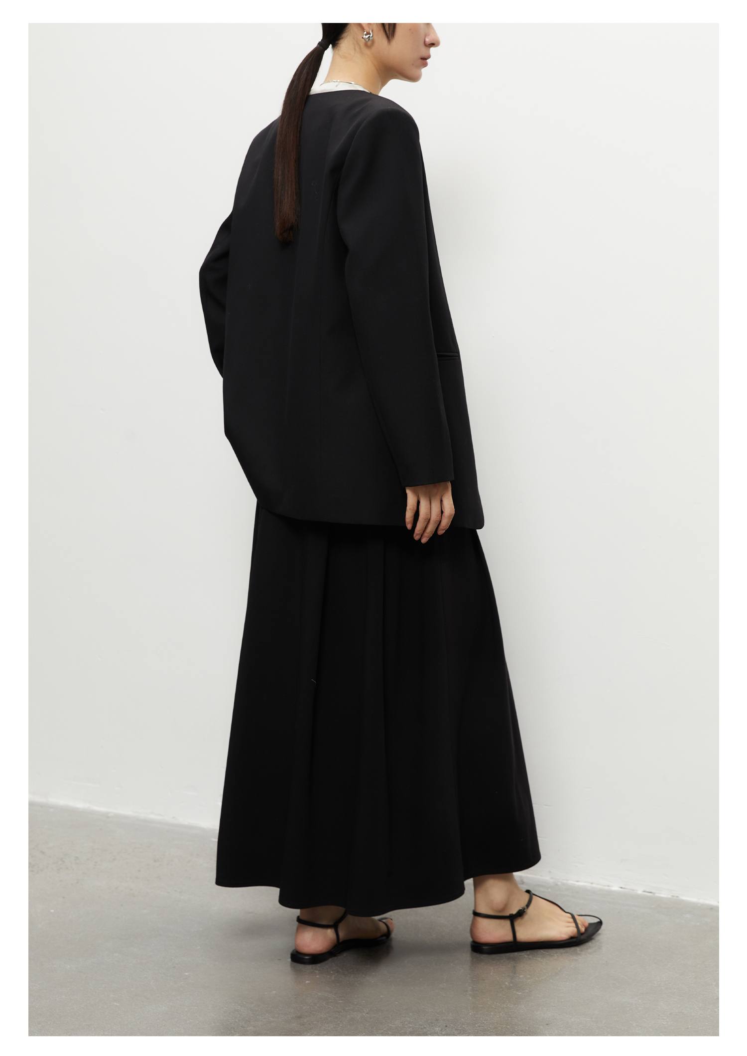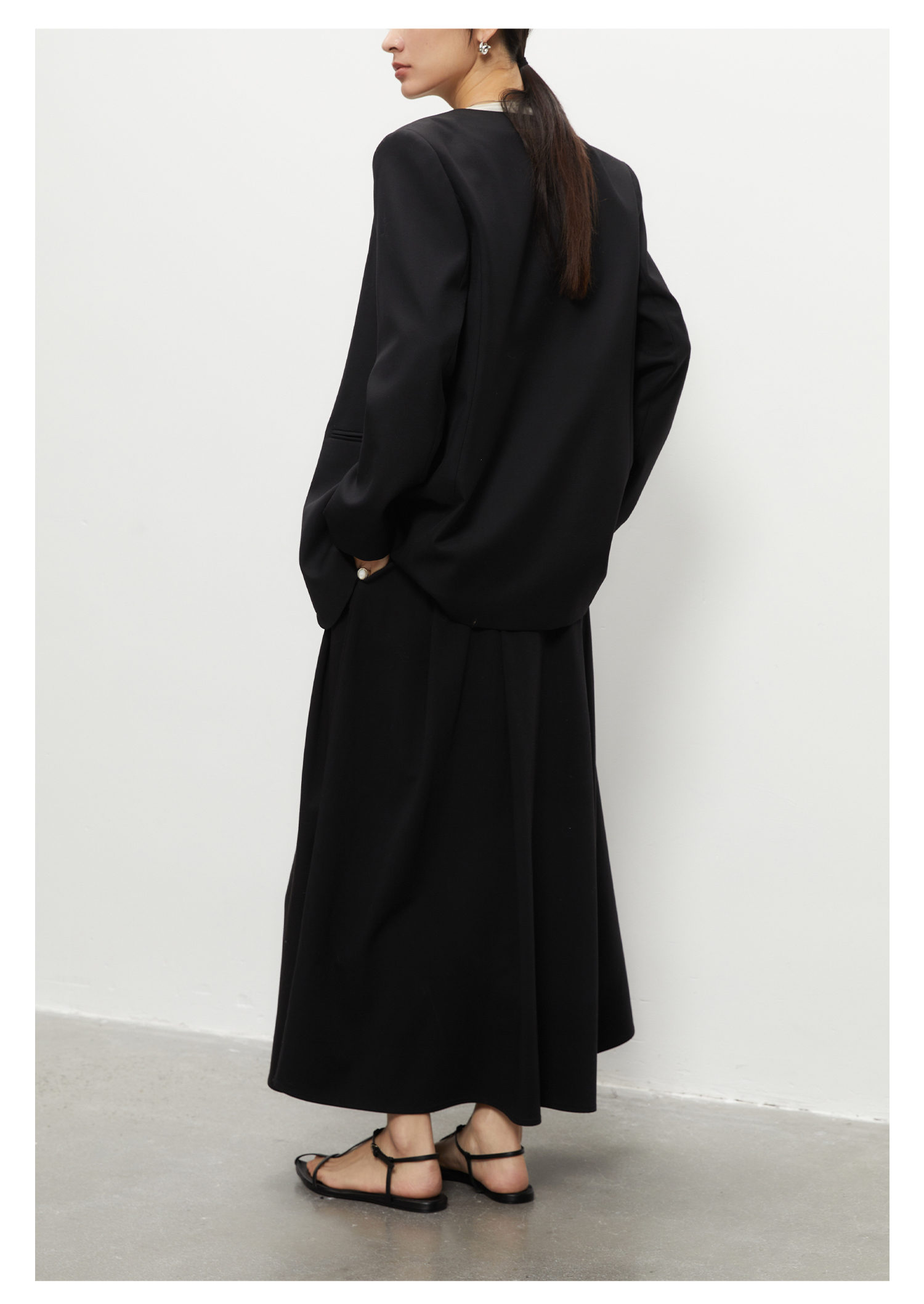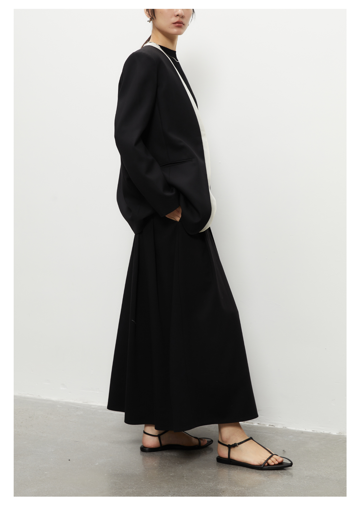 棉仓3521512004-真丝镶边 无领西装女 25秋简约撞色设计感羊毛针织西服外套