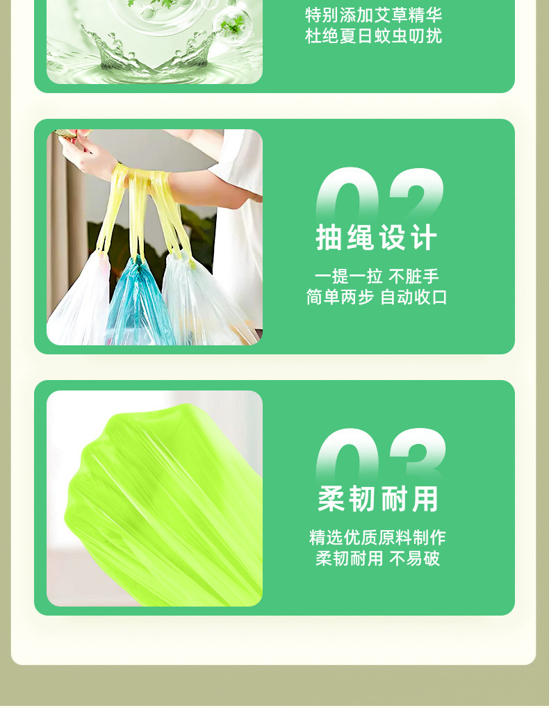 【9.9到手!艾香驱蚊垃圾袋】超方便一拉一提,适合多场景使用,好看又实用,抽绳设计,快速收口,防飞虫大号家用加厚手提式抽绳垃圾袋L