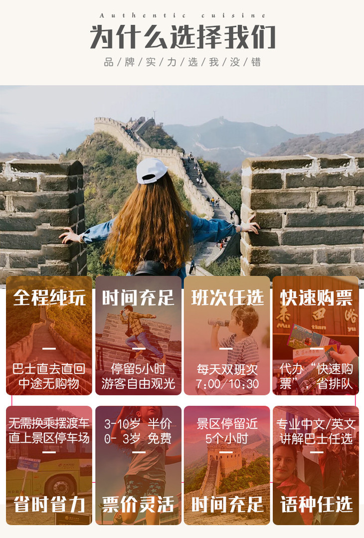 2.不含慕田峪长城门票,缆车(如需长城缆车票,可让随车导游帮忙购买)