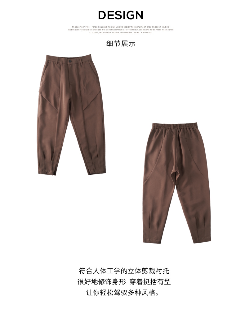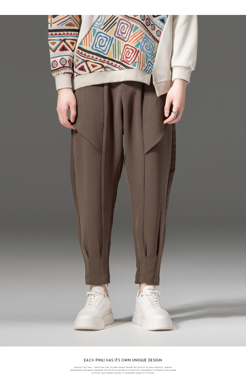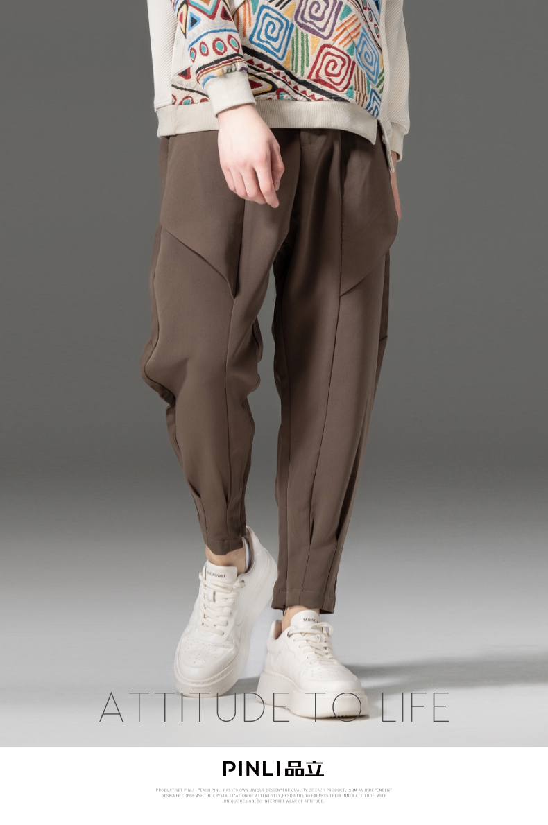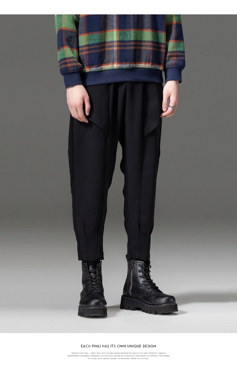 PINLI品立秋季新品男纯色小脚休闲裤潮牌百搭束脚黑色九分裤B233117018