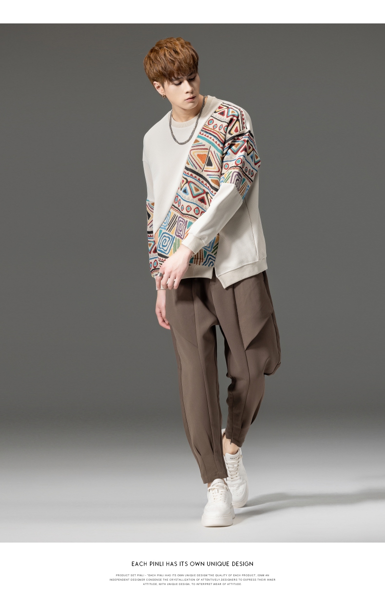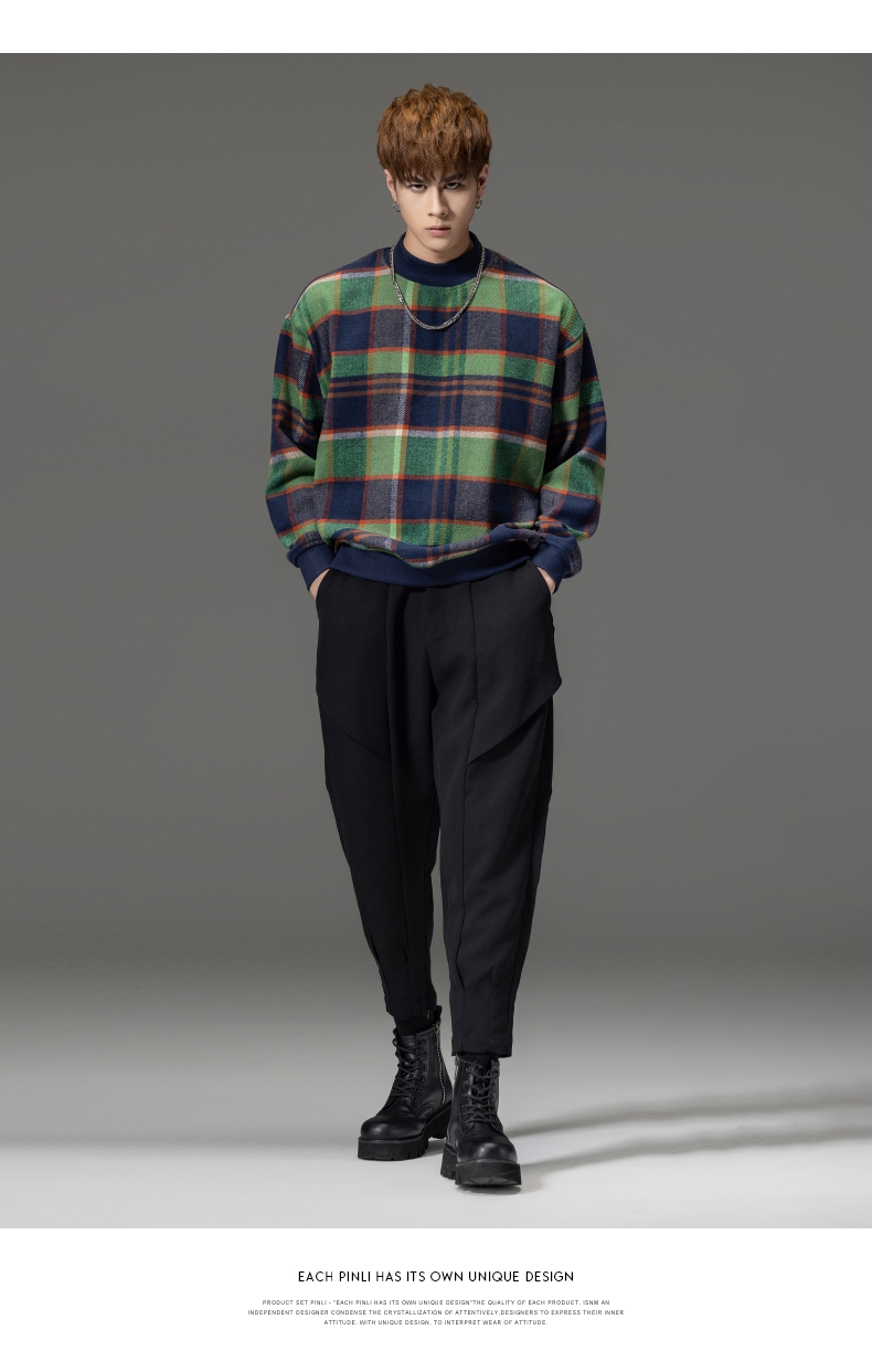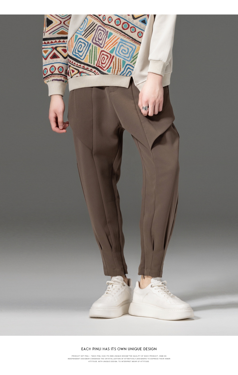 PINLI品立秋季新品男纯色小脚休闲裤潮牌百搭束脚黑色九分裤B233117018