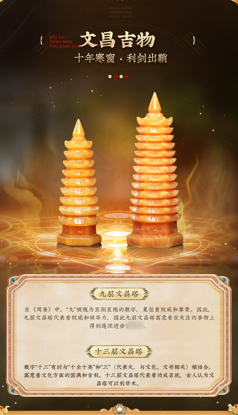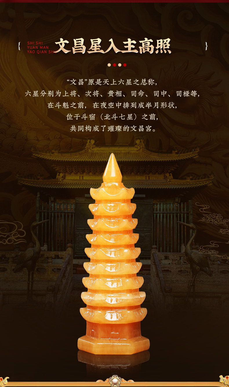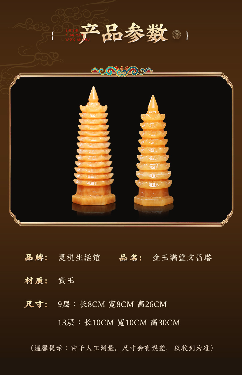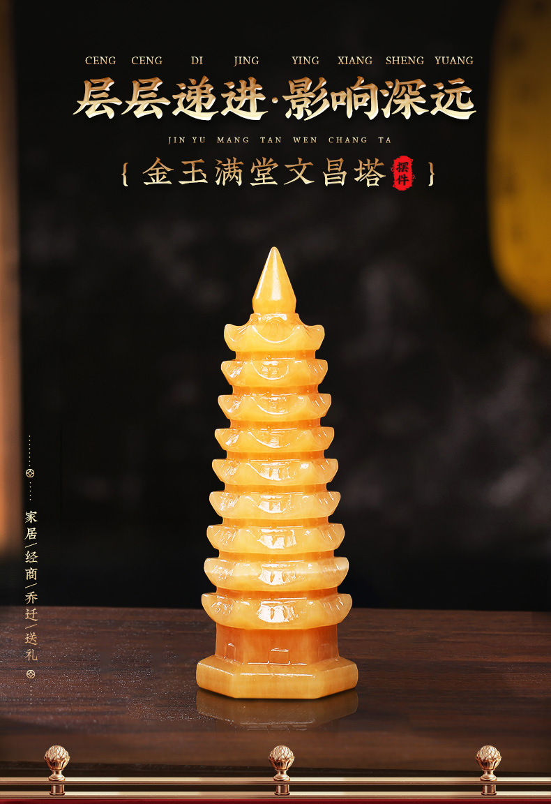 【事业文昌】金玉满堂黄玉文昌塔摆件 书房学习桌办公室黄玉实心摆件