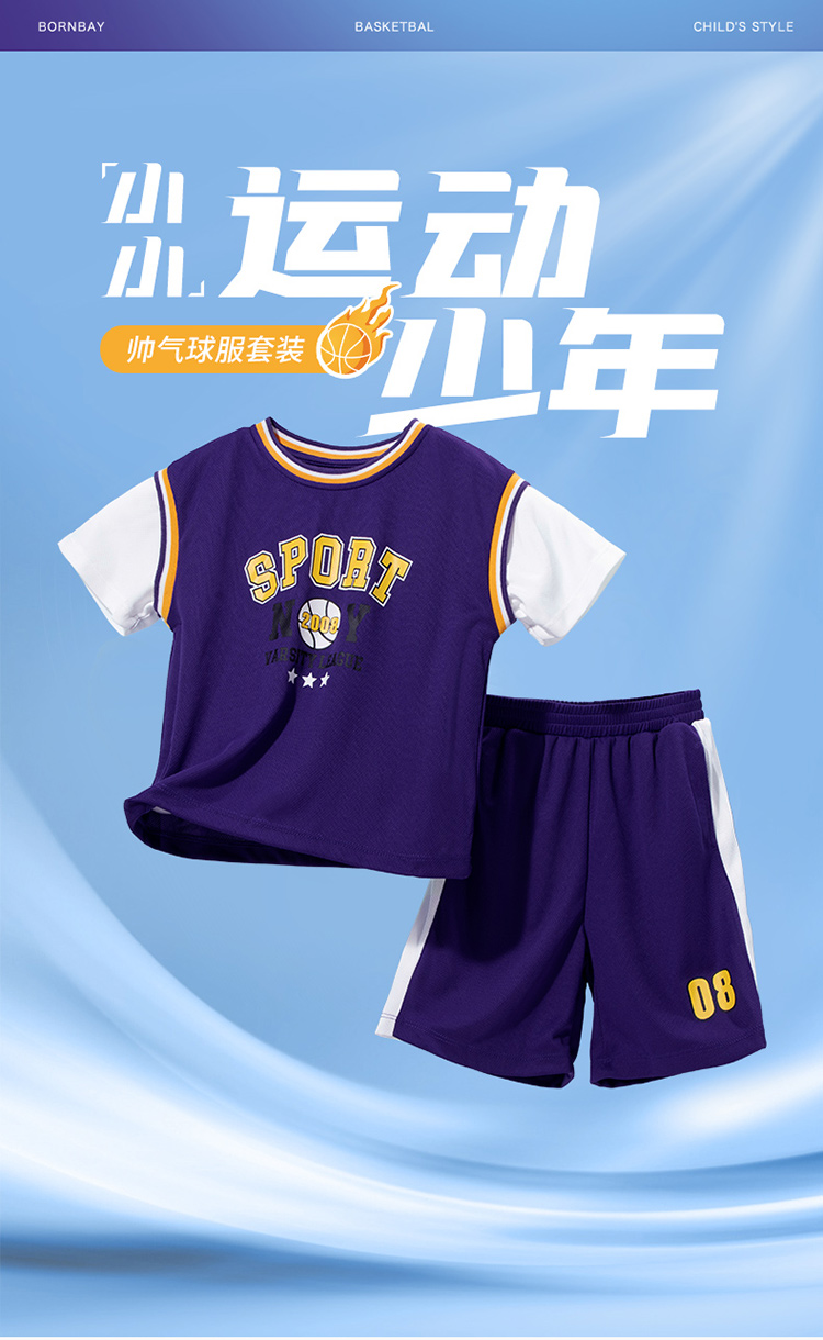 贝贝怡童装男童运动套装儿童假两件网眼透气凉感篮球服2024新夏装ZB2DT002