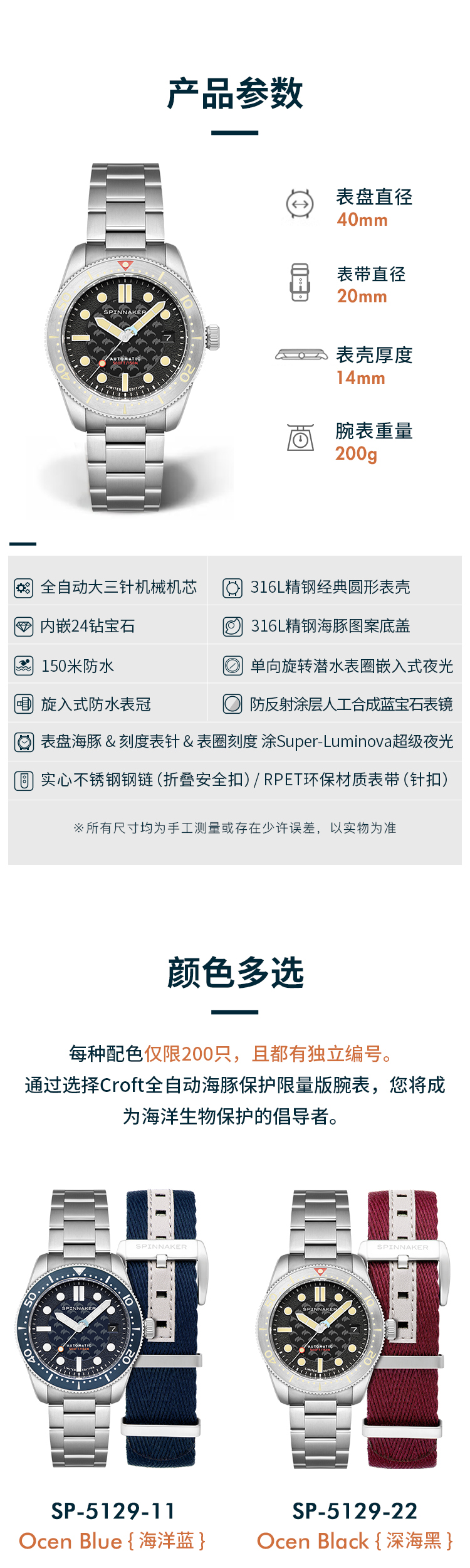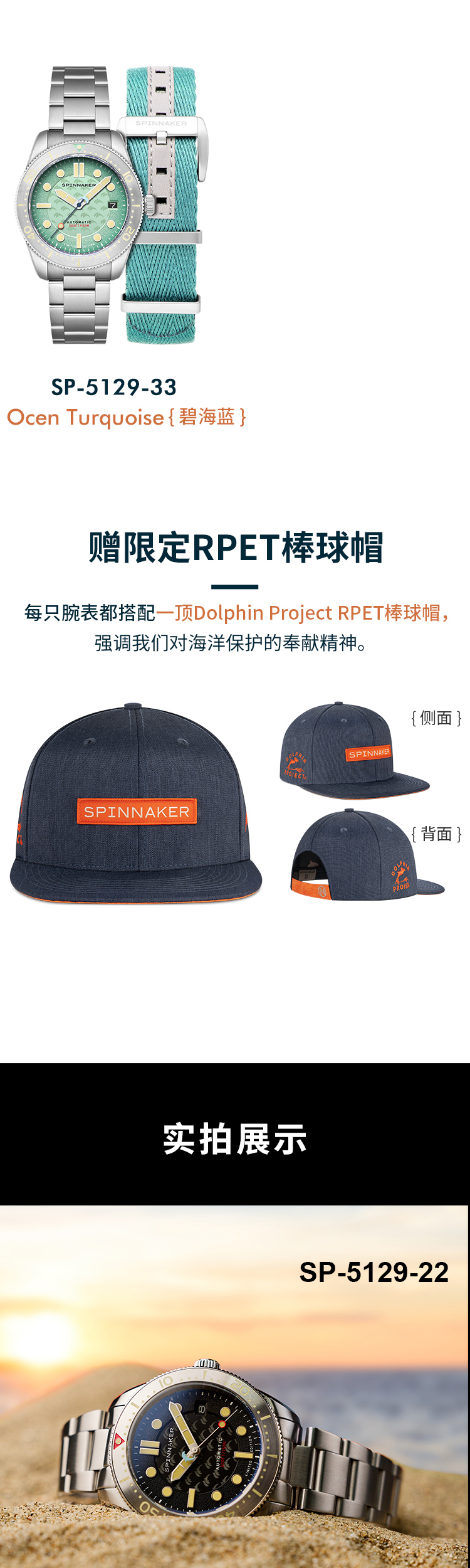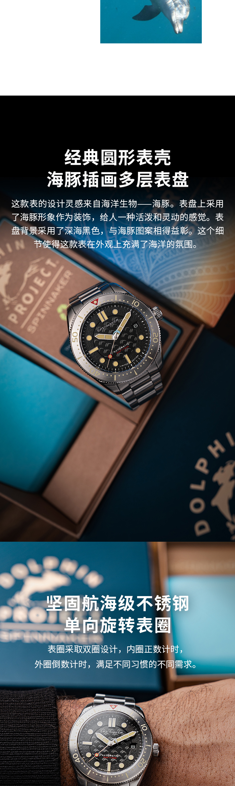 新款SPINNAKER三角帆海豚保护限量自动机械手表男士夜光潜水5129