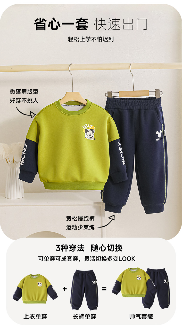 迪士尼童装男童秋季卫衣套装两件套儿童运动长裤长袖上衣新款秋装
