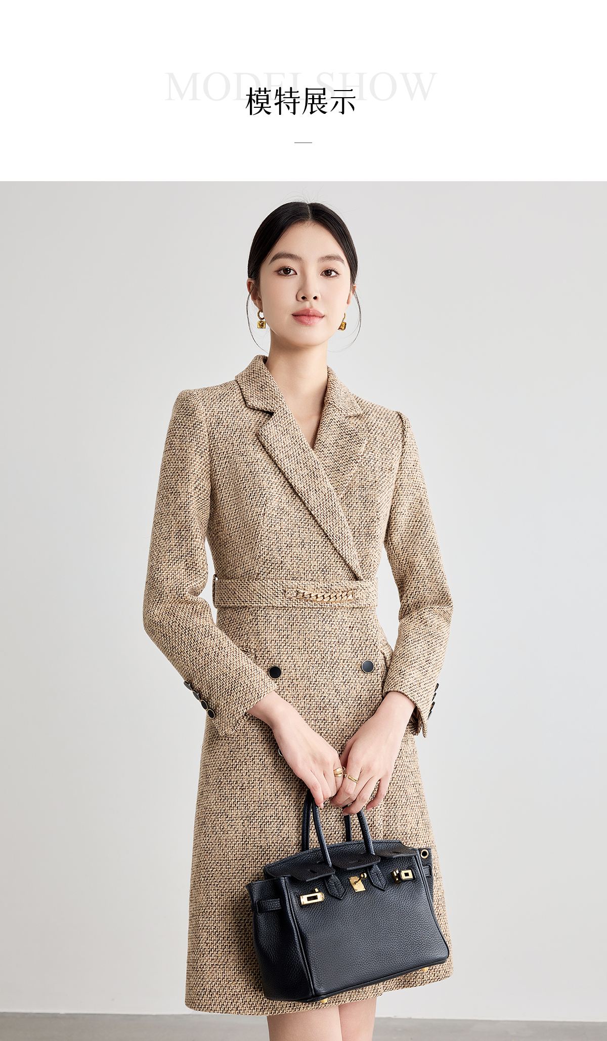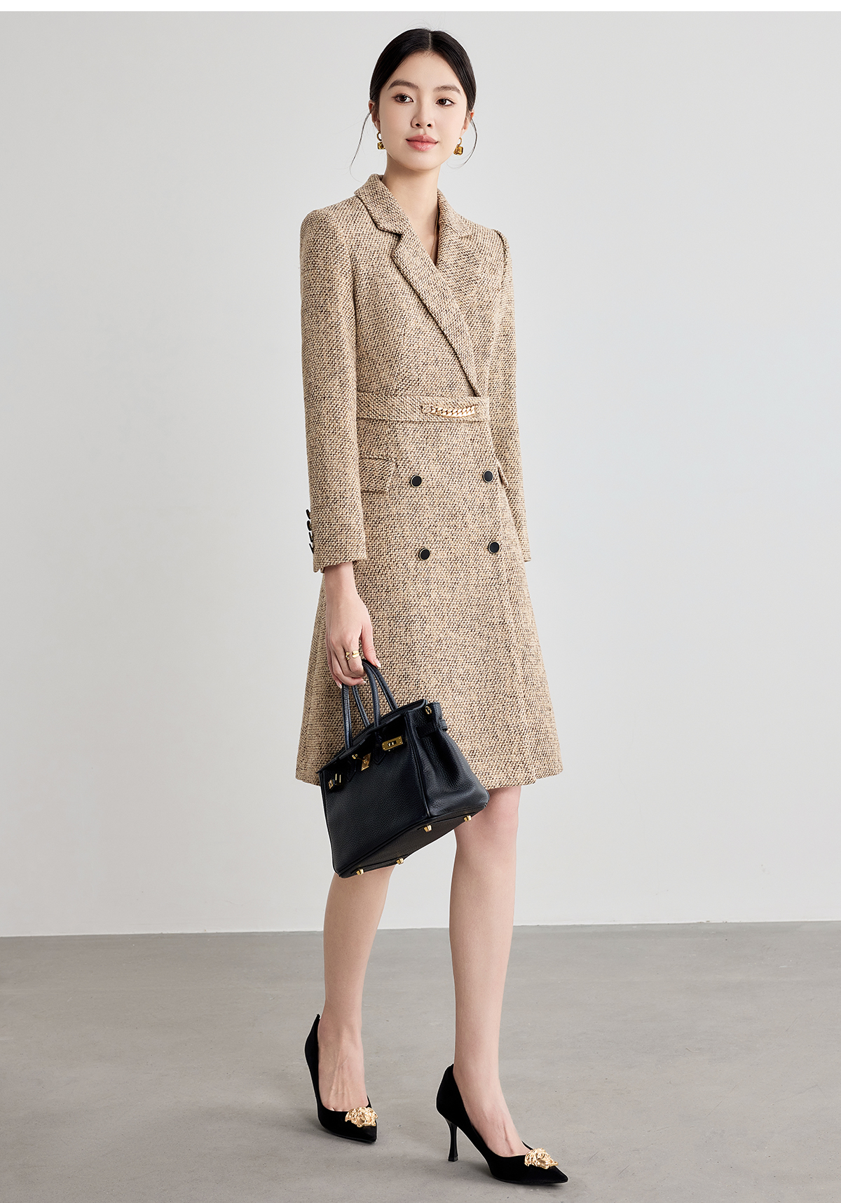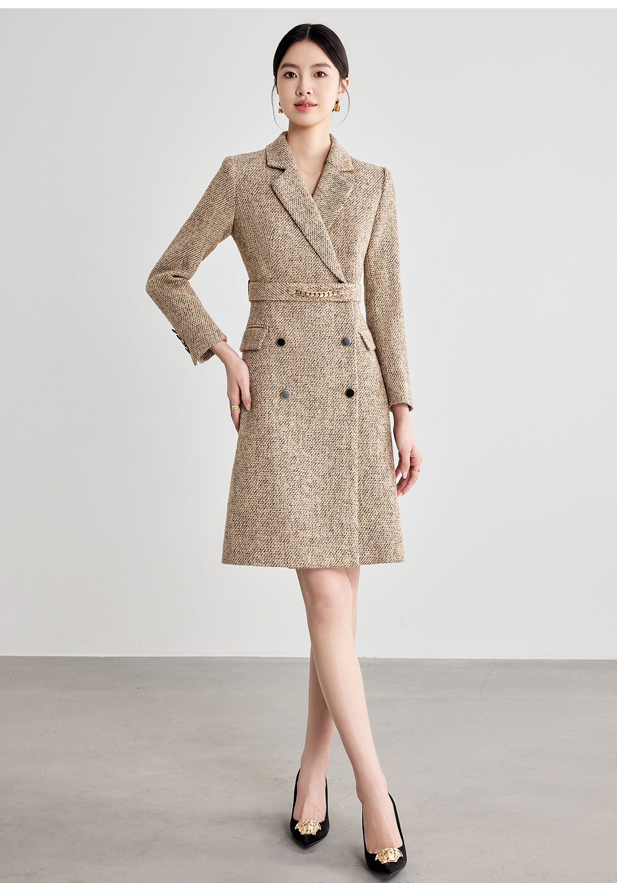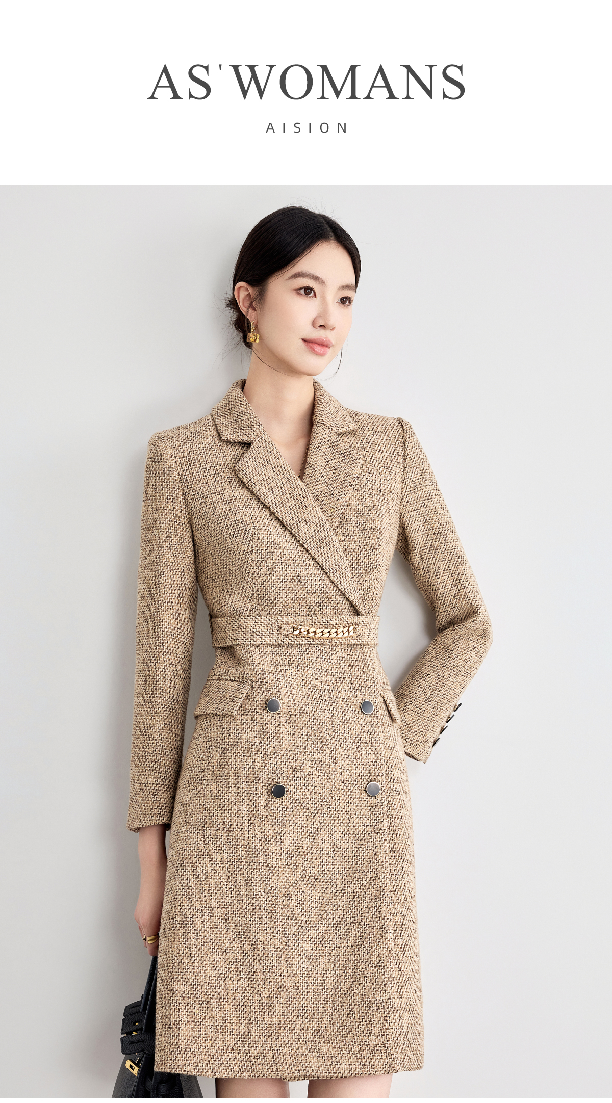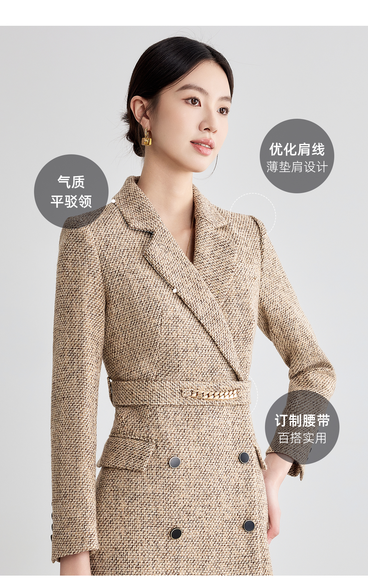 艾尚臣咖色西装连衣裙女2025新款气质正装高级感收腰职业装冬季厚
