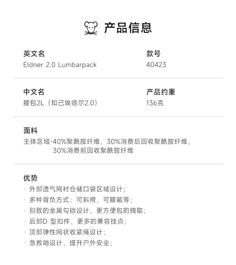 KLATTERMUSEN/攀山鼠埃德尔腰包户外徒步登山2L斜挎包背包 40423U