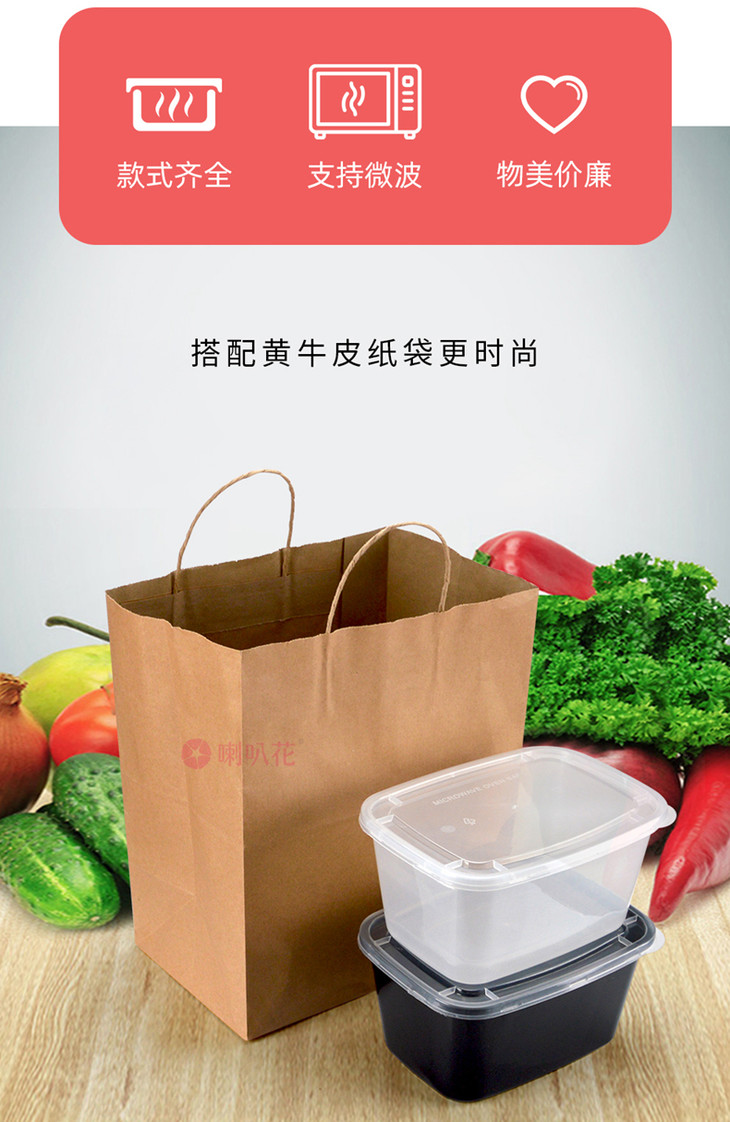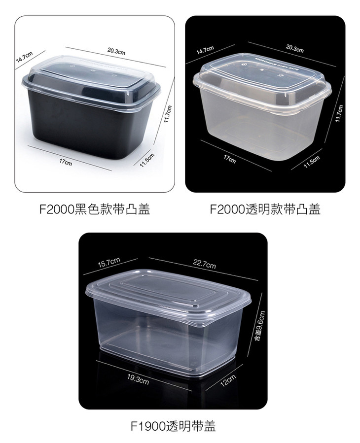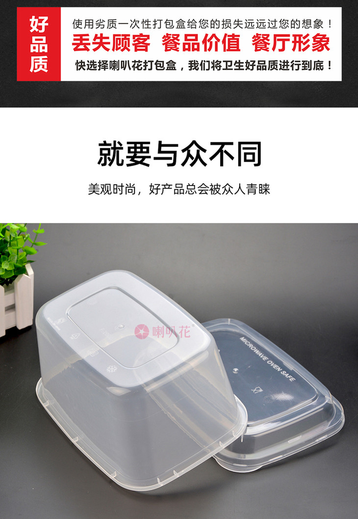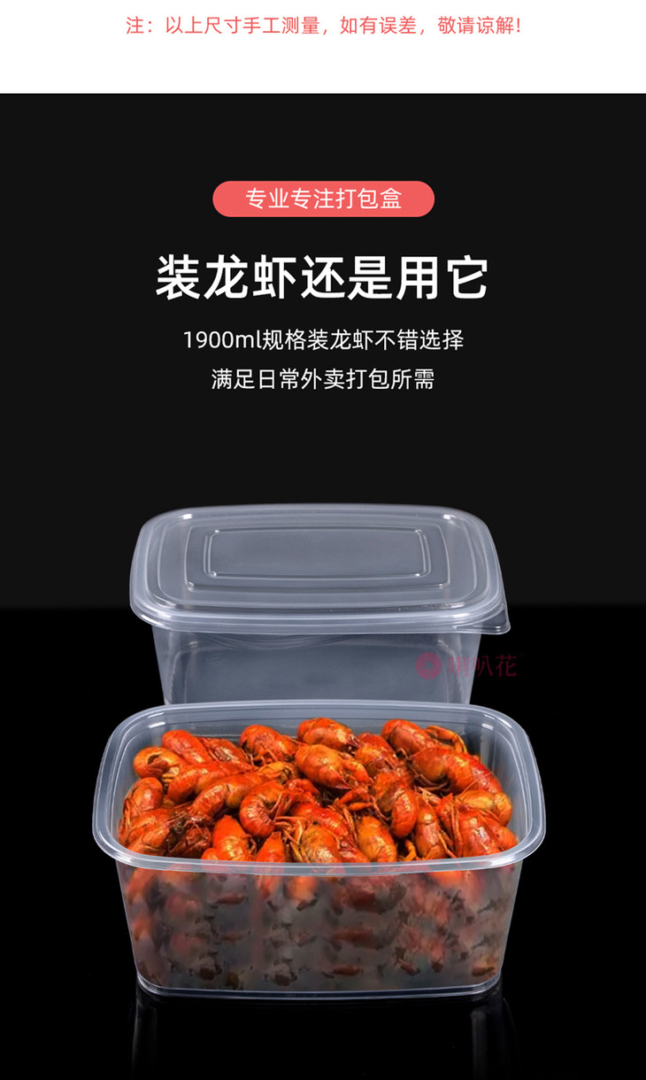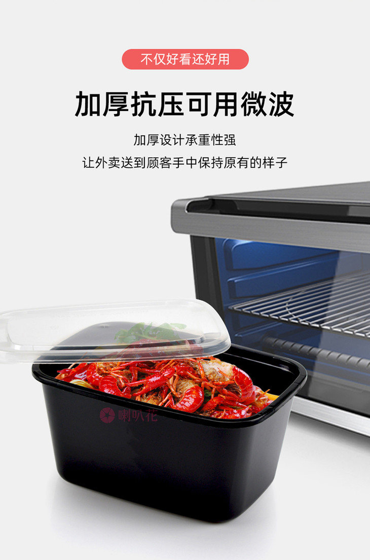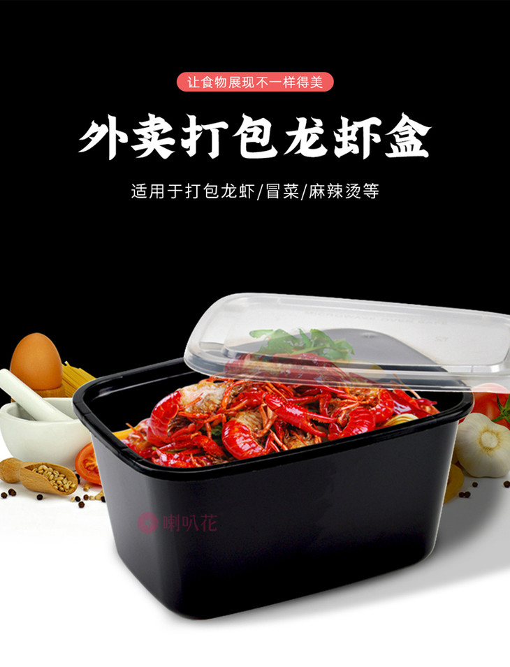 喇叭花2000ml一次性餐盒长方形加厚打包盒螃蟹小龙虾姜母鸭盒50套
