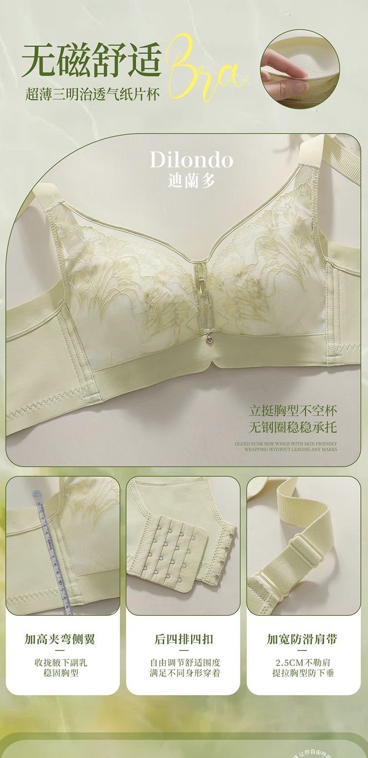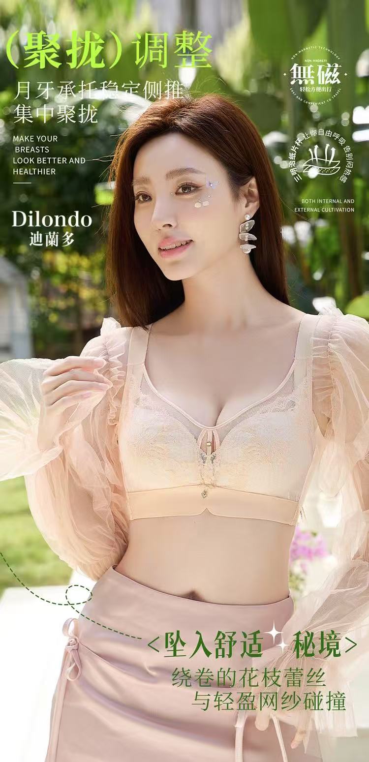 迪兰多夏季新款丰满薄杯舒适无钢圈无磁内衣三明治纸片杯收副乳调整型文胸2118454