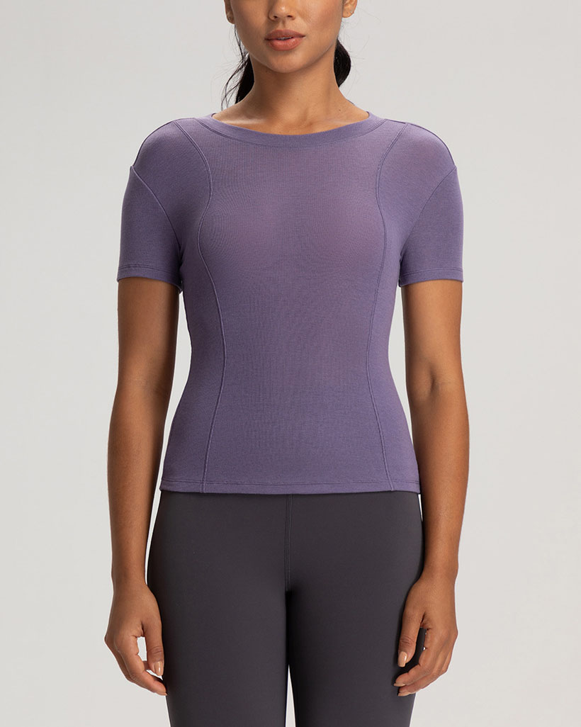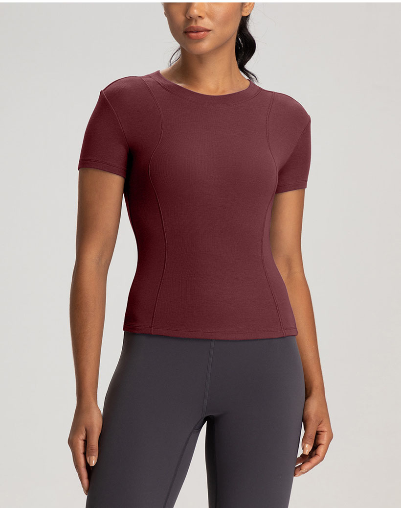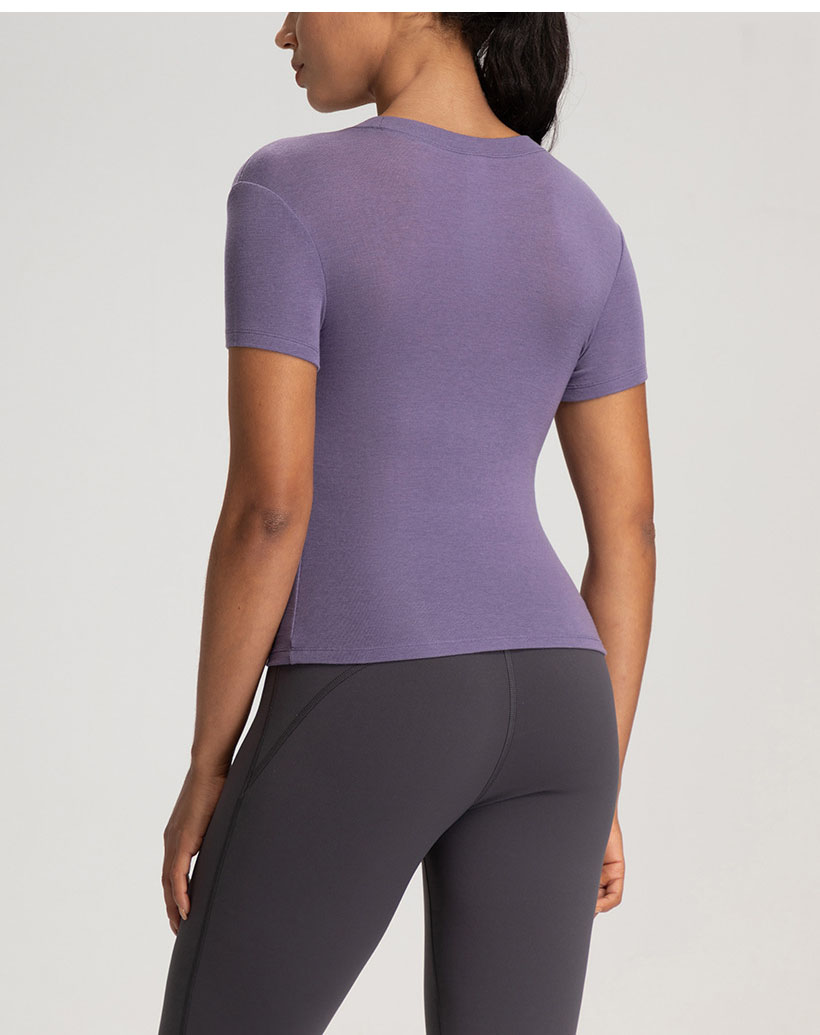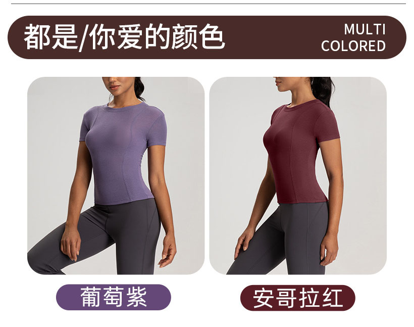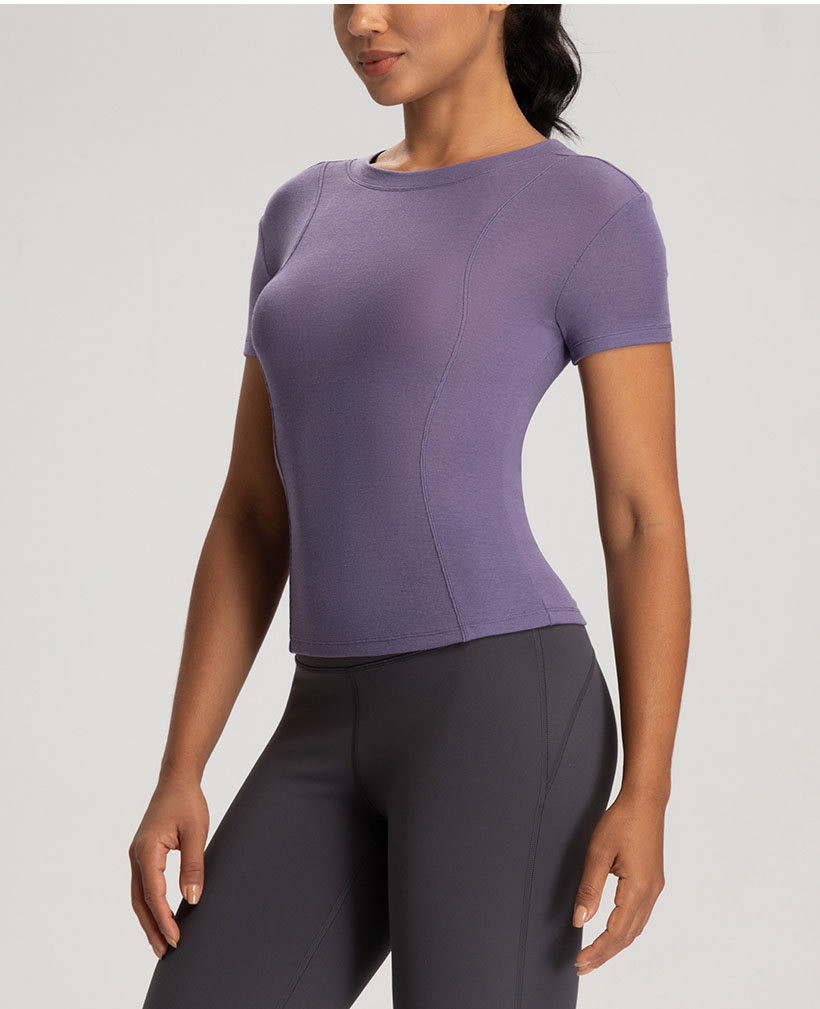 跃牌【倚窗听雨】Athena 美丽诺羊毛瑜伽服女紧身显瘦透气短袖运动健身上衣T恤DA105