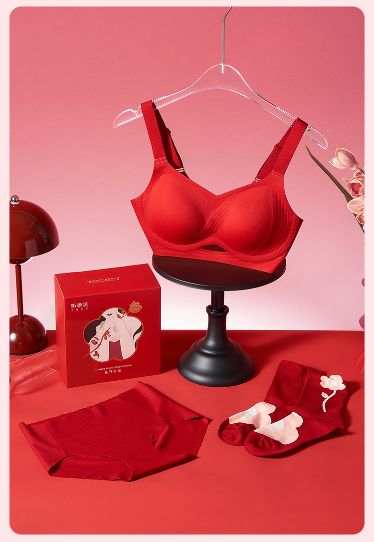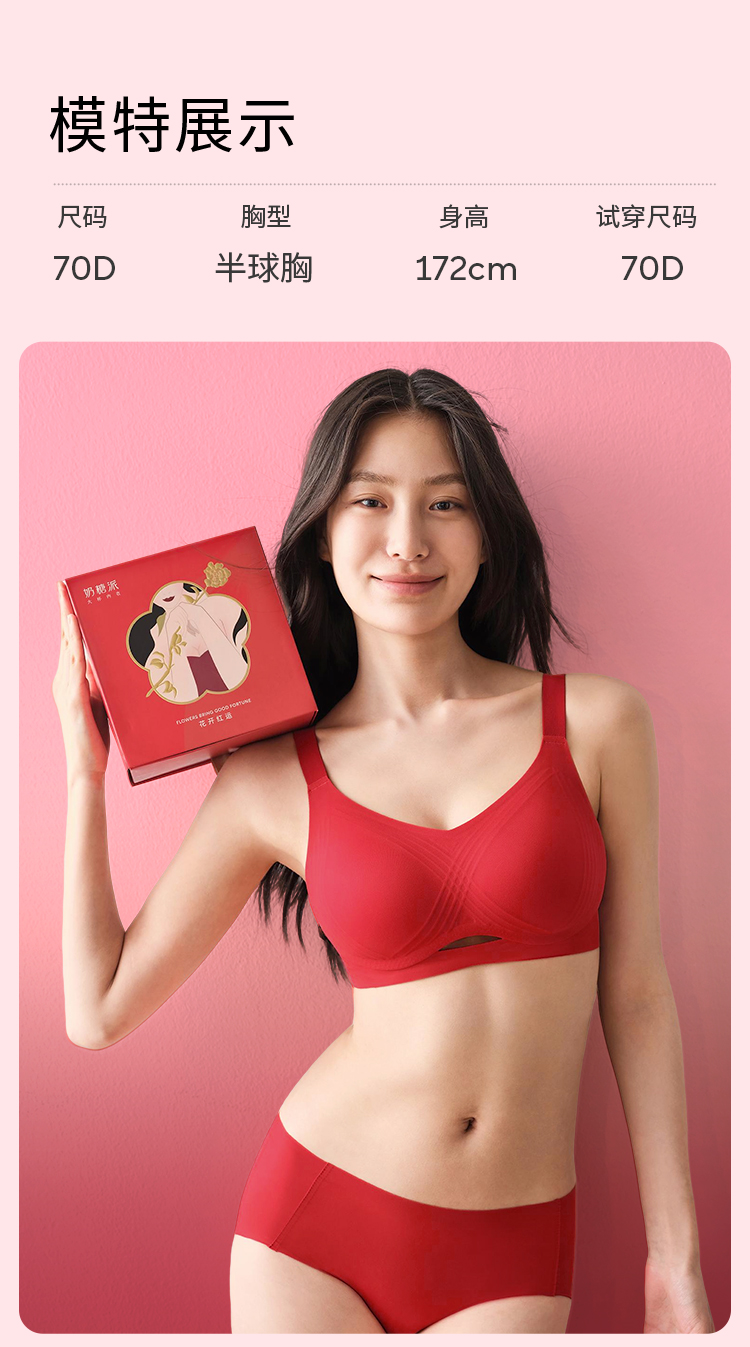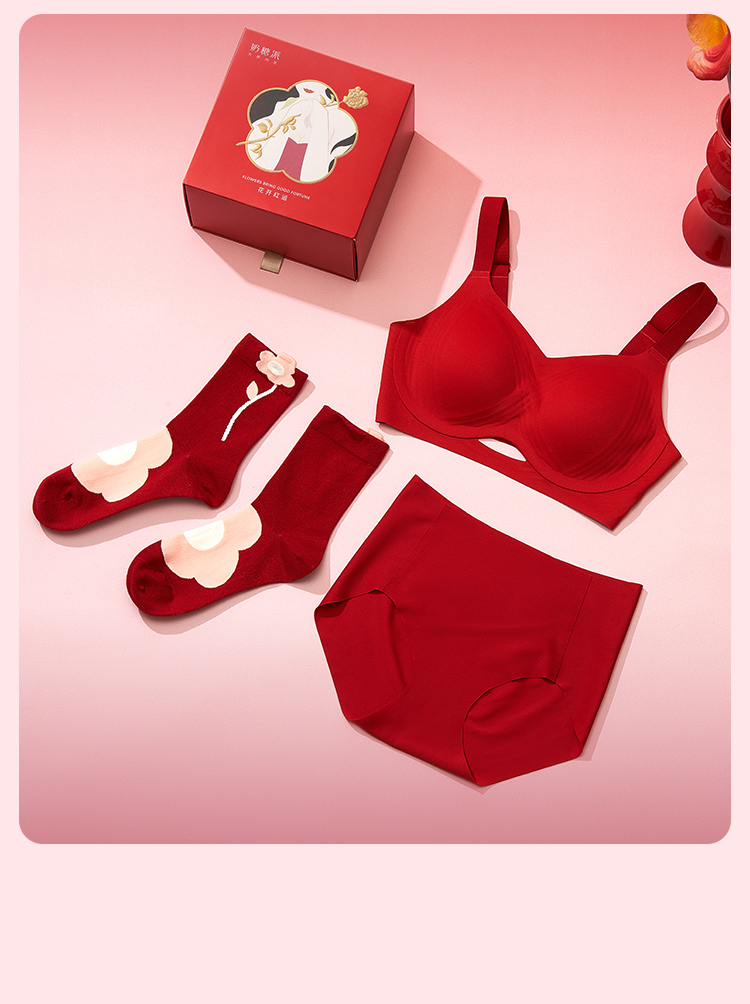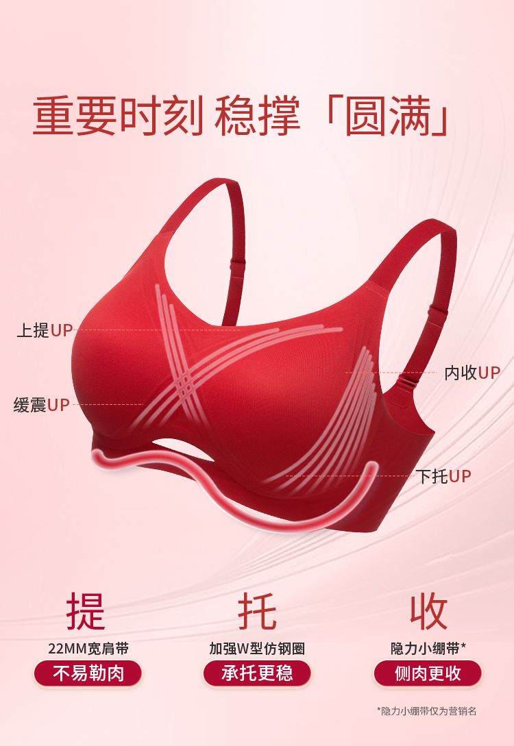 [线雕3.0红色内衣礼盒]女大胸聚拢线无钢圈文胸结婚本命年胸罩
