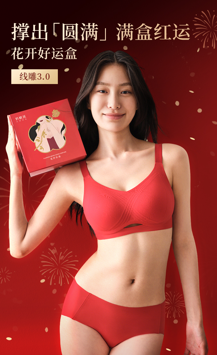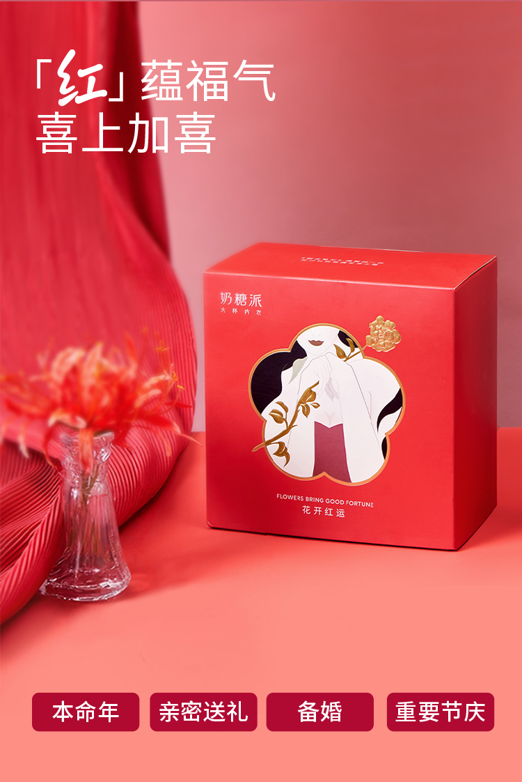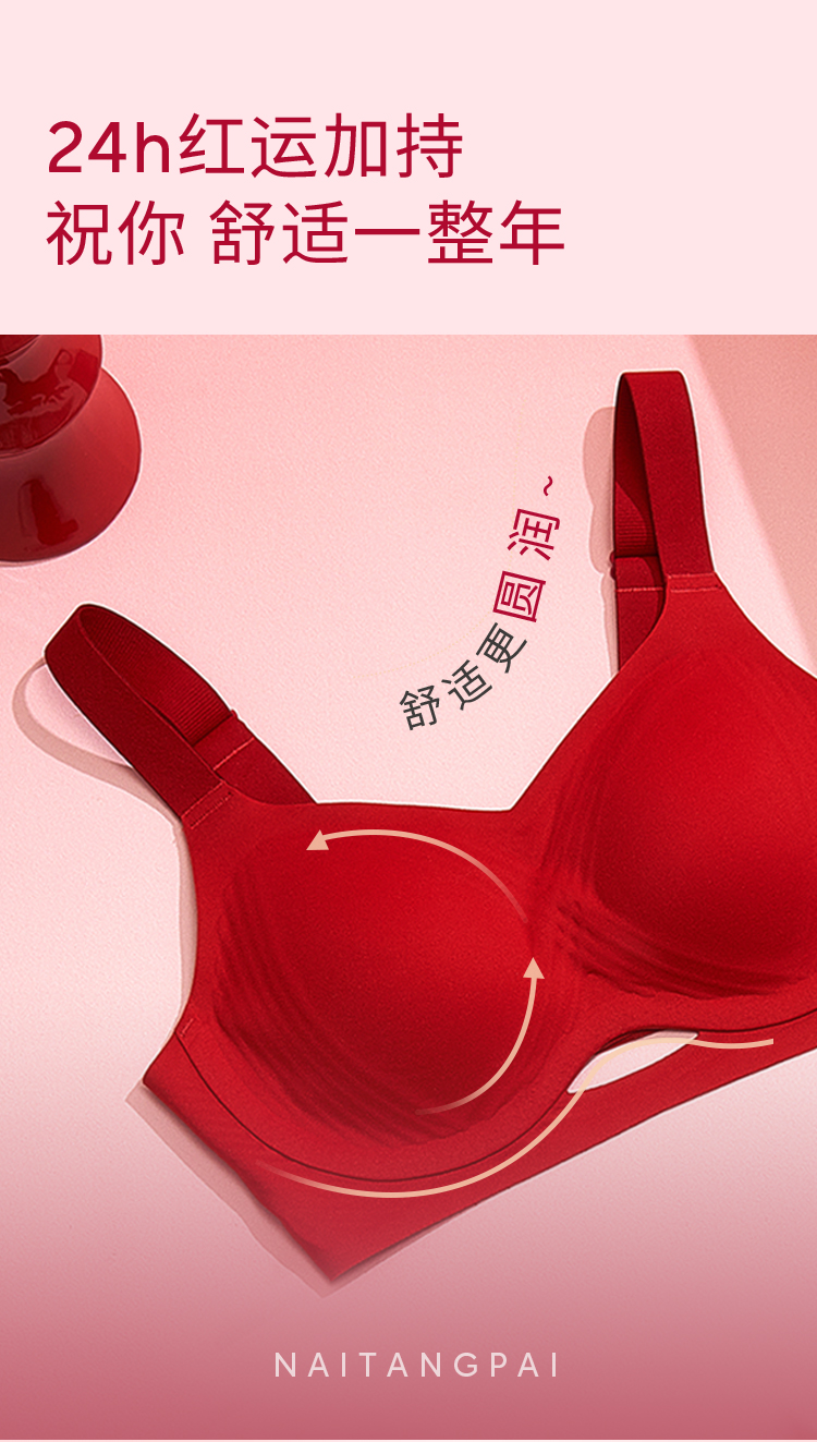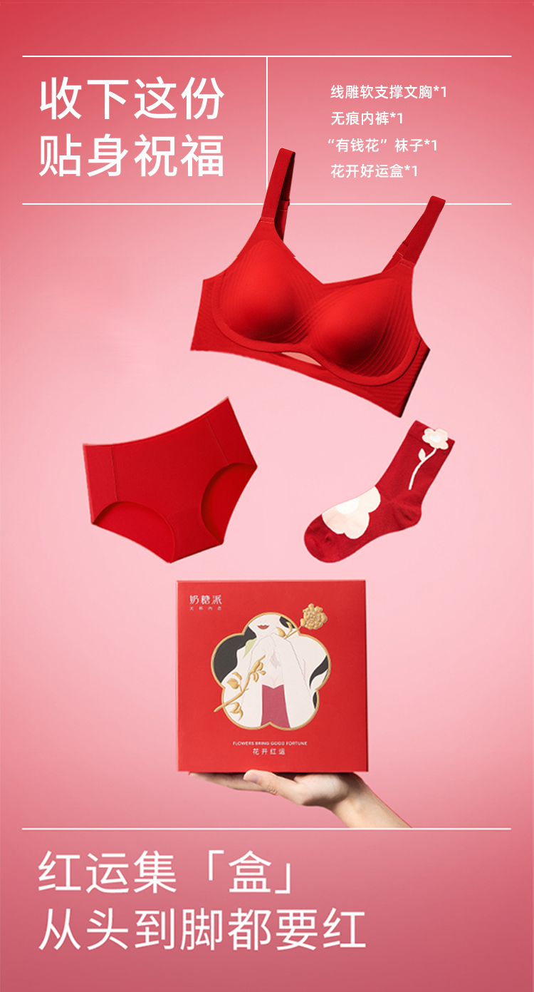 [线雕3.0红色内衣礼盒]女大胸聚拢线无钢圈文胸结婚本命年胸罩