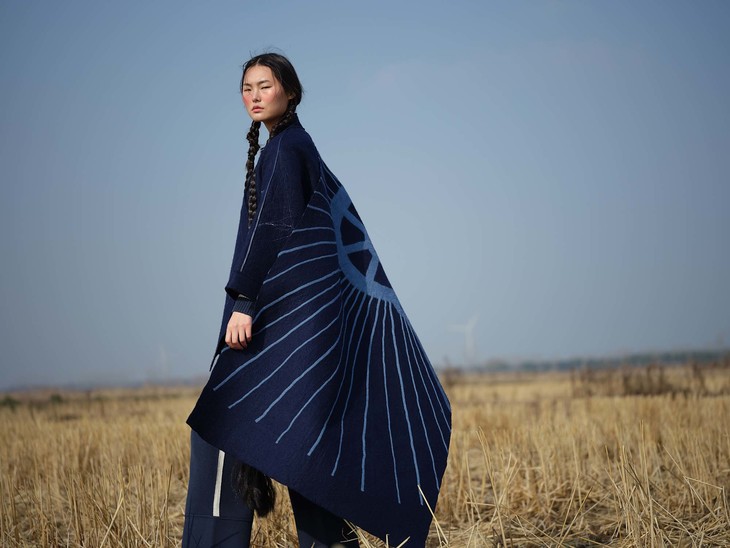 羊绒本身与生俱来的光泽感与柔软手感结合羊绒毡化后带来的独特质感,呈现出天然浑厚之美。