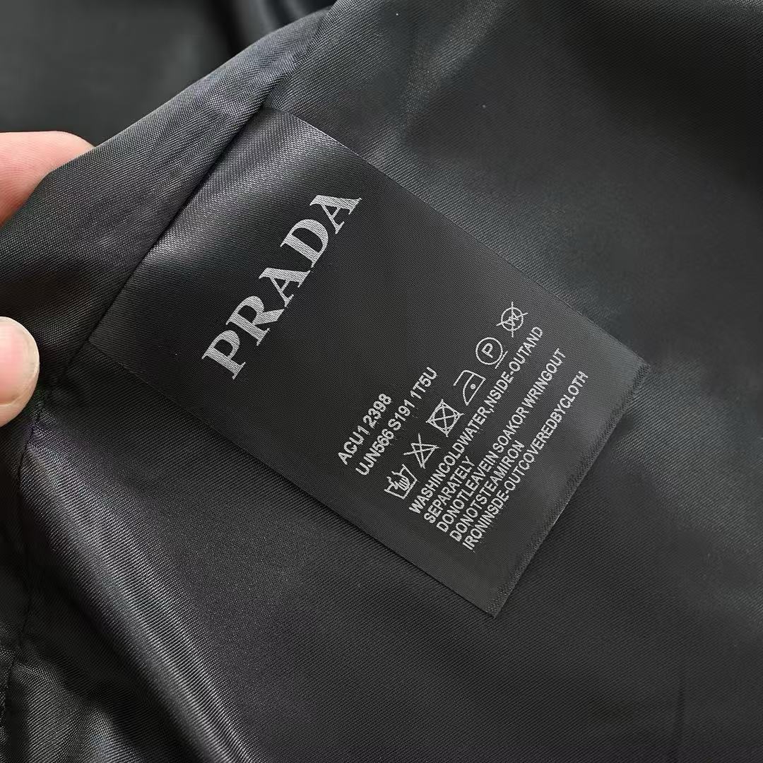 胸前普拉达家经典刺绣倒立三角皮标logo点缀,彰显品牌身份!