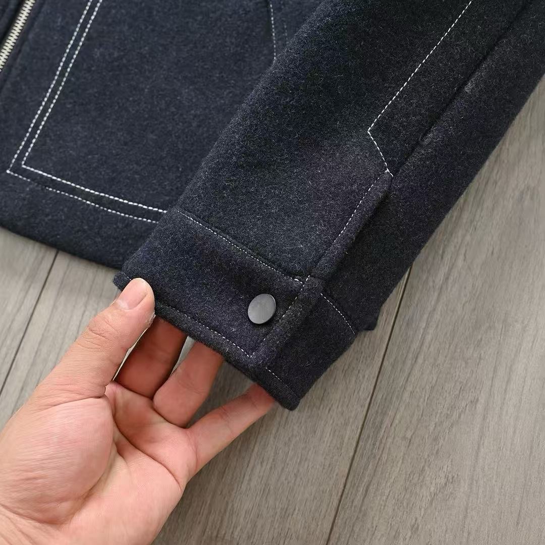 面料选用的优质的绵羊毛构成,密度小,上身效果好!不管高矮胖瘦,不管年龄身份,轻松驾驭无障碍!!这种版型,说是万年常青的都没有毛病!简风的基础款版型,基本上男士版型非常正,干练利落不拖沓,而且根本不存在什么挑人穿!!横平竖直的版型、线条,不存在任何多余与浮夸,客供五金件,光滑细致,品质出色防透风拉链都是品排客供定制,可靠又耐用!