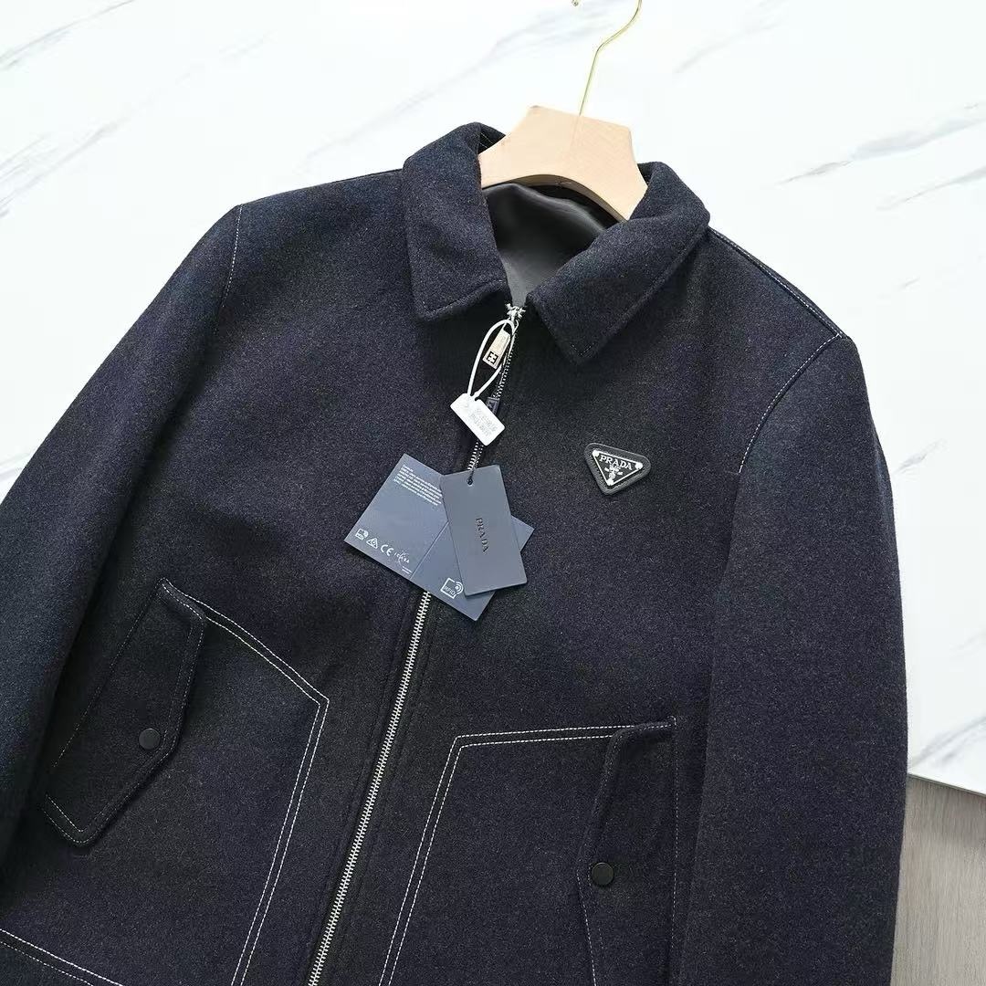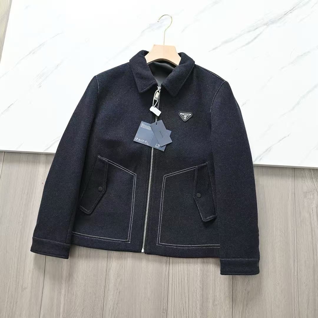 普拉达25ss冬季新款男士翻领羊毛休闲夹克外套