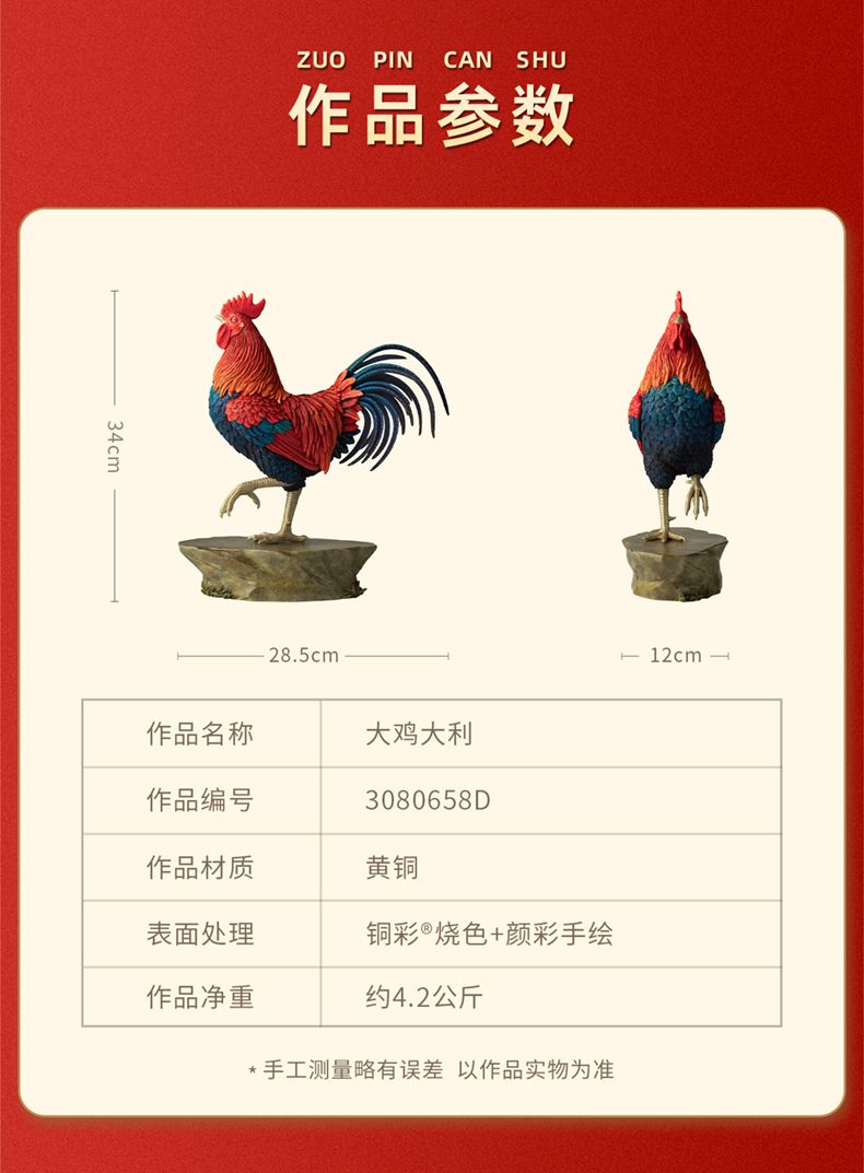 铜师傅《大鸡大利》客厅桌面铜鸡摆件家居装饰工艺品摆件