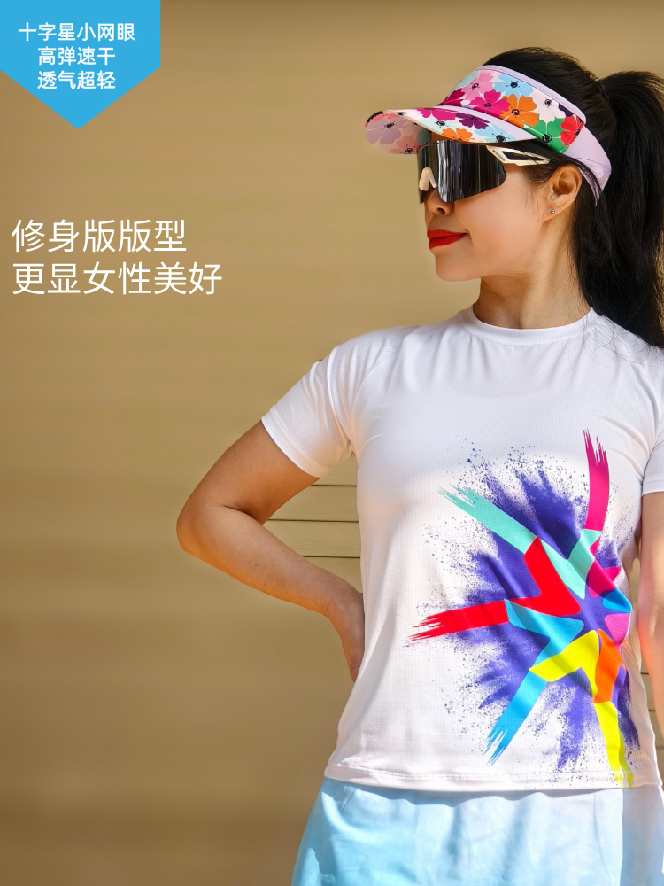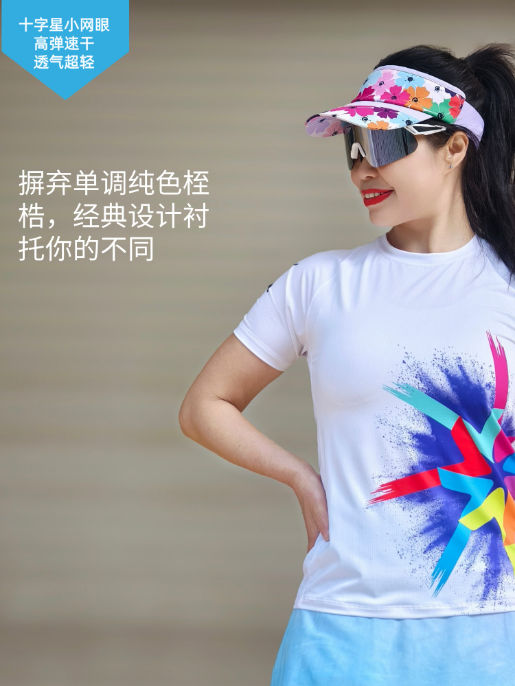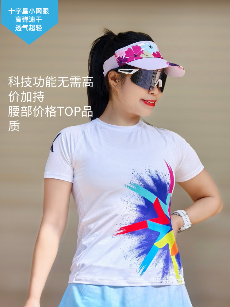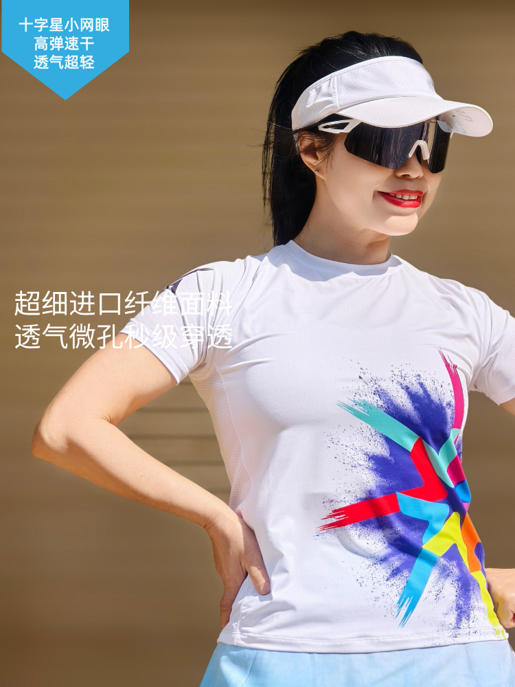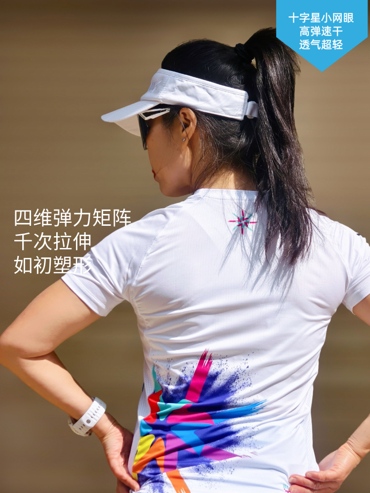 风火轮轻薄透气速干马拉松跑步运动短袖修身女白