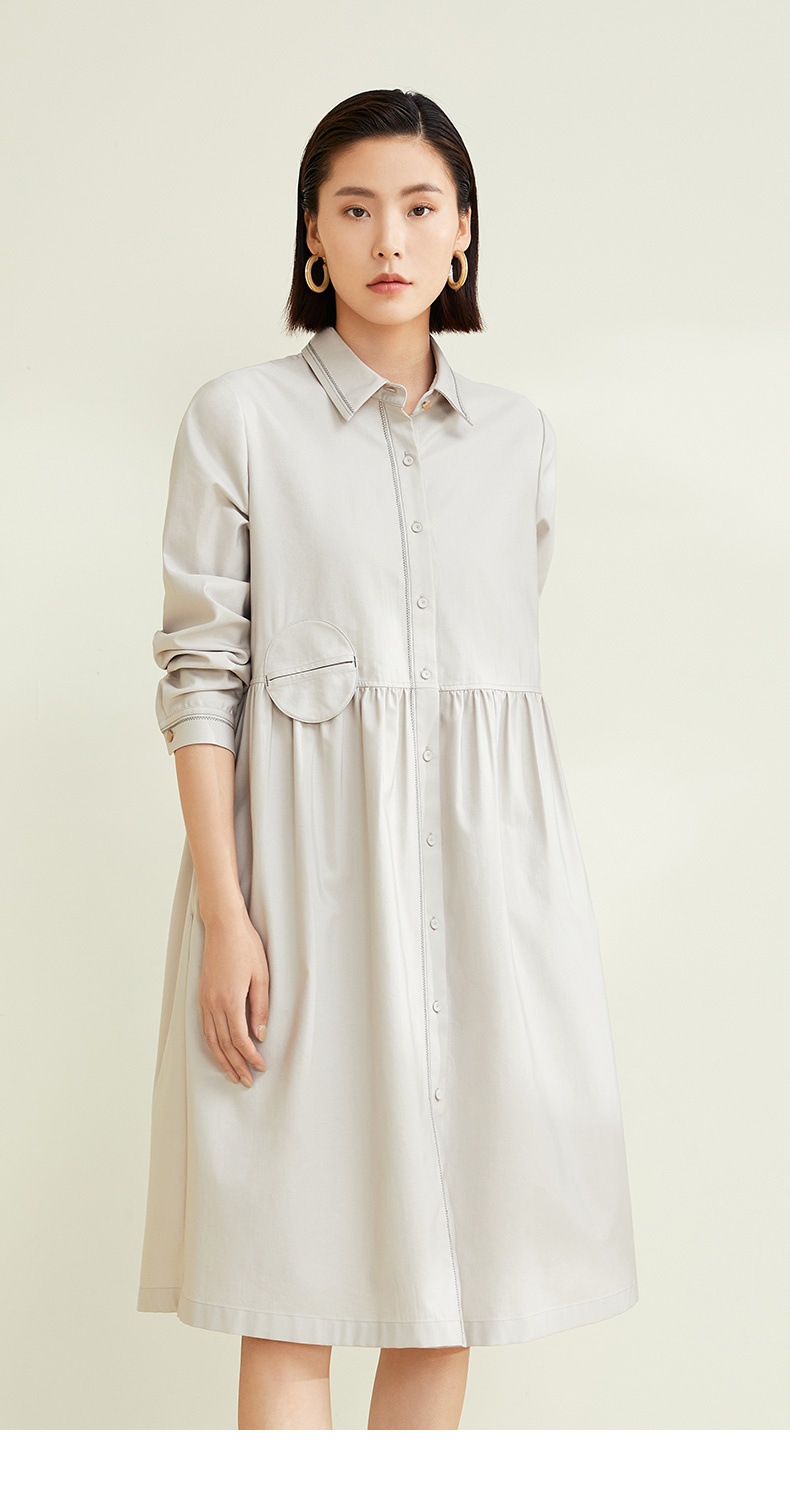 玳莎设计感宽松风衣女秋 通勤显瘦长袖中长款两穿式连衣裙 CC38301