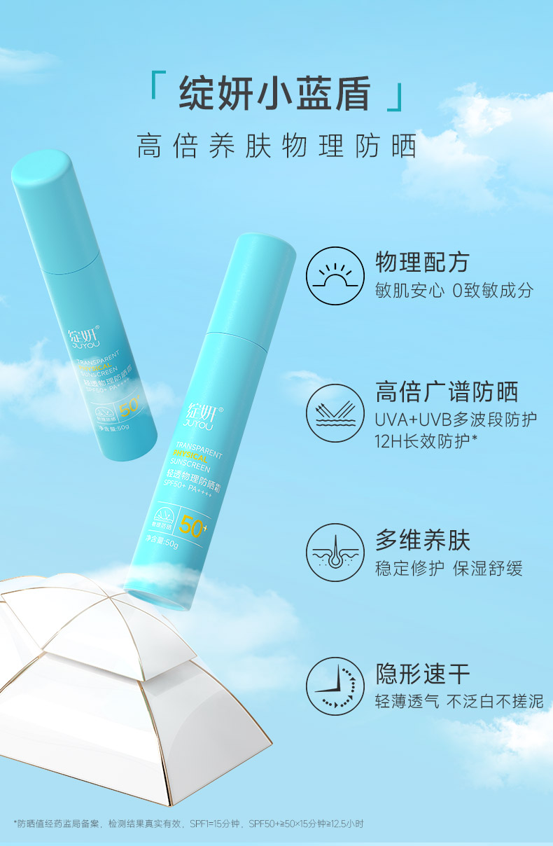 绽妍轻透物理防晒霜50g/瓶(SPF50+)【小蓝盾防晒】