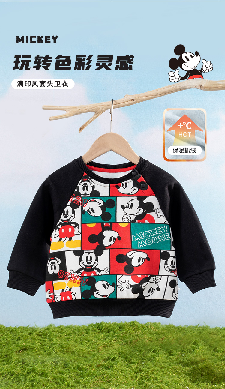 抓绒儿童卫衣秋冬宝宝休闲男童卫衣婴幼童满印拼接上衣231S1815