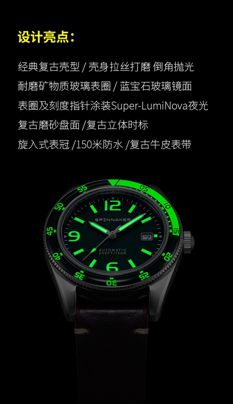 英国SPINNAKER三角帆FLEUSS双色圈潜水机械表男士复古水鬼SP5055