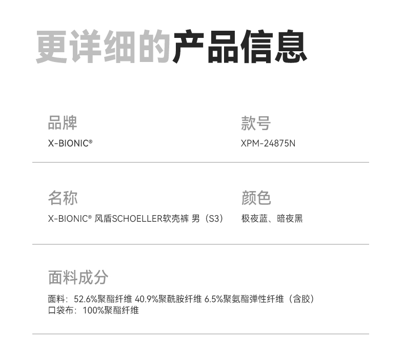 X-BIONIC风盾Schoeller软壳裤男(S3) 秋冬加绒防风户外徒步长裤24875N