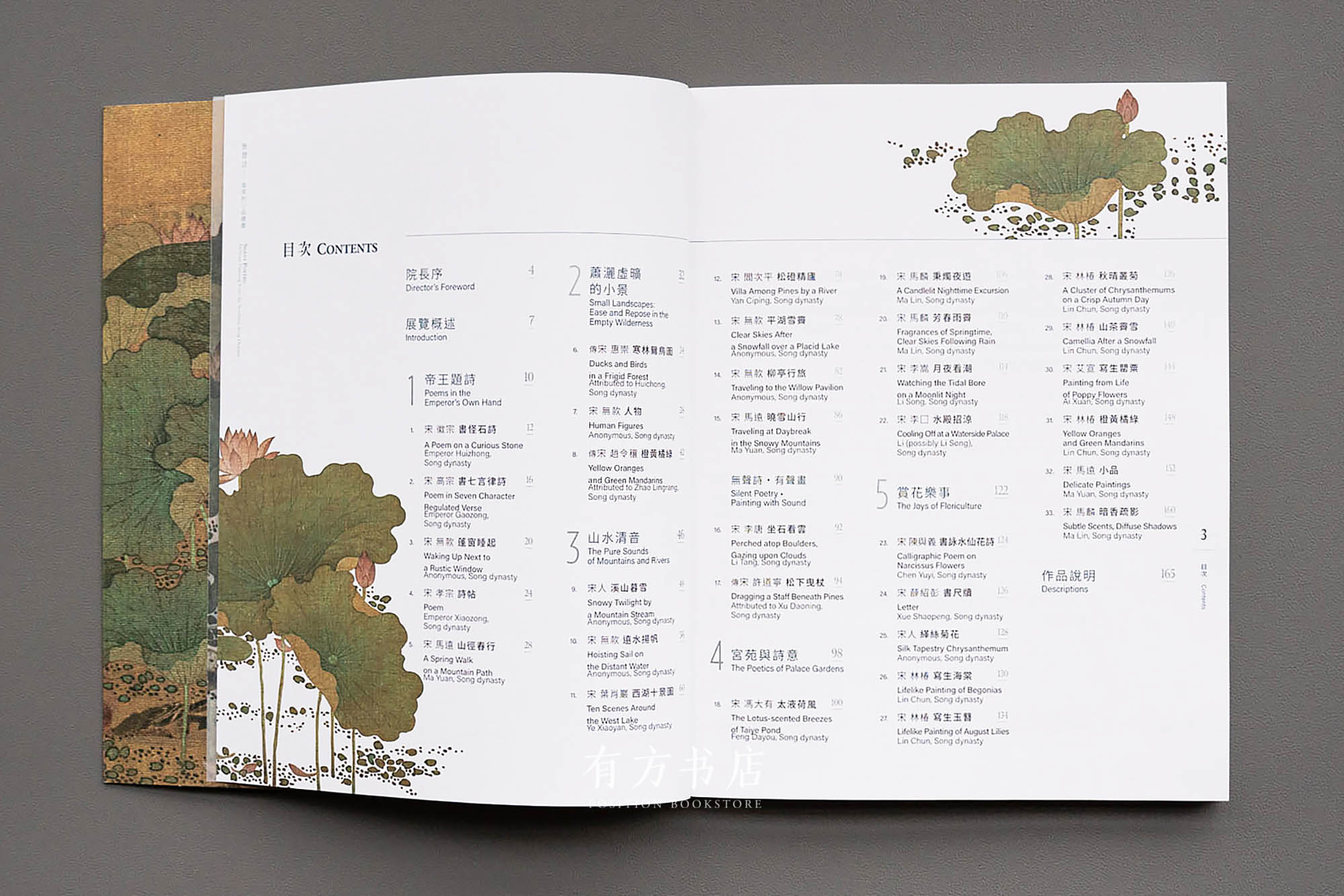 本书分为“帝王题诗”、“萧洒虚旷的小景”、“山水清音”、“宫苑与诗意”、“赏花乐事”等五个部分。